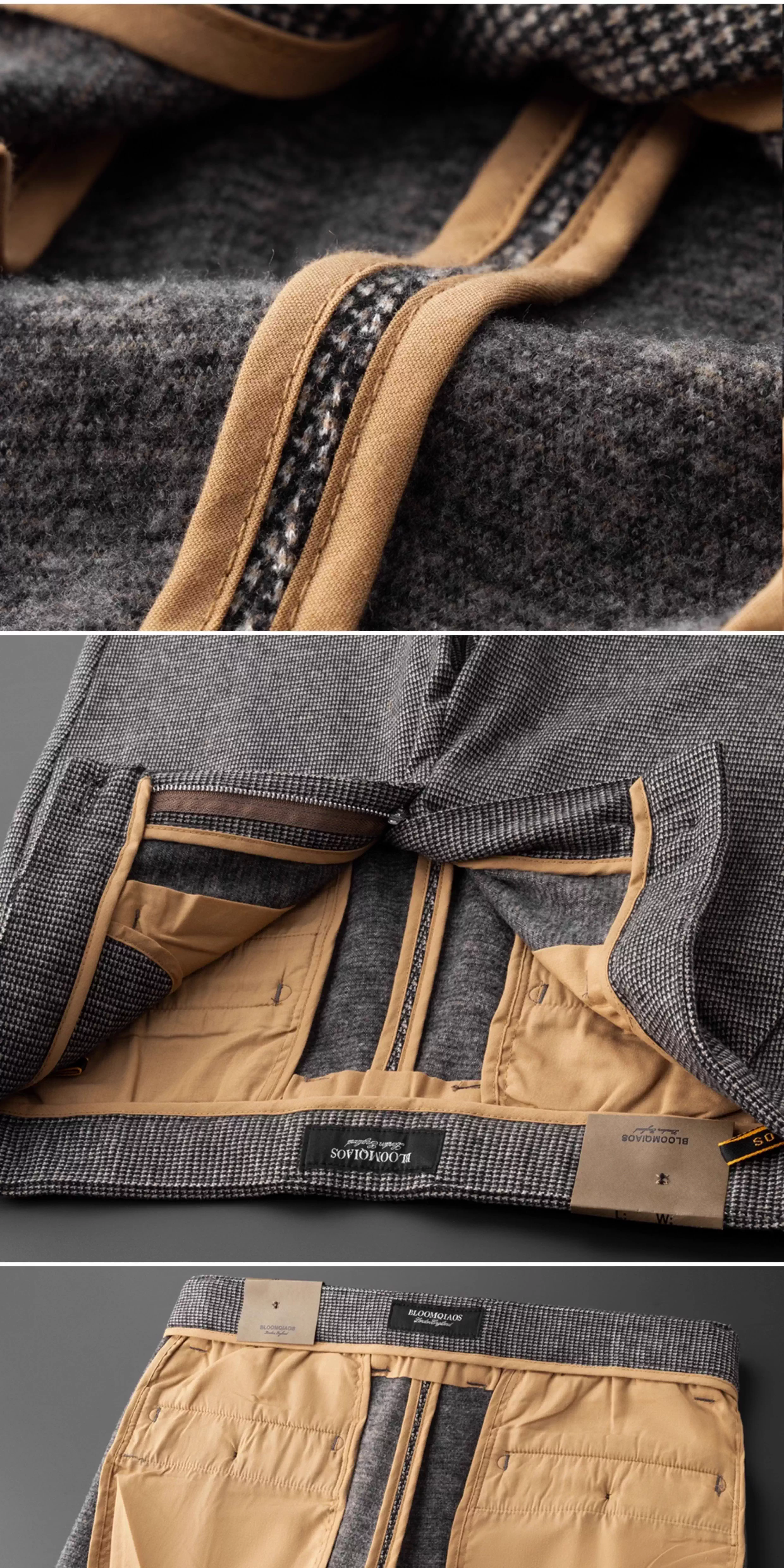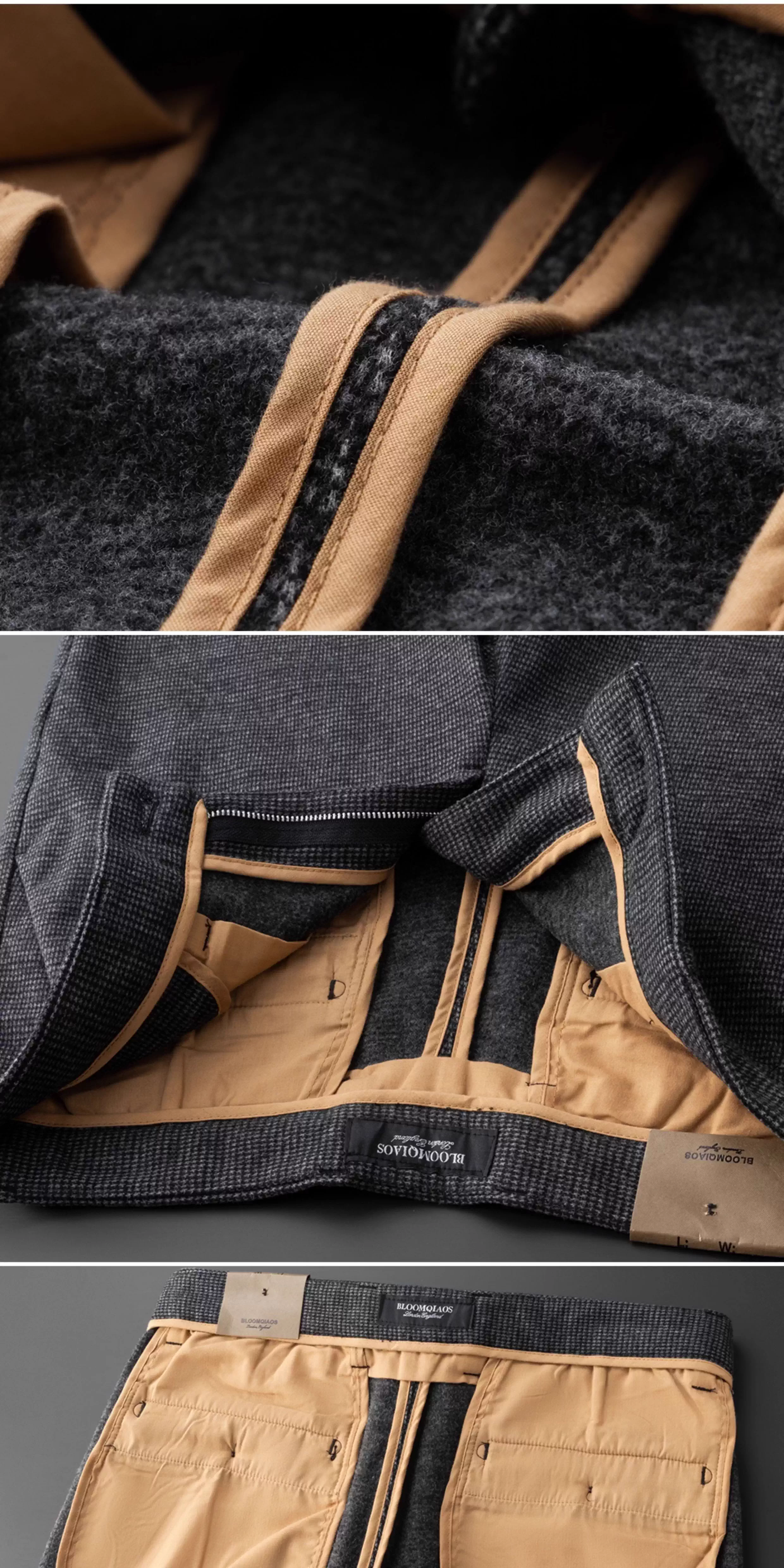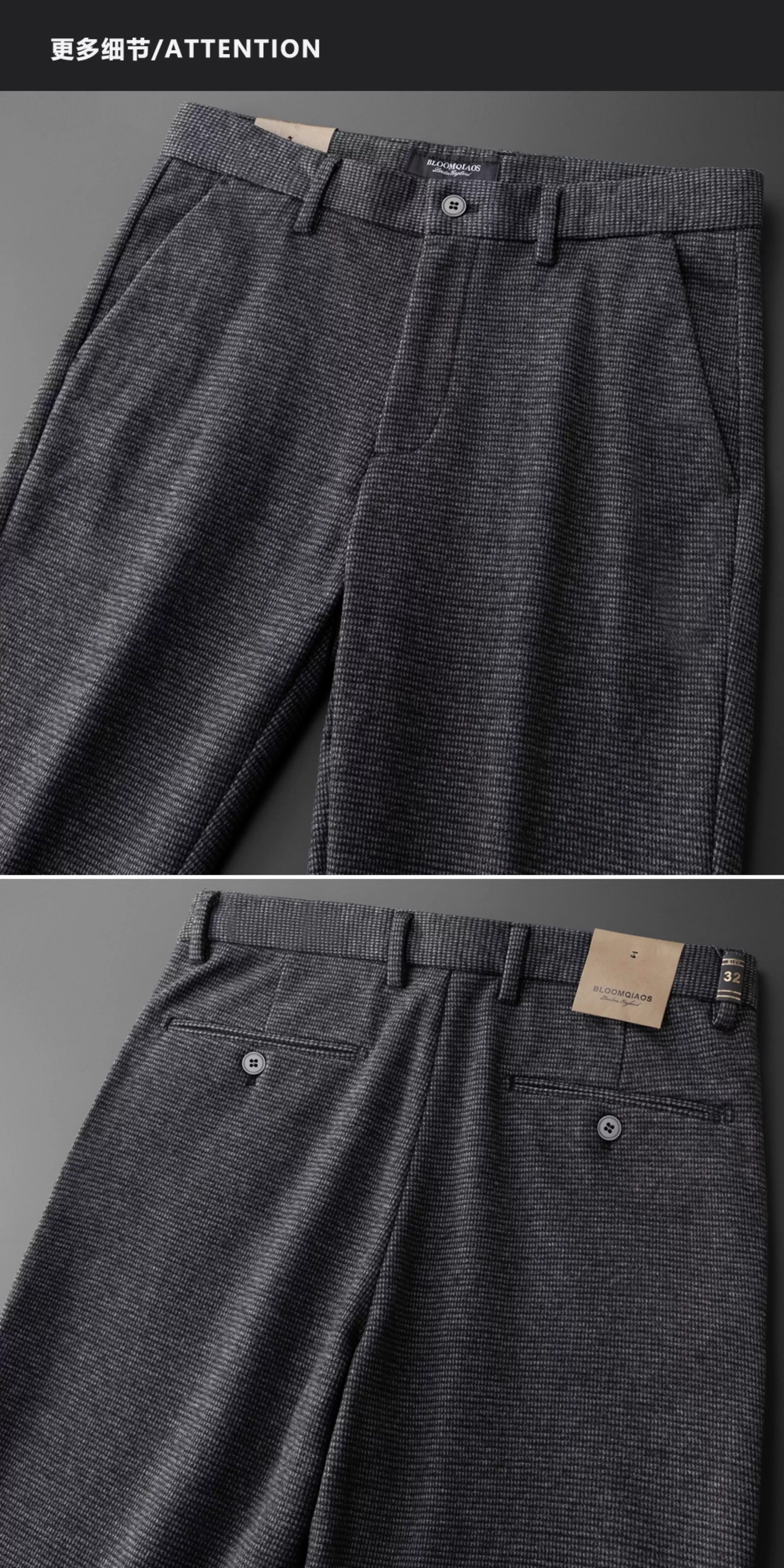 Quần âu nam len kẻ ô mùa thu đông, dáng thẳng, rộng rãi, đa năng, dày dặn, ấm áp, quần dài chải kỹ.