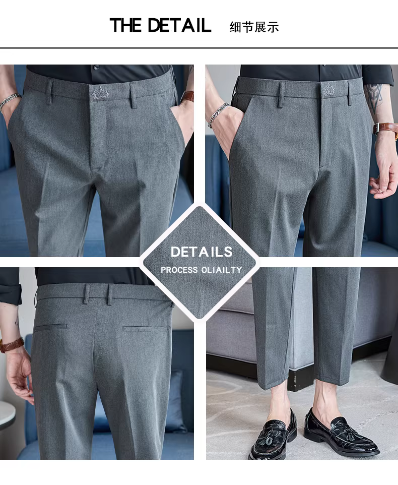- Quần âu nam lưng thun bán co giãn, kiểu dáng chín phần, mặc thường ngày mùa thu đông, lót lông cừu, dày dặn, cao cấp, kiểu dáng ôm sát, dáng ống côn.