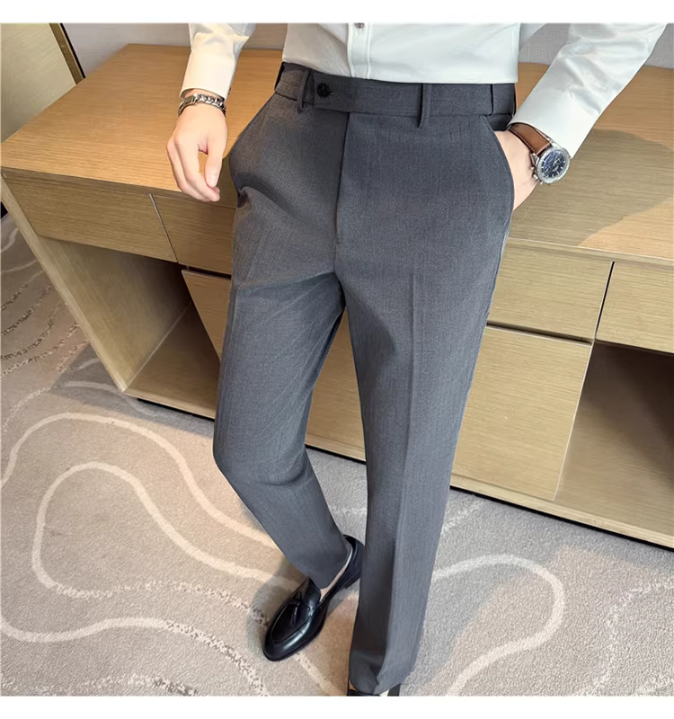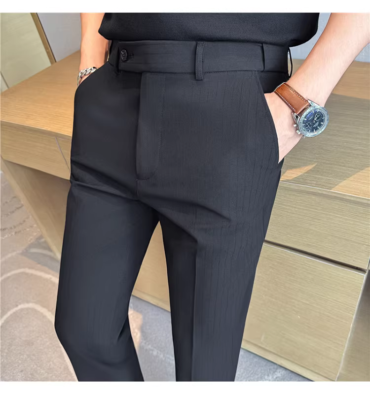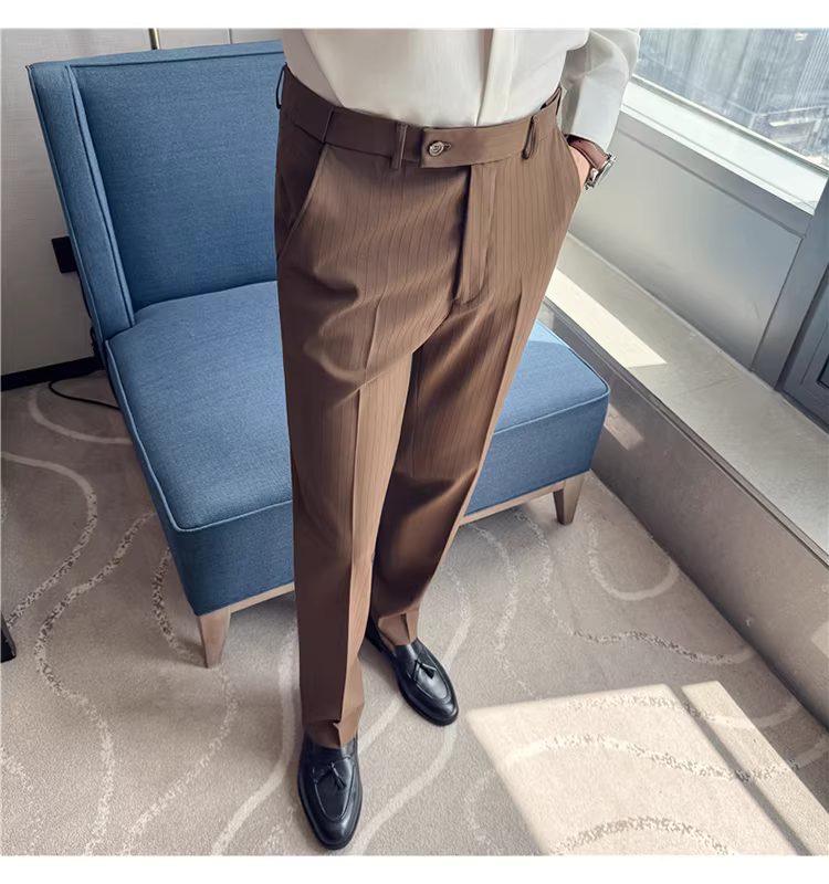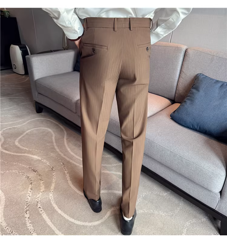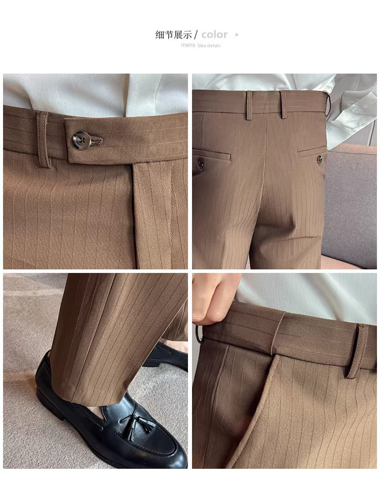 - Quần âu nam lưng thun kẻ sọc tối màu, quần âu chất lượng cao, dáng suông, ôm dáng, dễ chăm sóc.