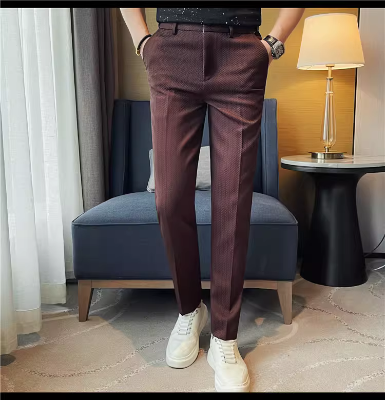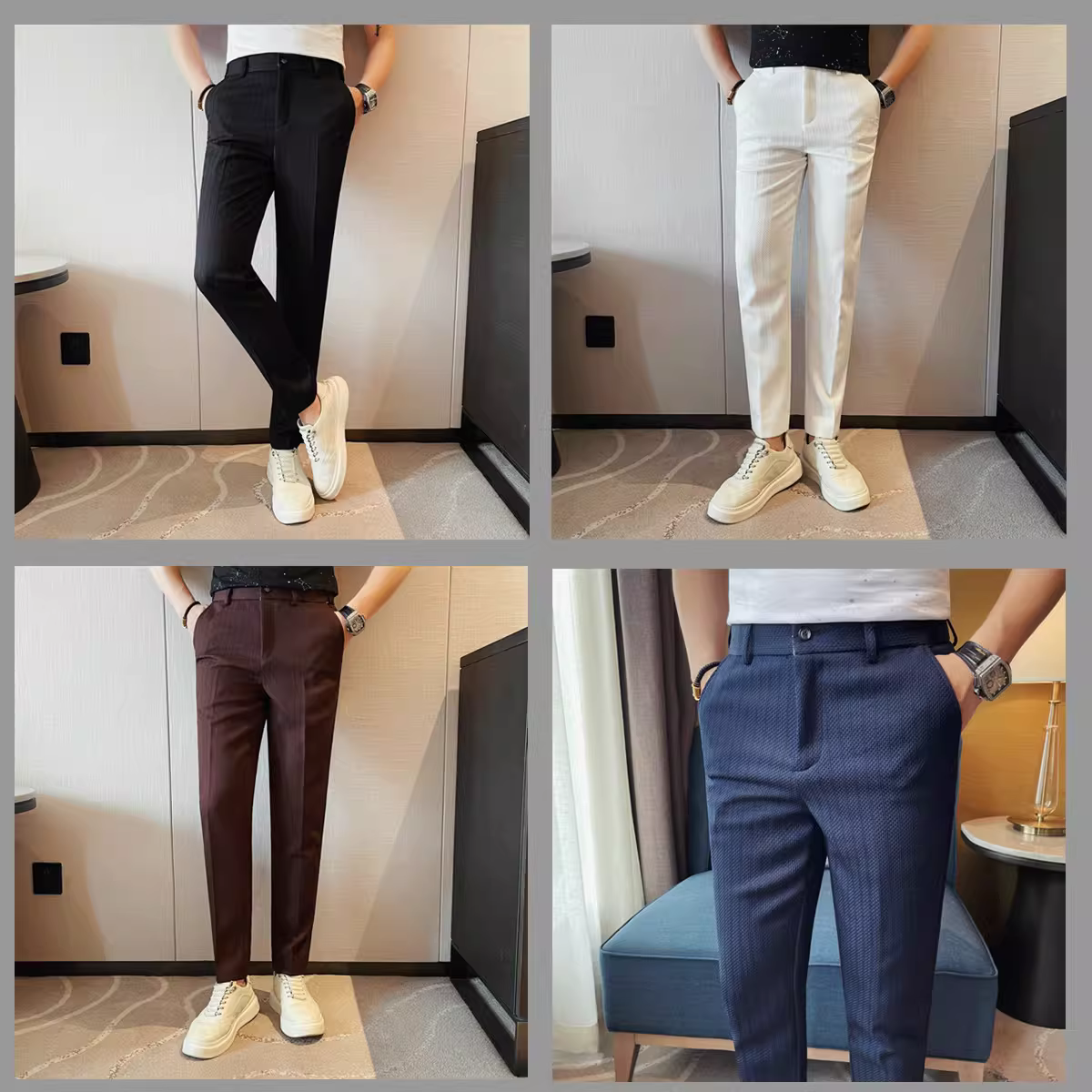 Quần âu nam lưng thun, kiểu dáng chín phần, chất liệu mỏng mùa xuân hè, thời trang và cao cấp, kiểu dáng ôm body, chống nhăn.
