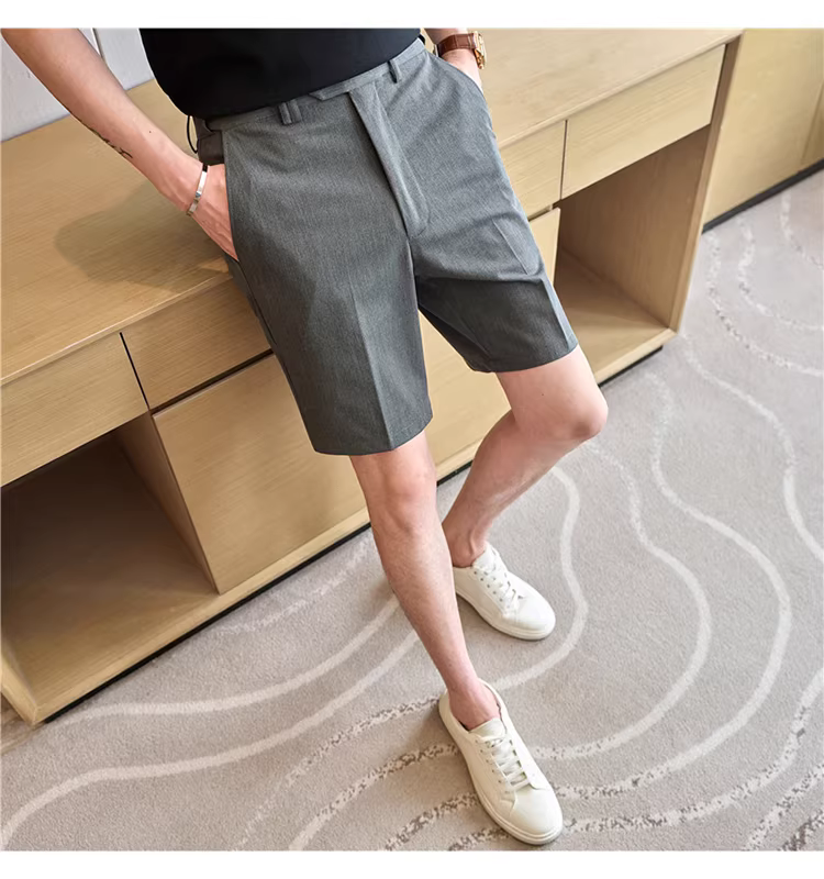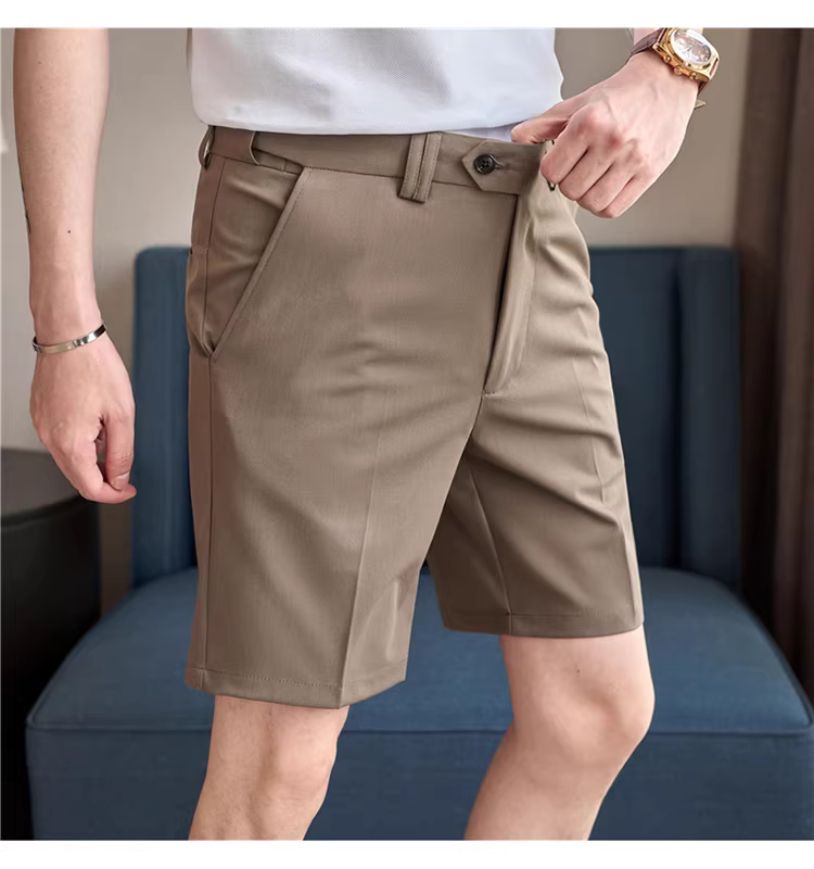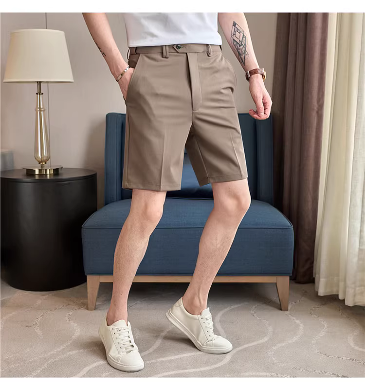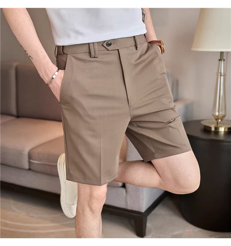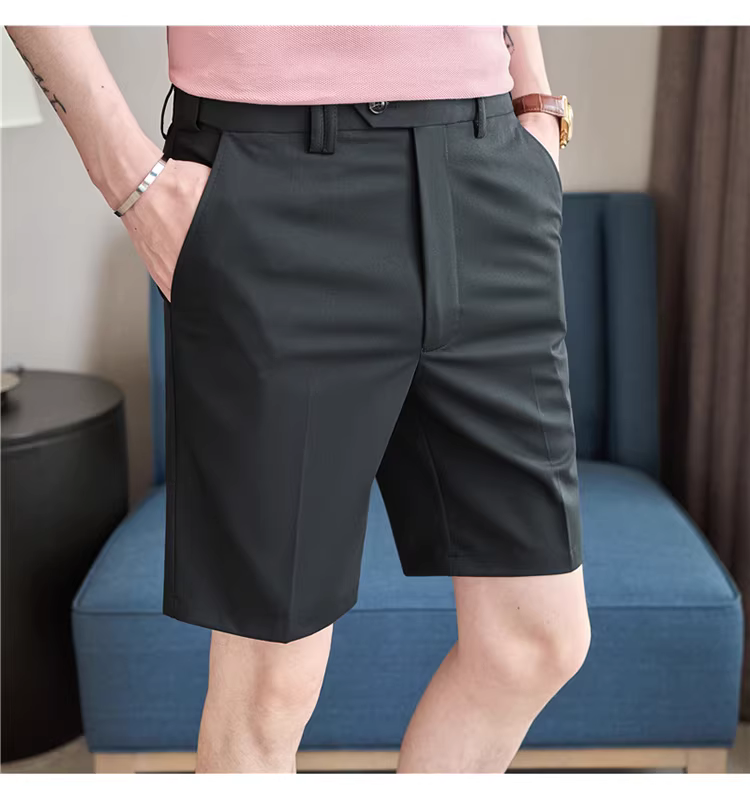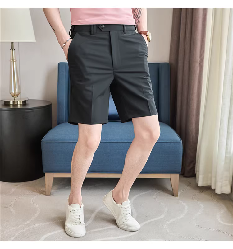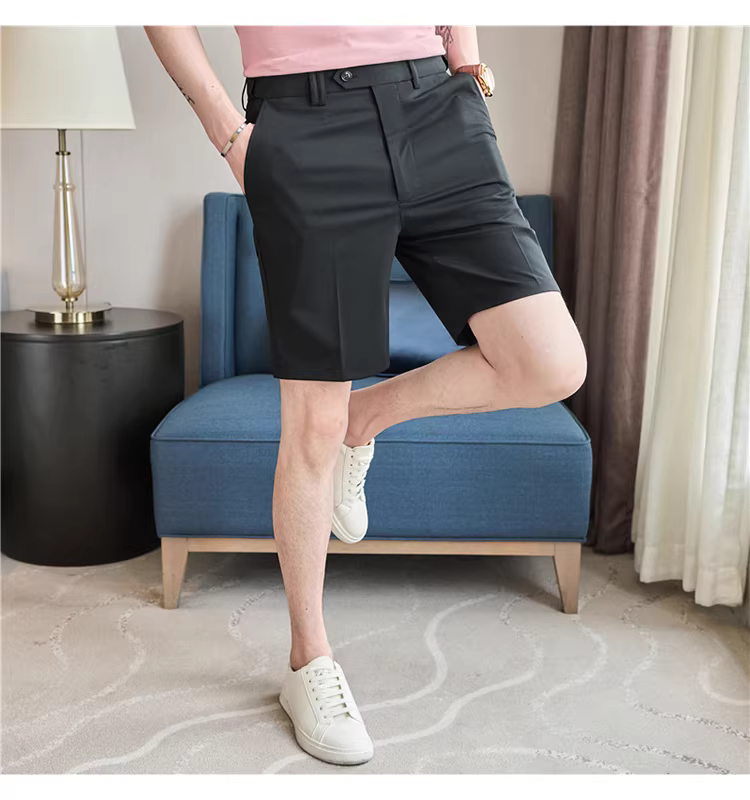 - Quần âu nam lưng thun, quần short mùa hè mỏng nhẹ, kiểu dáng ôm body thoải mái năm điểm, mẫu mới 2025