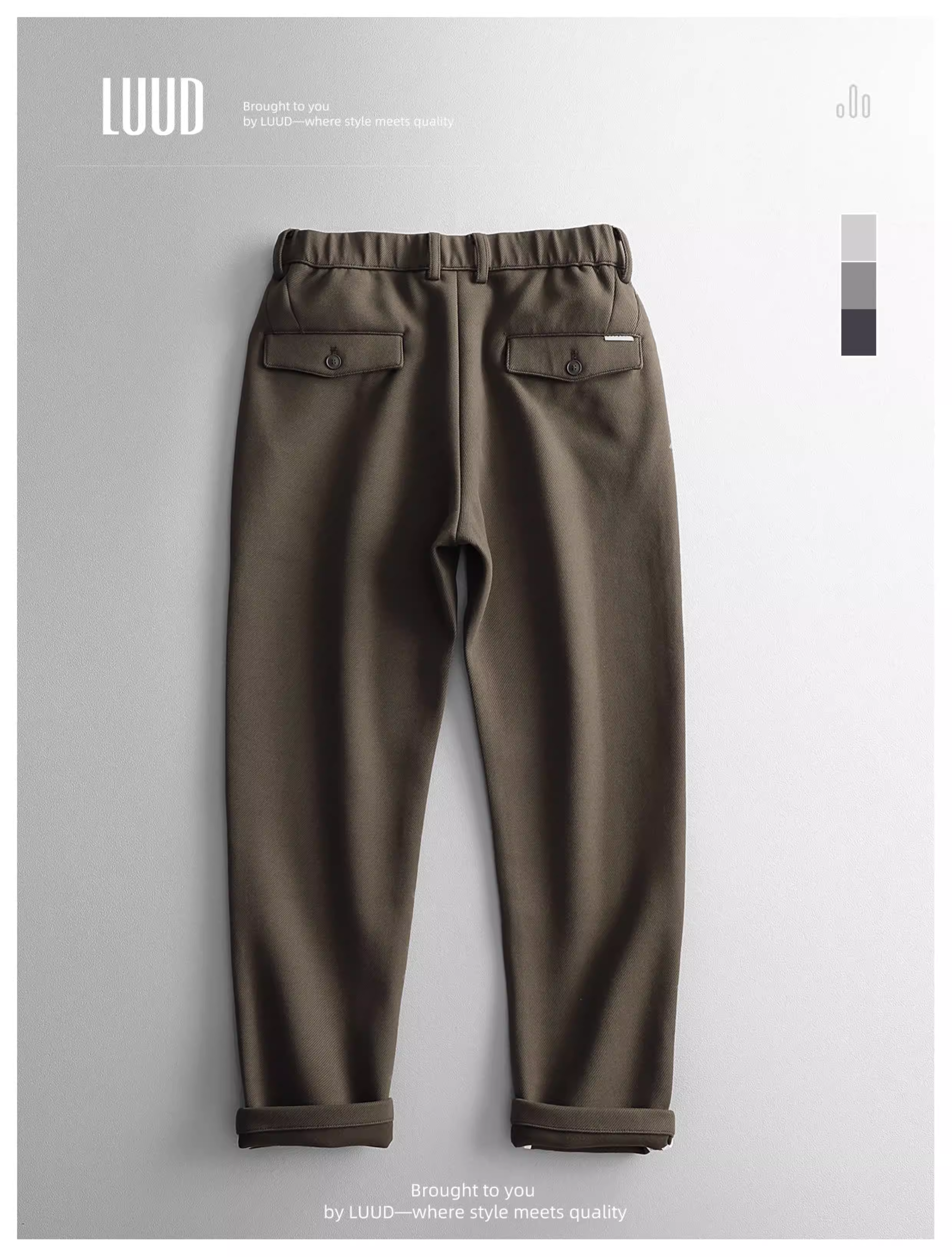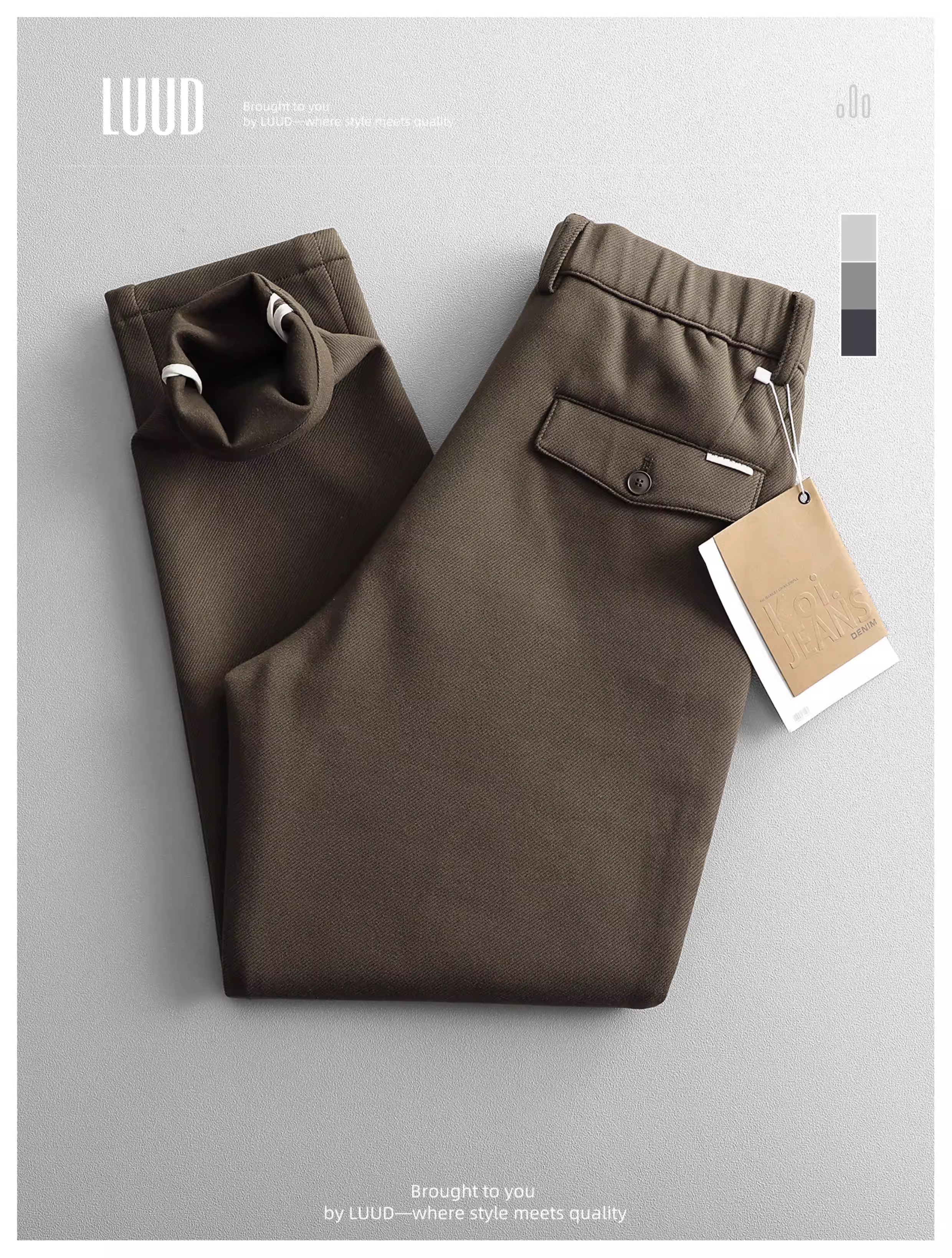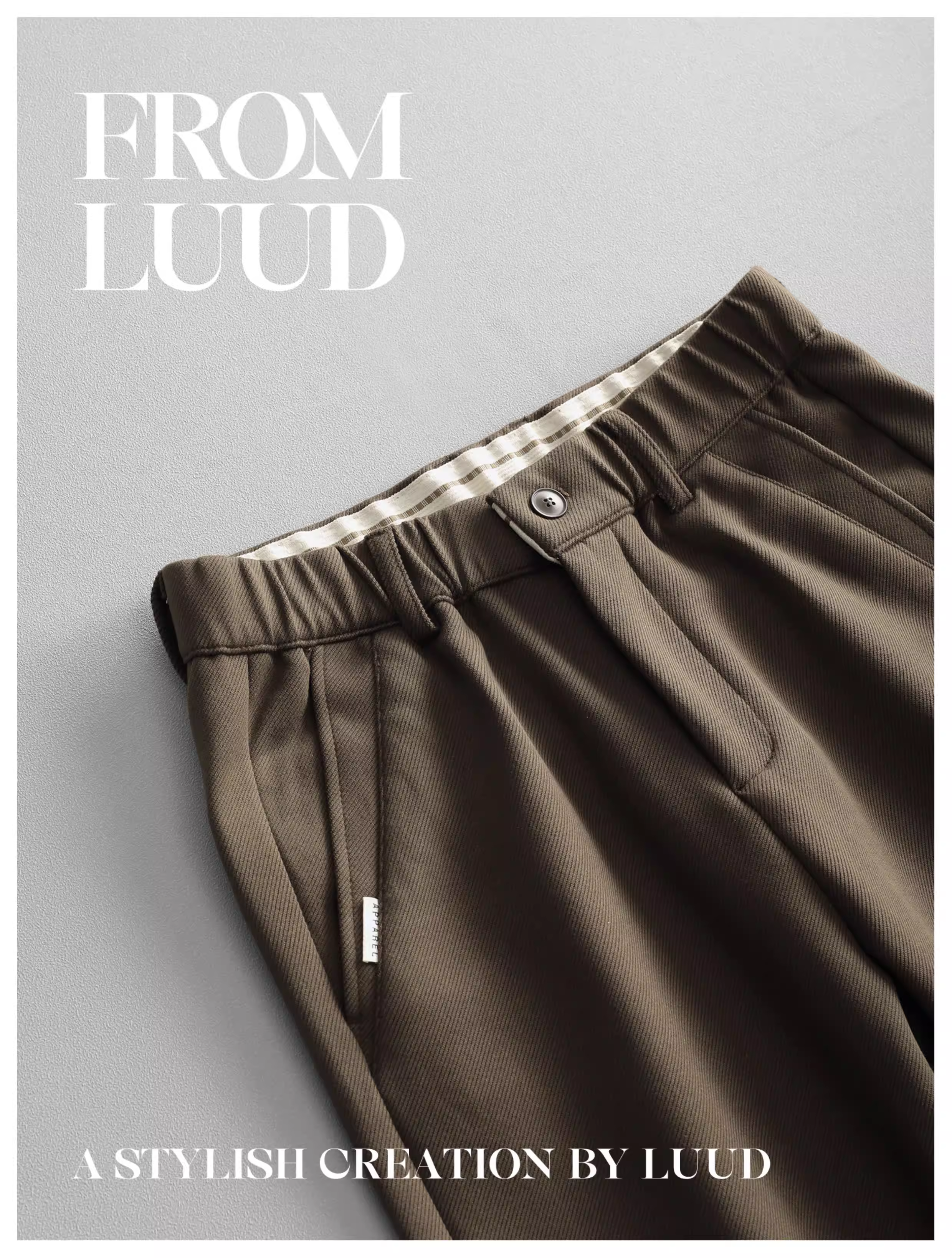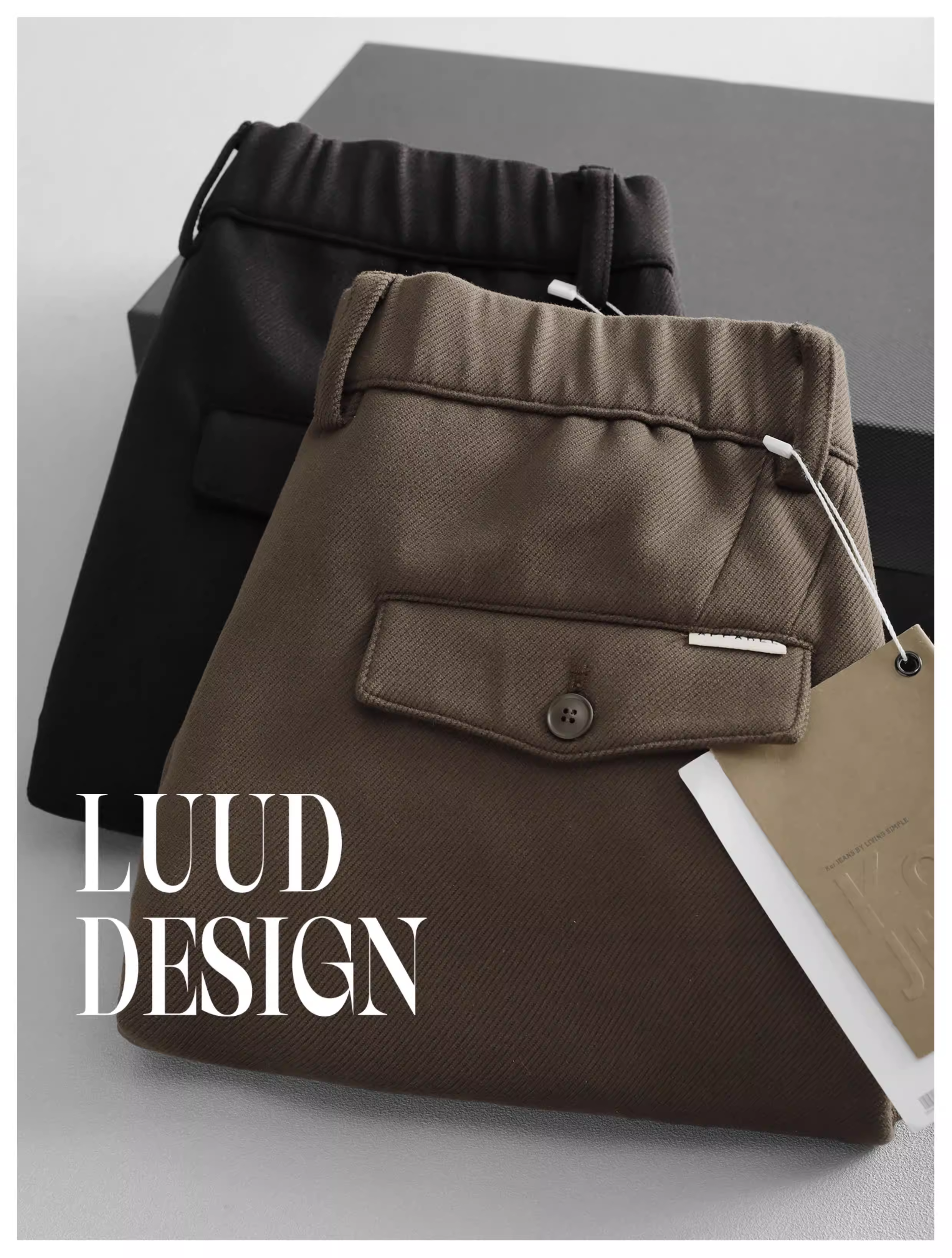 Quần âu nam LUUD cao cấp, dáng thẳng, chất liệu mềm mại, lưng thun, quần dài ba chiều với lớp lót bên trong được chải kỹ và họa tiết chéo tinh tế.