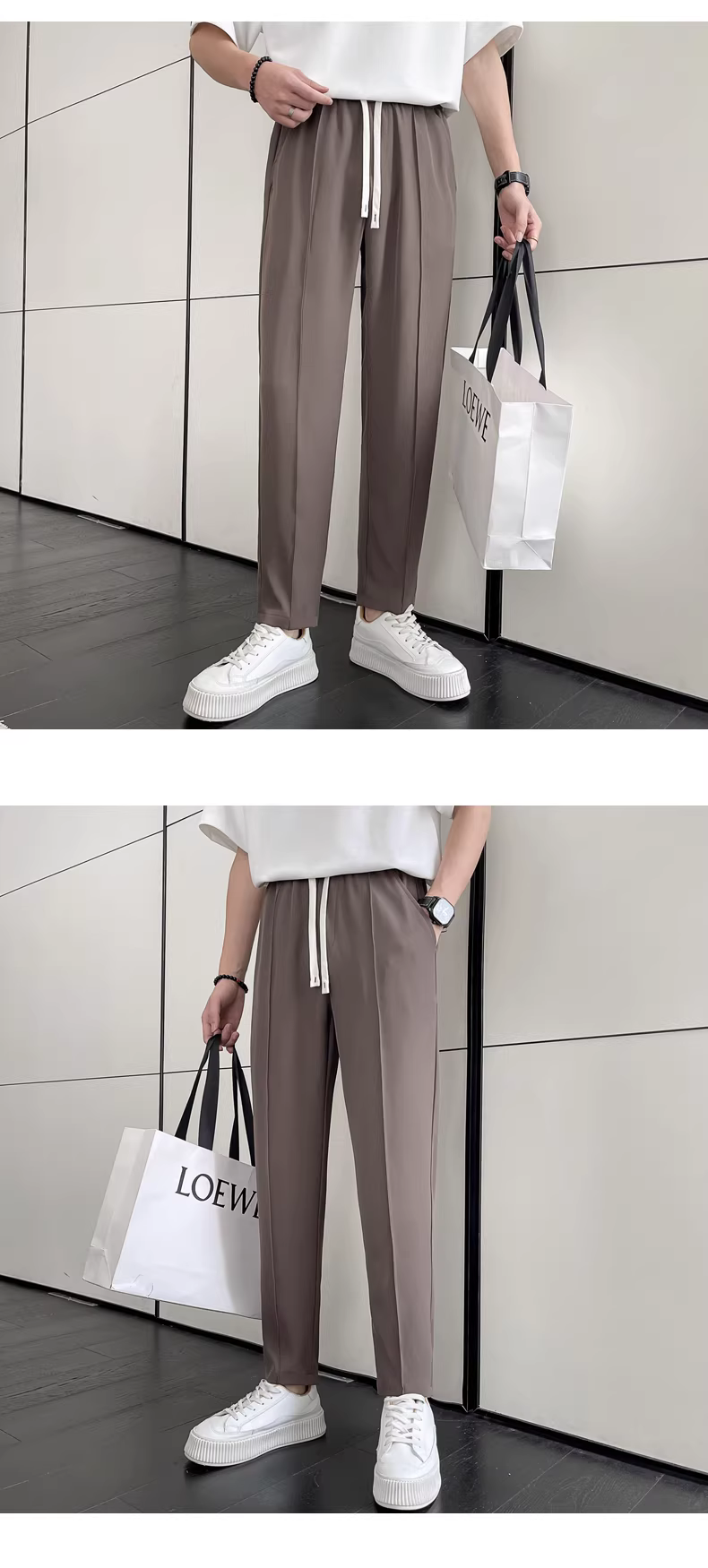 Quần âu nam mùa hè, mỏng, cao cấp, chất liệu lụa đá, thoáng khí, thời trang, dáng rộng, ống thẳng, kiểu dáng lịch lãm.
