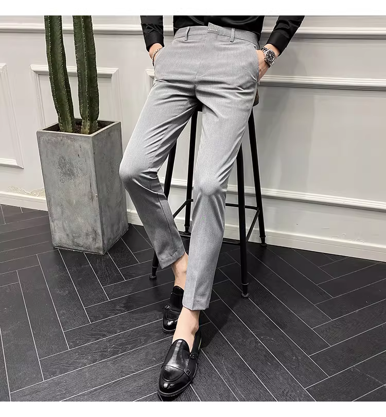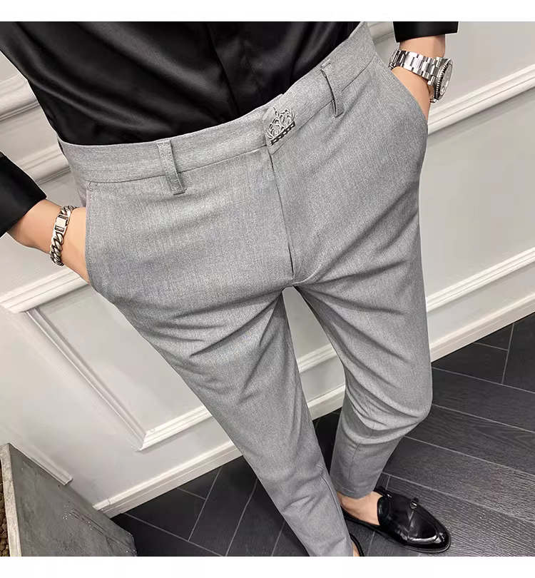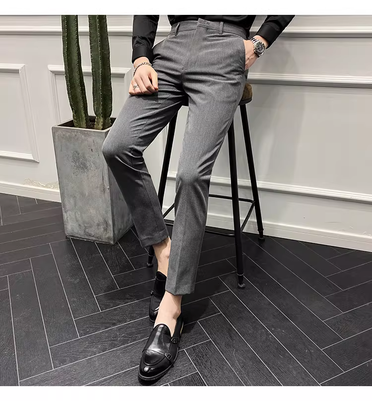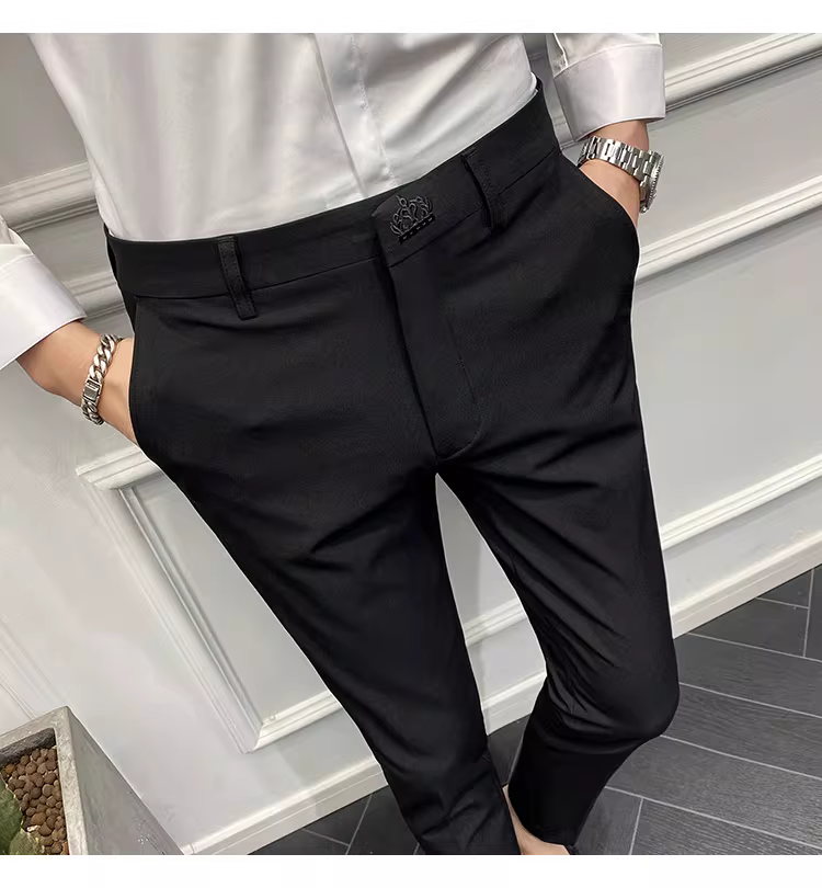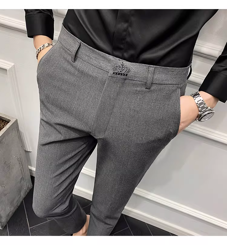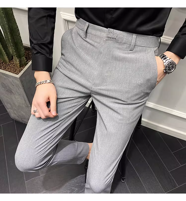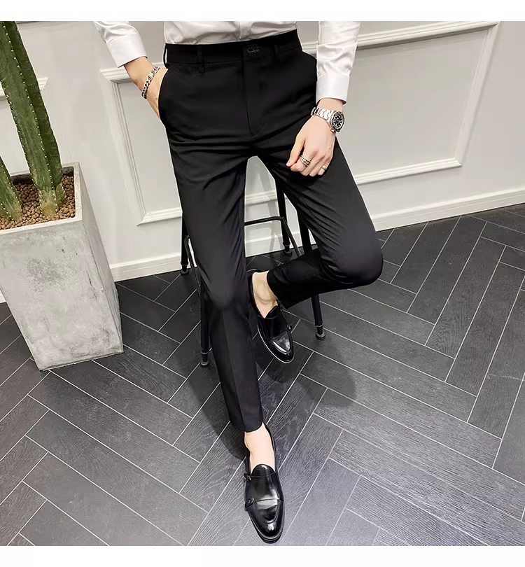 - Quần âu nam mùa thu đông, lót lông cừu và dày dặn, trang phục công sở lịch sự, quần âu dáng ôm, quần vest không cần là ủi thêu họa tiết.