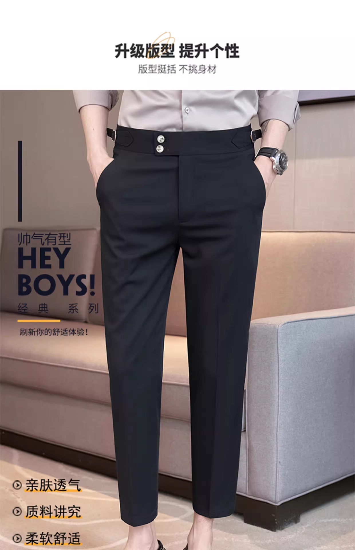 Quần âu nam Naples chín điểm, kiểu dáng mùa hè mỏng nhẹ, dáng ôm vừa vặn, ống thẳng, quần âu cao cấp thời trang thường ngày.