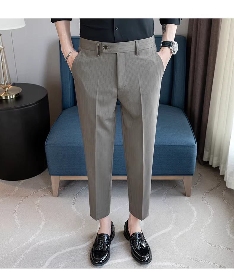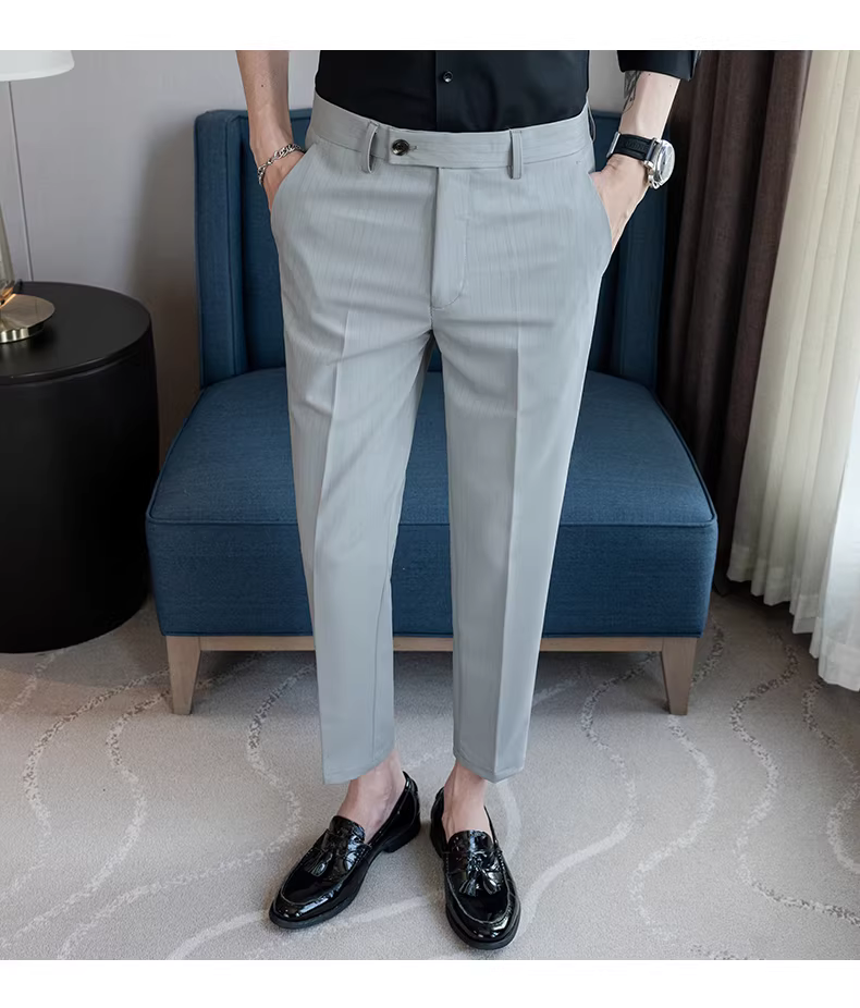 Quần âu nam ống đứng chín phần, kiểu dáng mới xuân hè, thời trang công sở lịch lãm, ôm dáng, ống côn, quần vest 9 phần