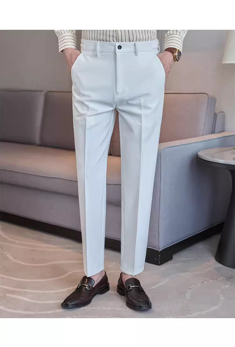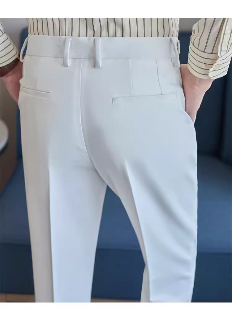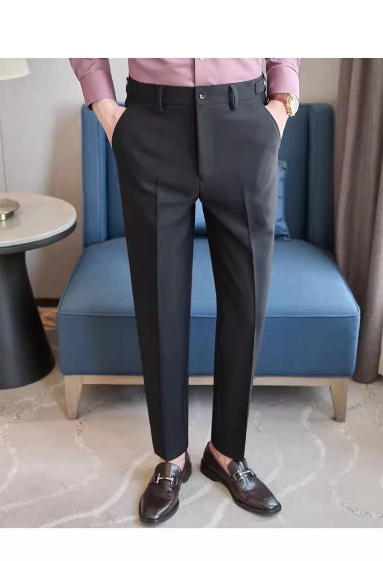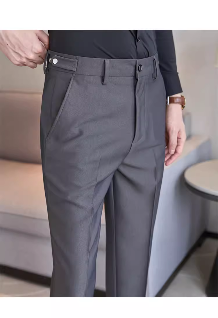 Quần âu nam thiết kế eo điều chỉnh, dáng ôm, ống côn, chất lượng cao, dễ chăm sóc, thích hợp cho công việc.