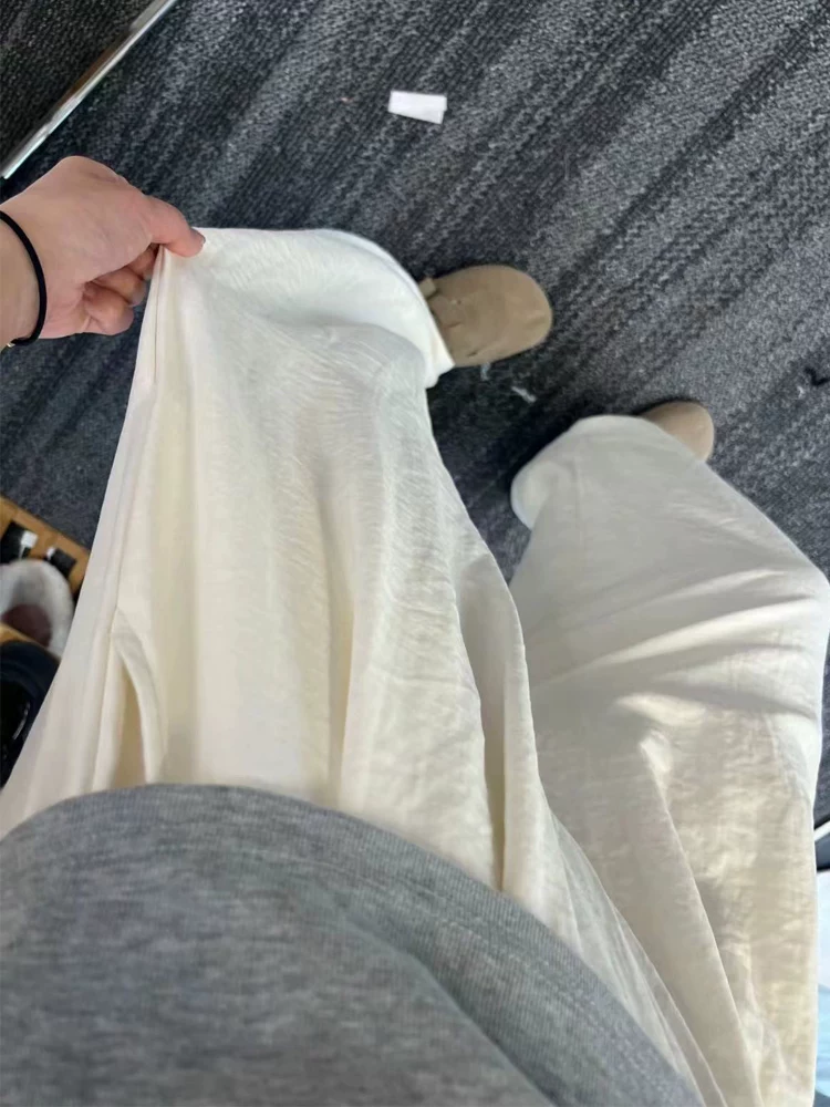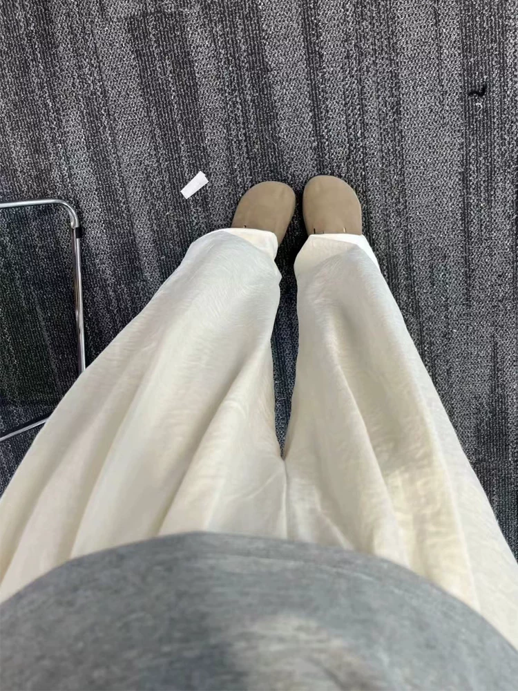 Quần âu nữ chất liệu vải có vân, dáng rộng, mùa hè, dành cho người có dáng quả lê, size lớn, cạp cao, rộng rãi, mềm mại, tôn dáng, quần ống rộng