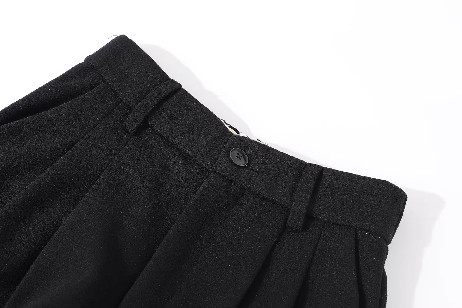 - Quần âu nữ dáng rộng, chất liệu len, cạp gập, ống rộng, kiểu dáng xuông, phong cách vintage, mùa thu đông