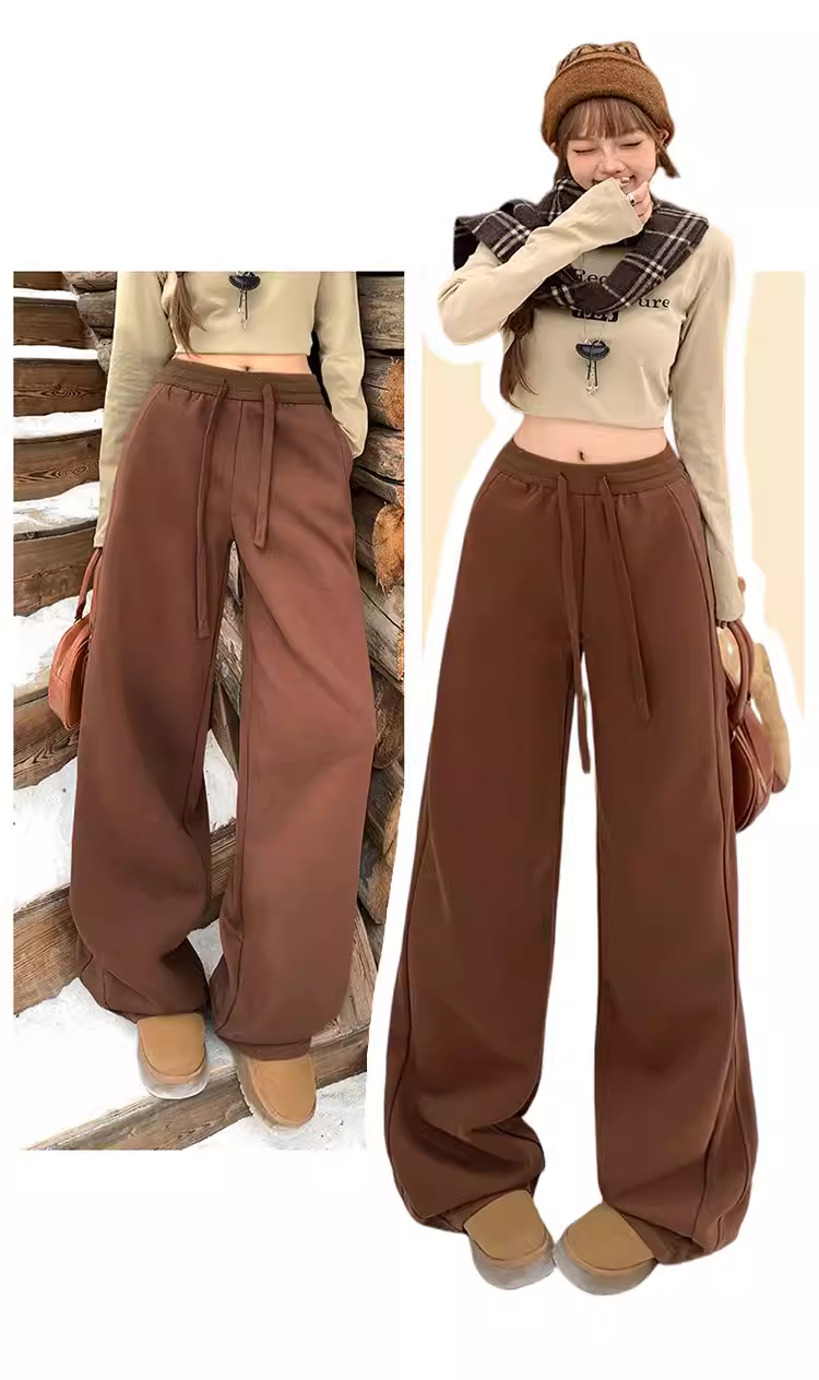 Quần âu nữ La Chapelle chất liệu lông cừu dày dặn, ống rộng, kiểu dáng xuông, cạp cao, size nhỏ, mùa thu đông 2025