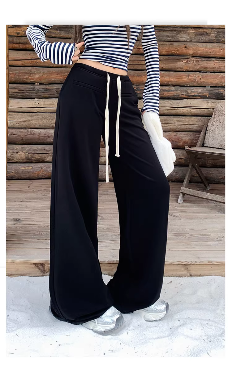 - Quần âu nữ La Chapelle chất liệu lông cừu đen dày dặn, ống rộng, kiểu dáng xuông, cạp cao, ôm dáng, mới thu đông 2025