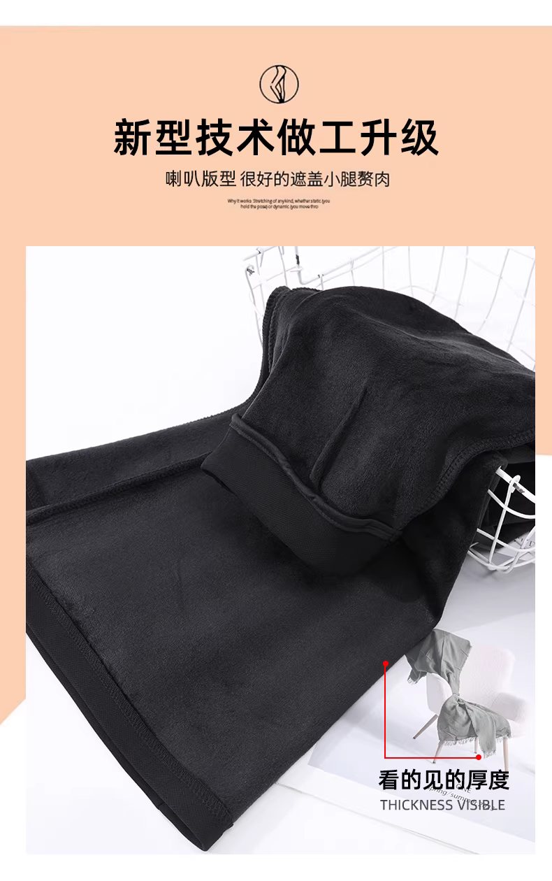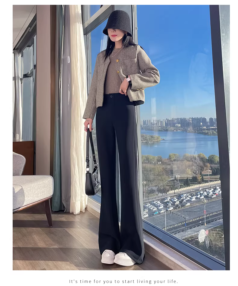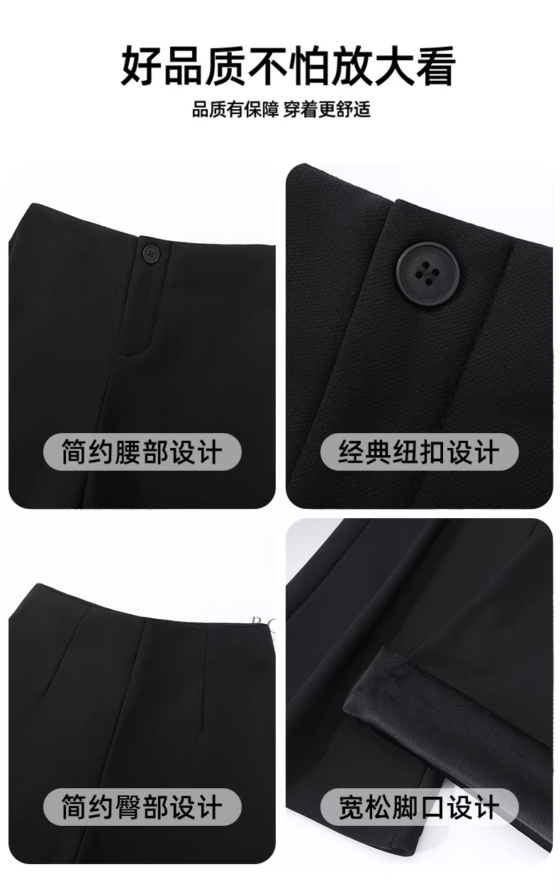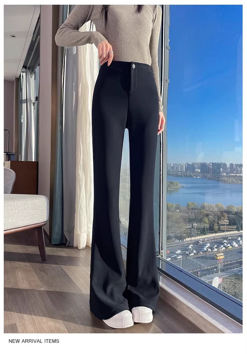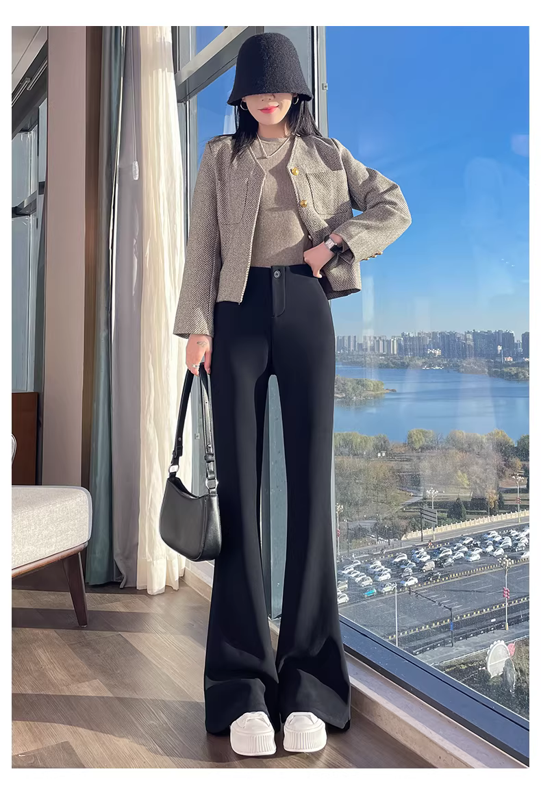- Quần âu nữ La Chapelle lót lông cừu, màu đen, cạp cao, dáng loe, kiểu mới thu đông 2025, quần loe không bó sát