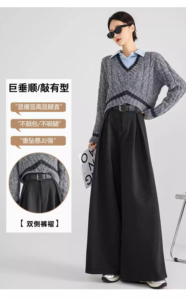 - Quần âu nữ La Chapelle màu xám đậm, chất liệu len lót lông cừu, dáng rộng, kiểu mới thu đông 2025, cạp cao, ống thẳng, rộng rãi