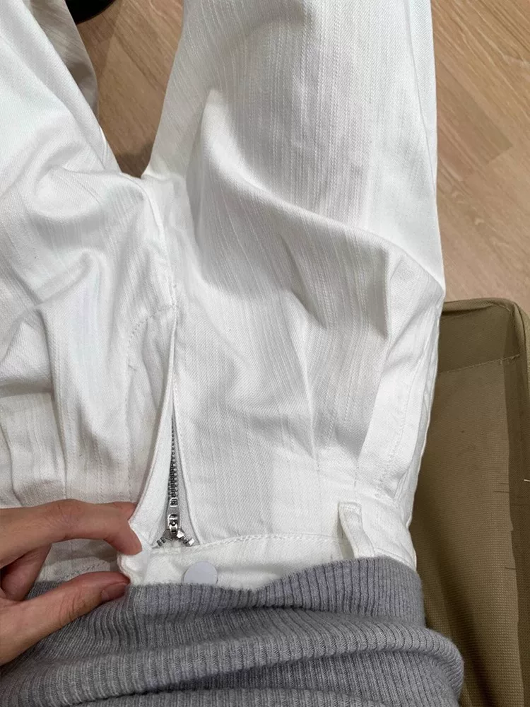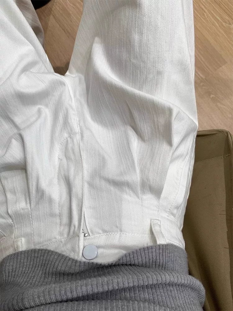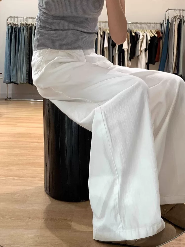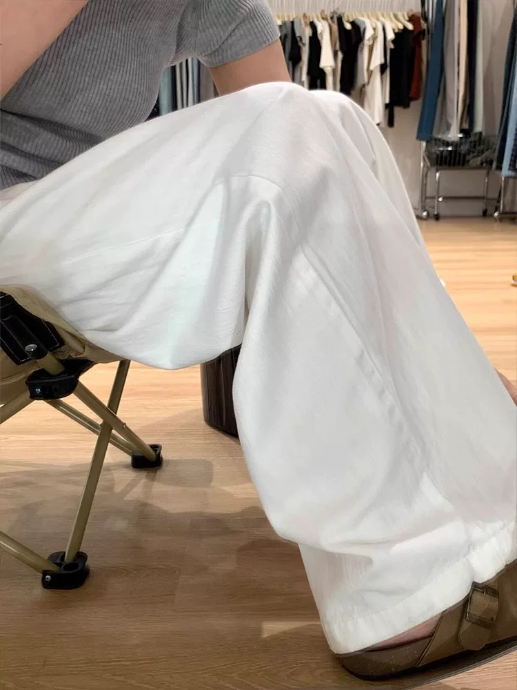 Quần âu nữ ống đứng màu trắng, hè 2025, chất liệu mỏng, size lớn, cạp cao, dáng rộng, suôn mềm, tôn dáng, quần ống rộng
