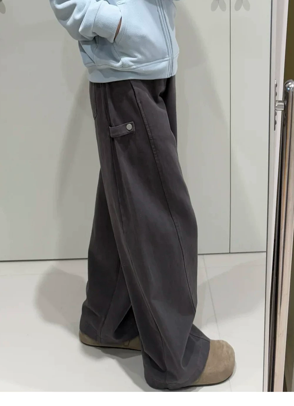 - Quần âu nữ thu đông, size lớn, lót lông cừu, quần cargo dày dặn, dáng quả lê, lưng cao, tôn dáng, quần ống rộng
