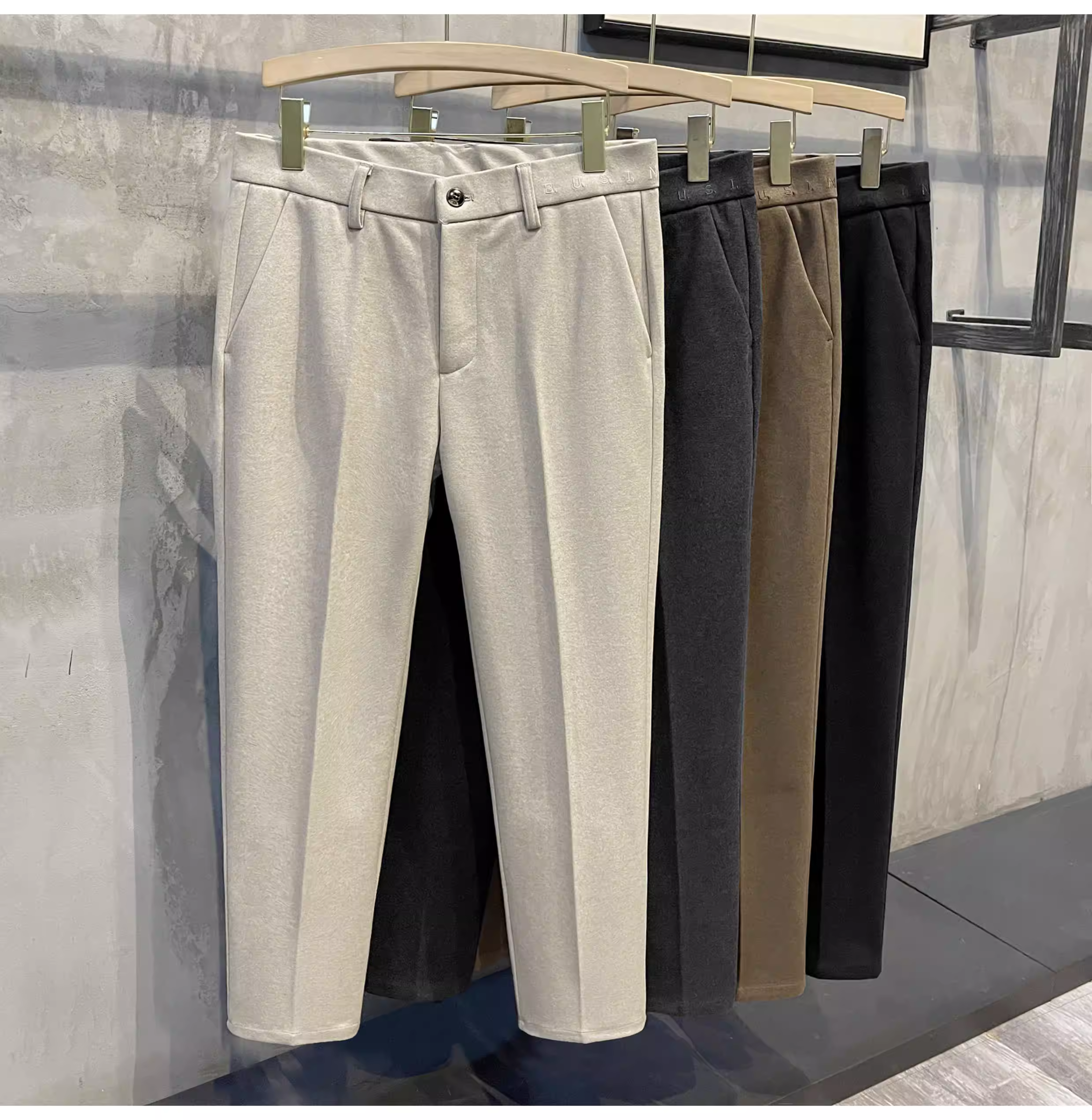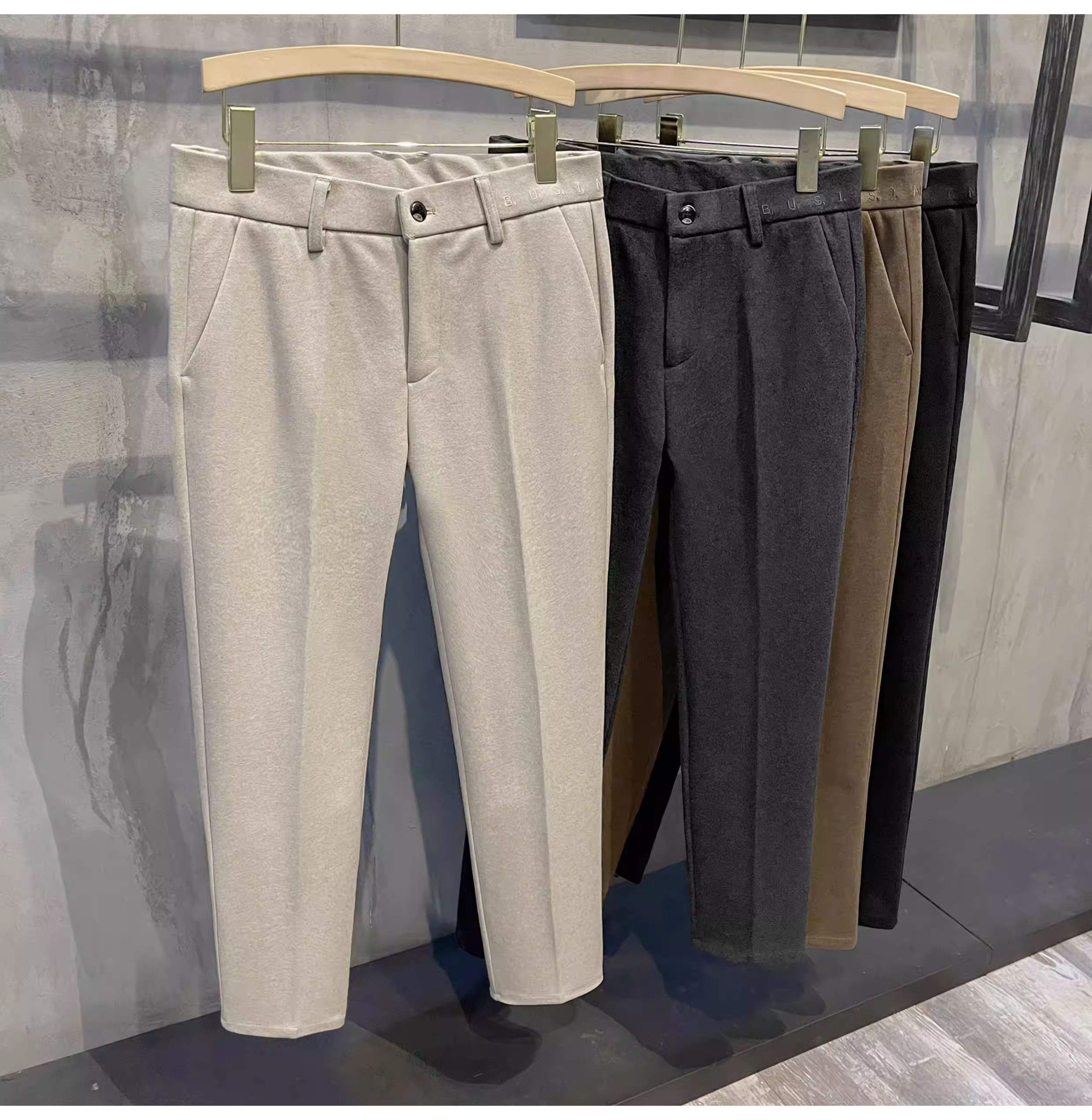 - Quần âu ống đứng LUUD 2025 chất liệu len dạ sao trời, lông cừu chải mềm giữ ấm, quần thường ngày có thiết kế chữ cái tiếng Anh trên lưng quần, quần nam.