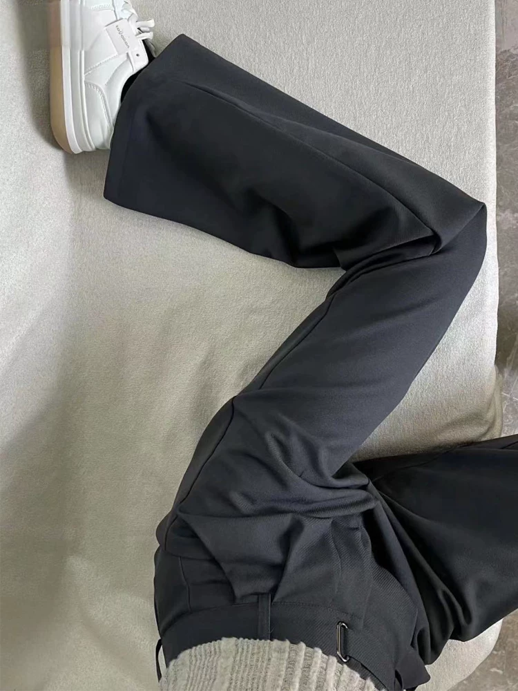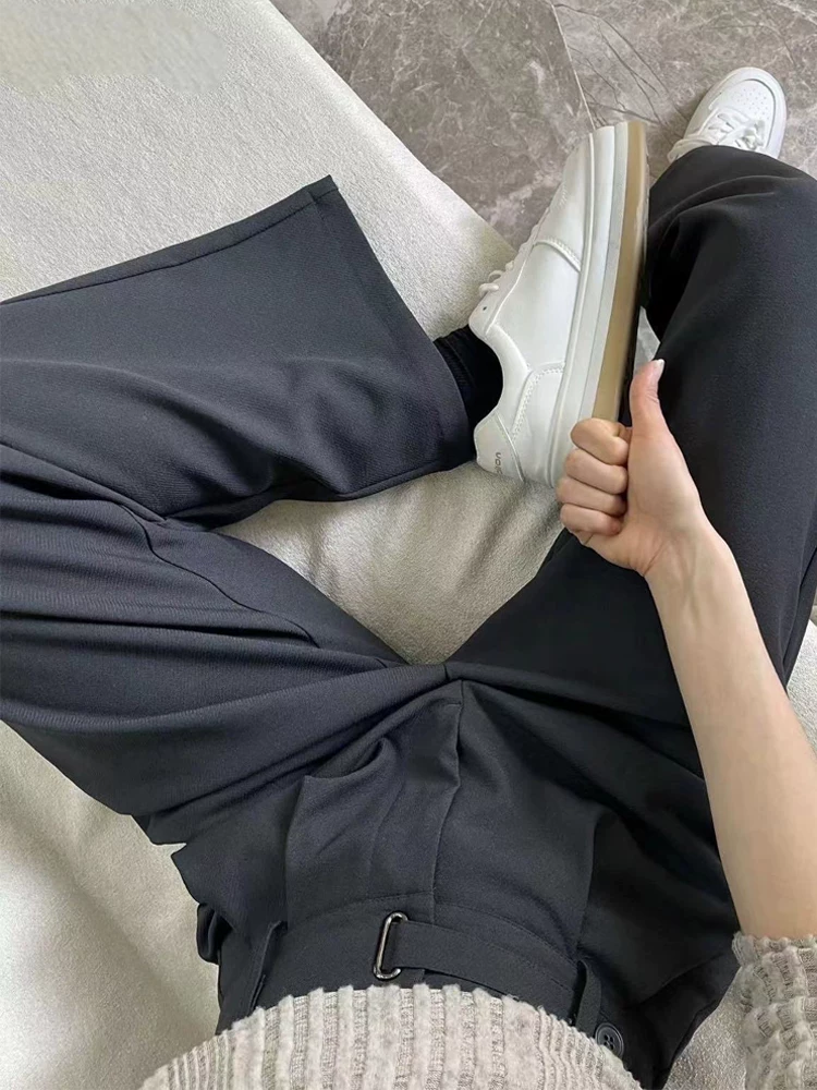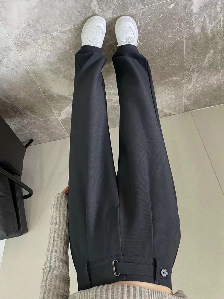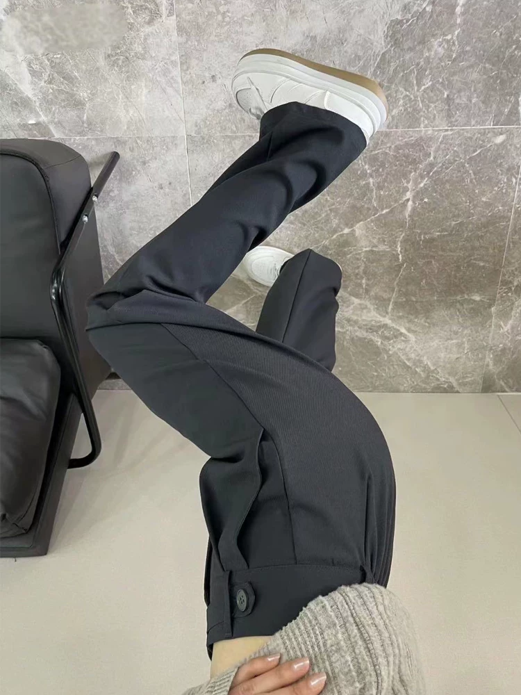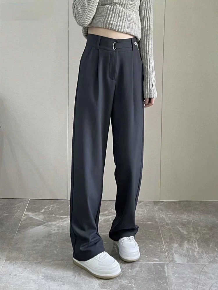 - Quần âu ống đứng màu xám dành cho nữ, phong cách mới đầu thu, cỡ lớn, lưng cao, mềm mại, che hông, giảm béo, quần ống rộng thông thường