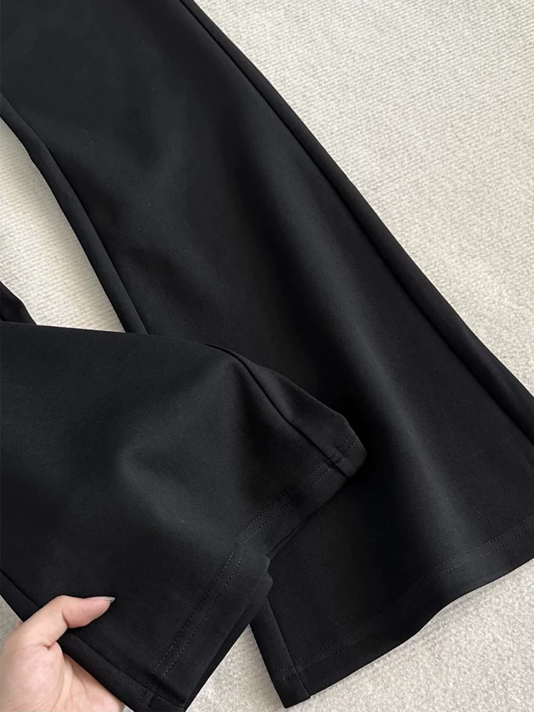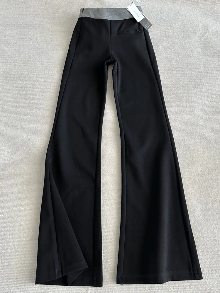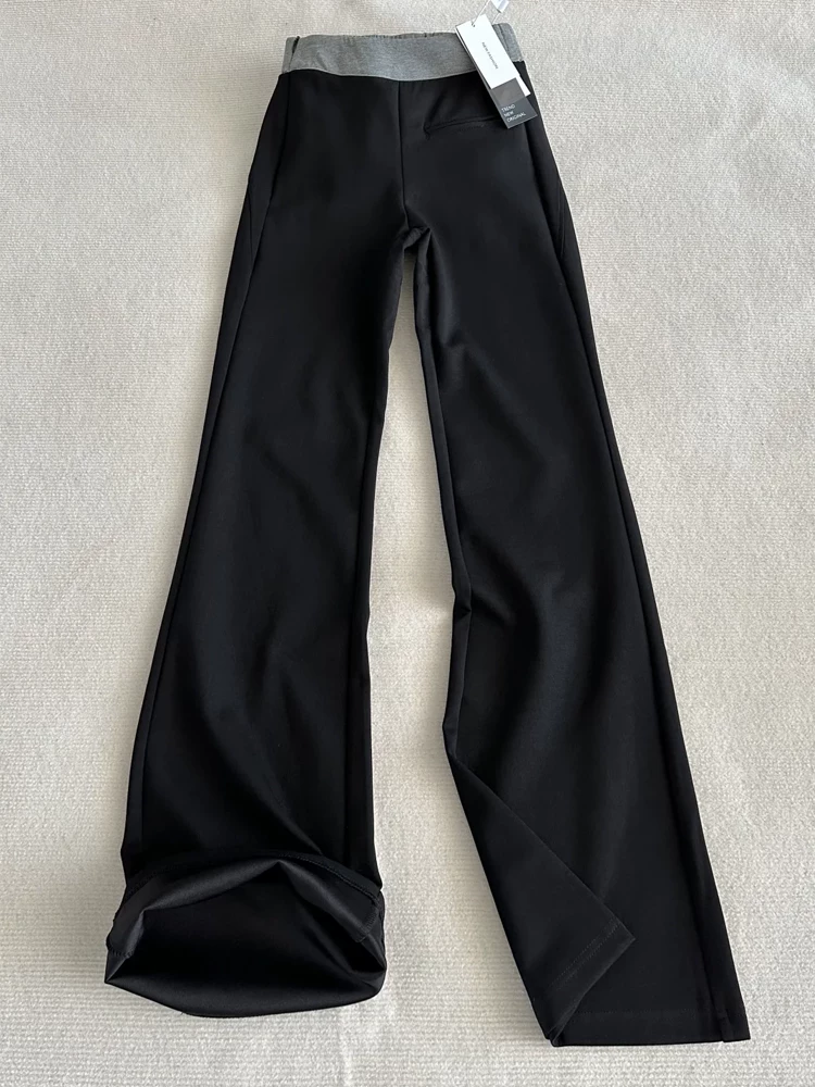 Quần âu phối màu đen dành cho nữ, cỡ lớn mùa hè, cạp cao, co giãn, tôn dáng, quần thể thao ống loe, quần dài chạm sàn.