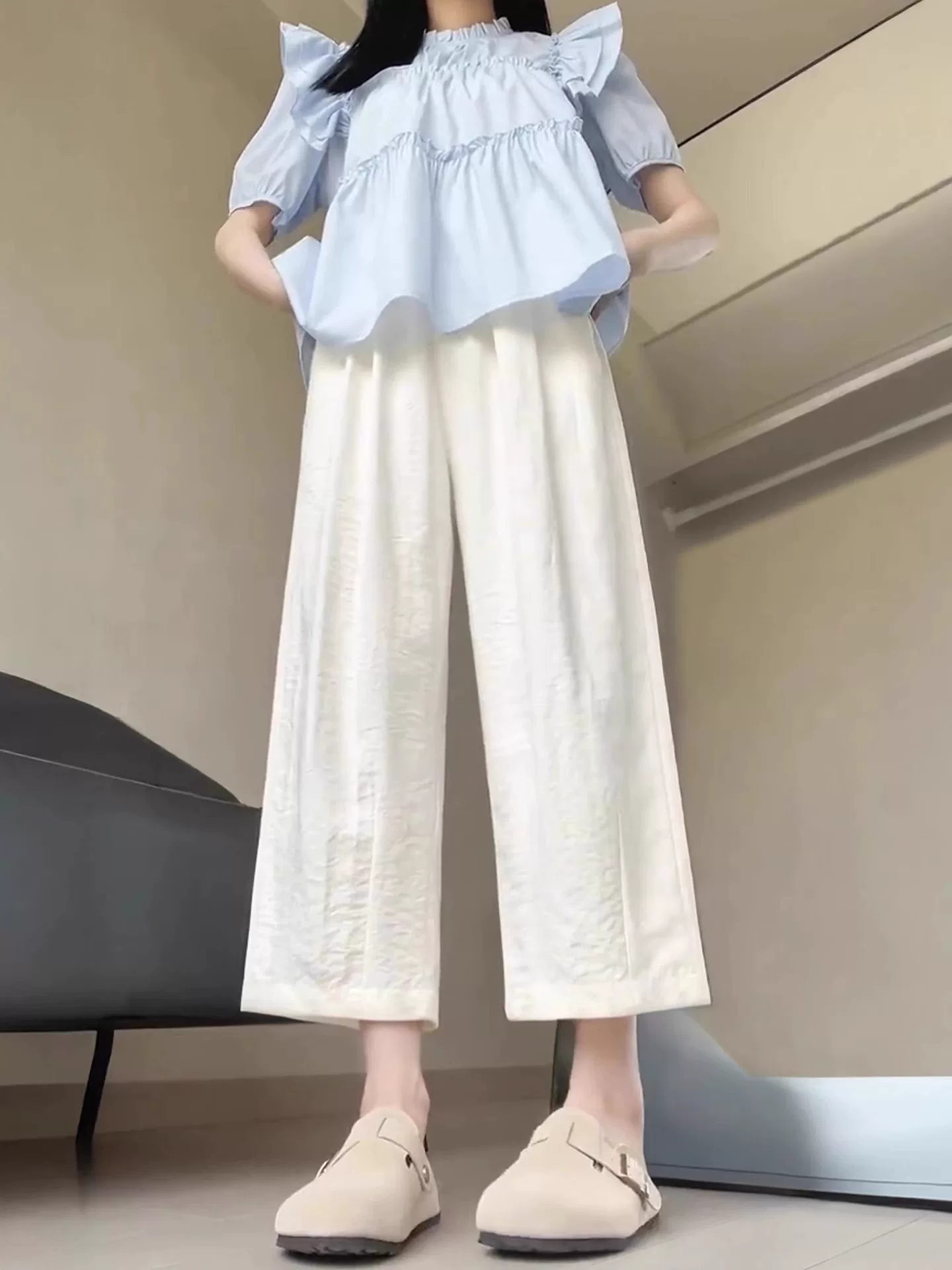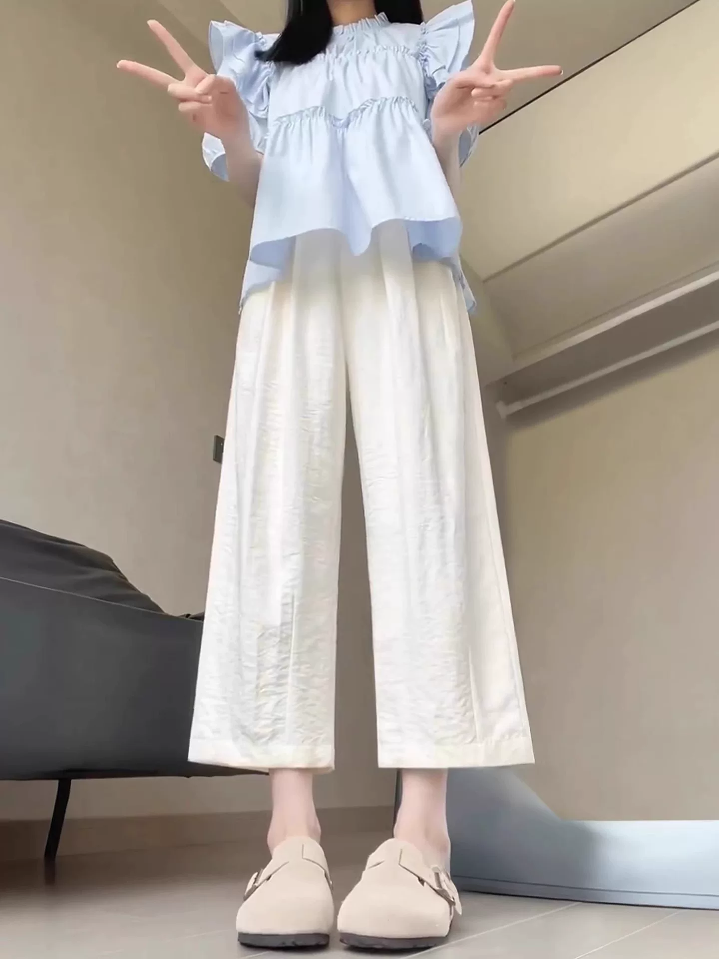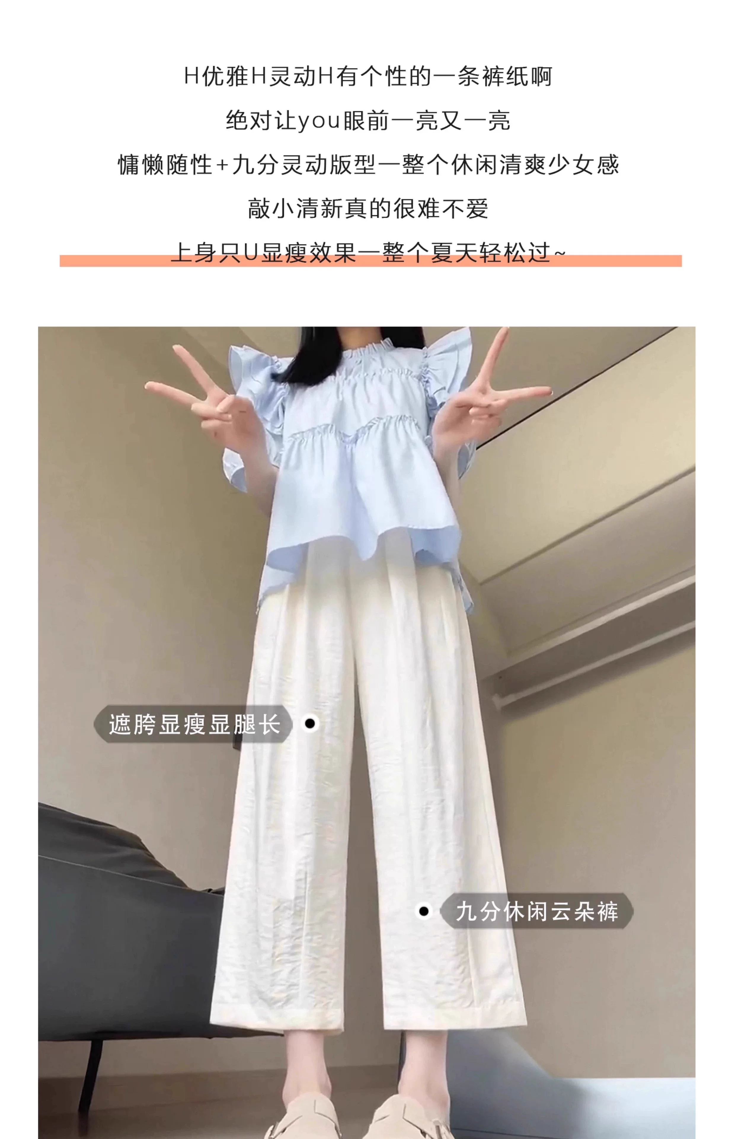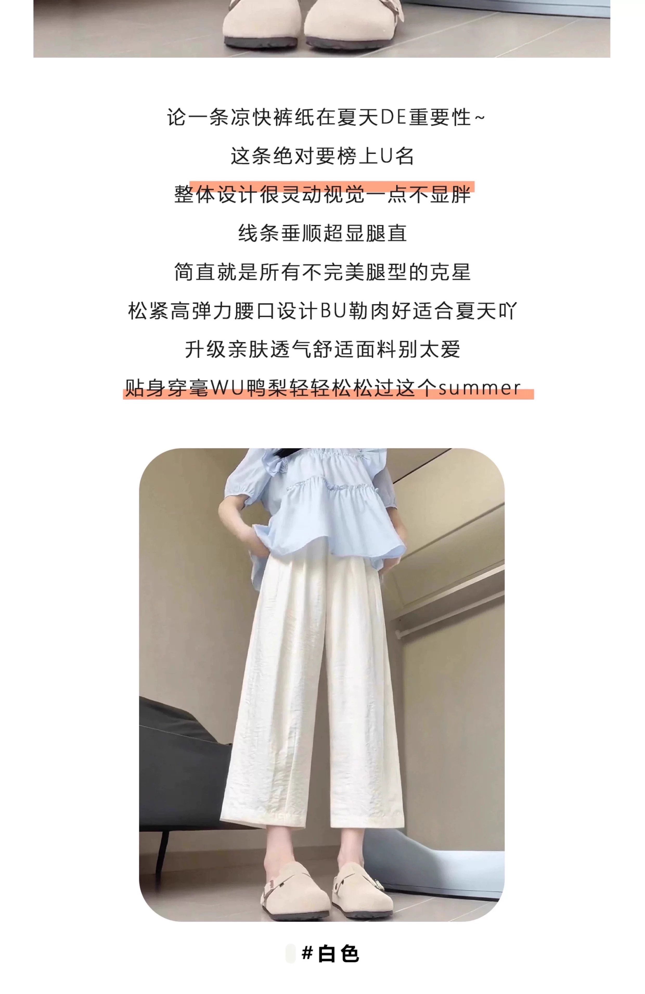 Quần âu trắng cho nữ, kiểu dáng mỏng mùa hè, cỡ lớn, lưng cao, dáng rộng, giảm béo, quần bóng dáng rộng, quần ống rộng mây.