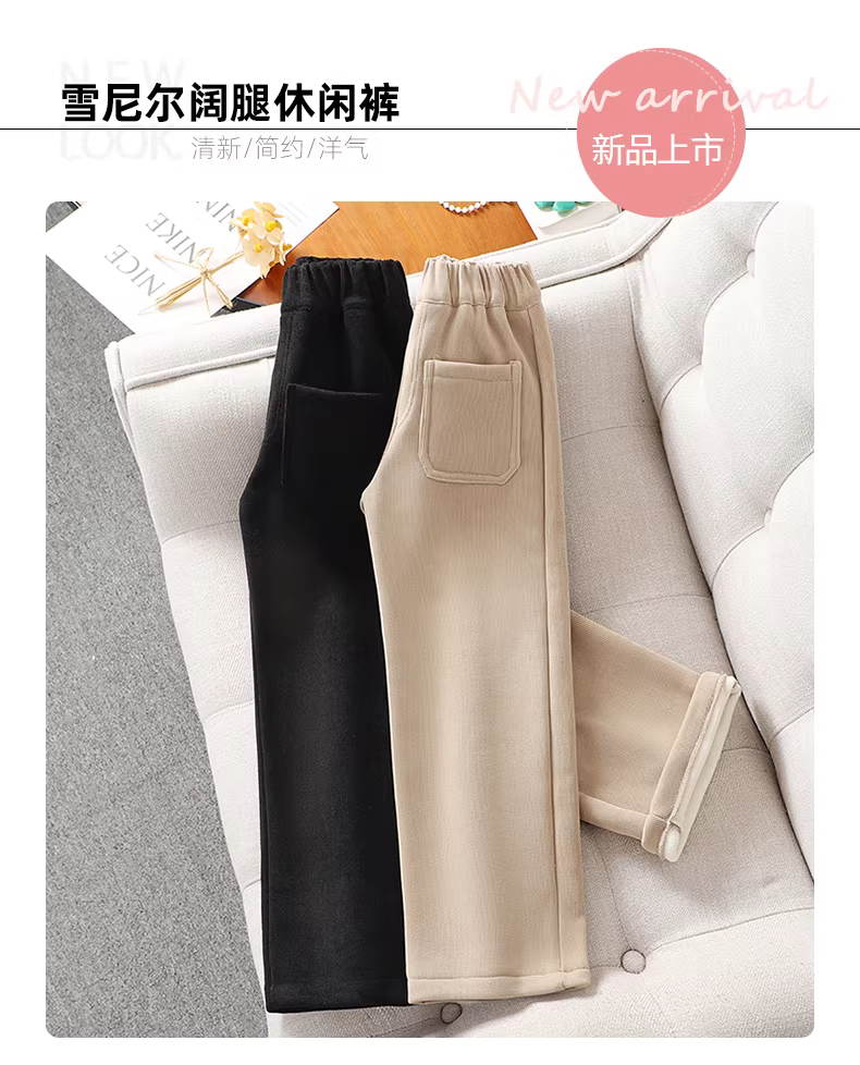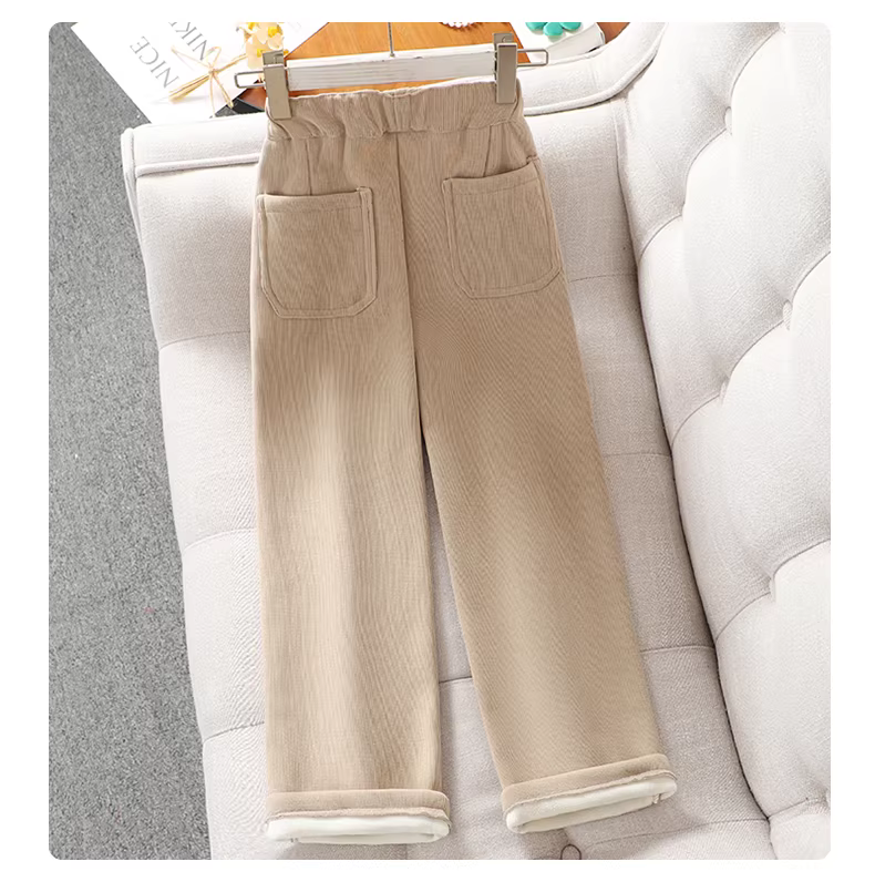 - Quần bé gái mùa thu đông kiểu mới quần thể thao ống rộng lót lông cừu mùa đông cho bé gái lớn quần thể thao ống rộng dáng thẳng thường ngày cho trẻ em