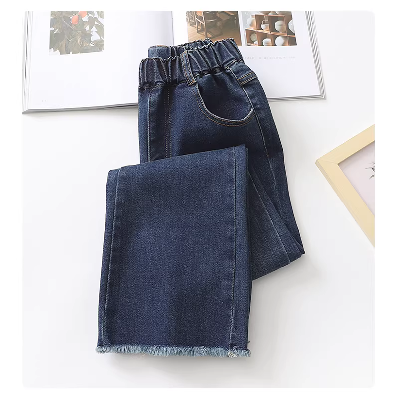 - Quần bé gái mùa thu đông phong cách mới quần áo trẻ em quần jean ống loe cho trẻ lớn hơn trang phục mùa thu quần ống loe quần lót lông cừu sành điệu