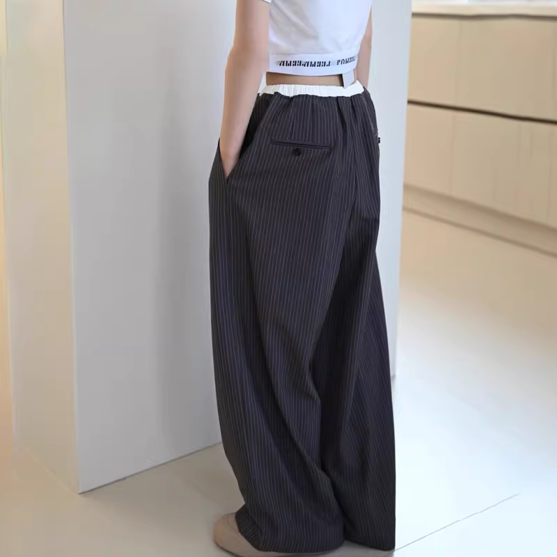 - Quần bé gái quần âu trẻ em 25 xuân hè kiểu mới quần ống rộng thường ngày cho trẻ lớn quần ống rộng kẻ sọc cho bé gái