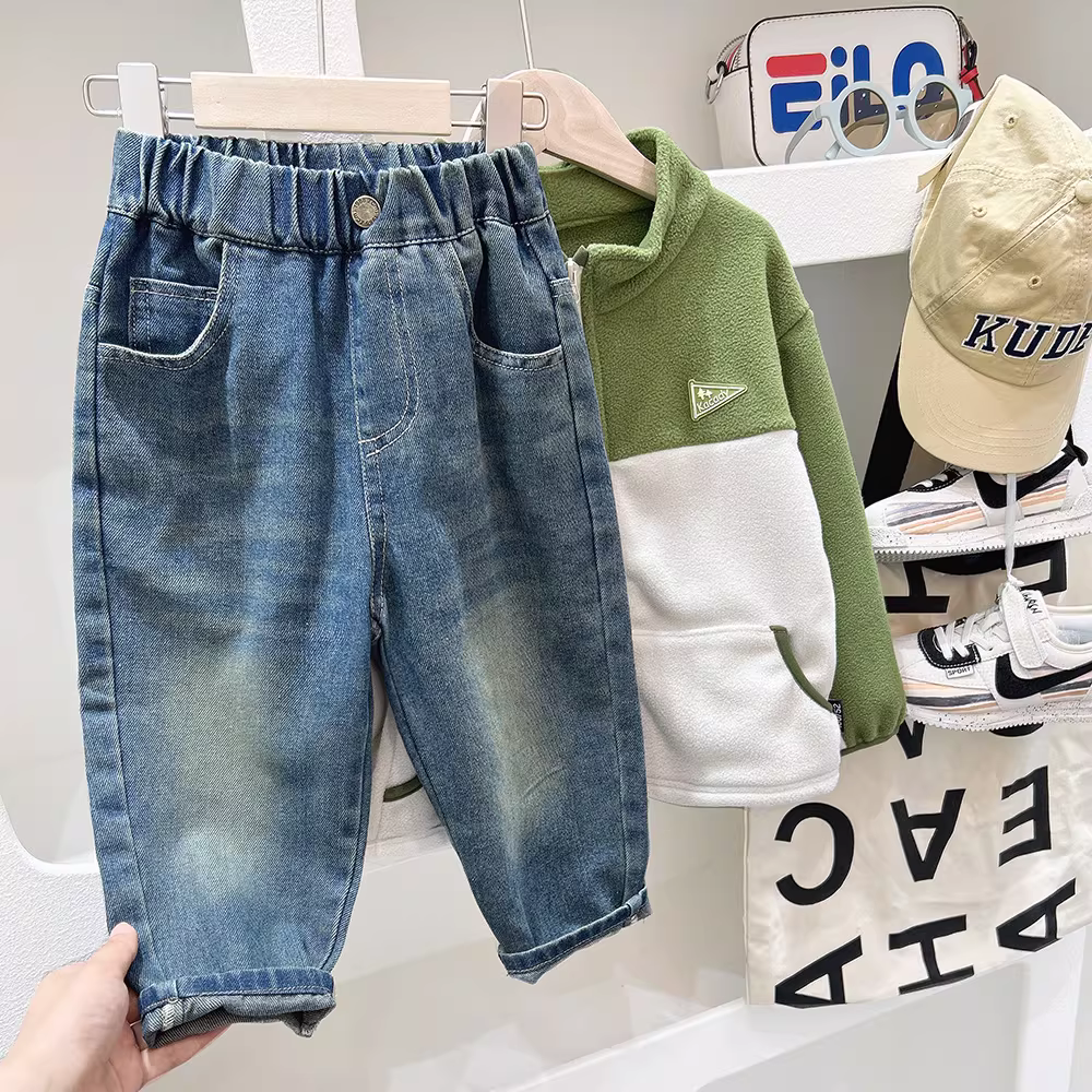 - Quần bé trai kiểu mới 2025 dành cho trẻ lớn, quần jean rộng rãi mùa xuân thu, quần jean hoạt hình cho bé trai và trẻ em.
