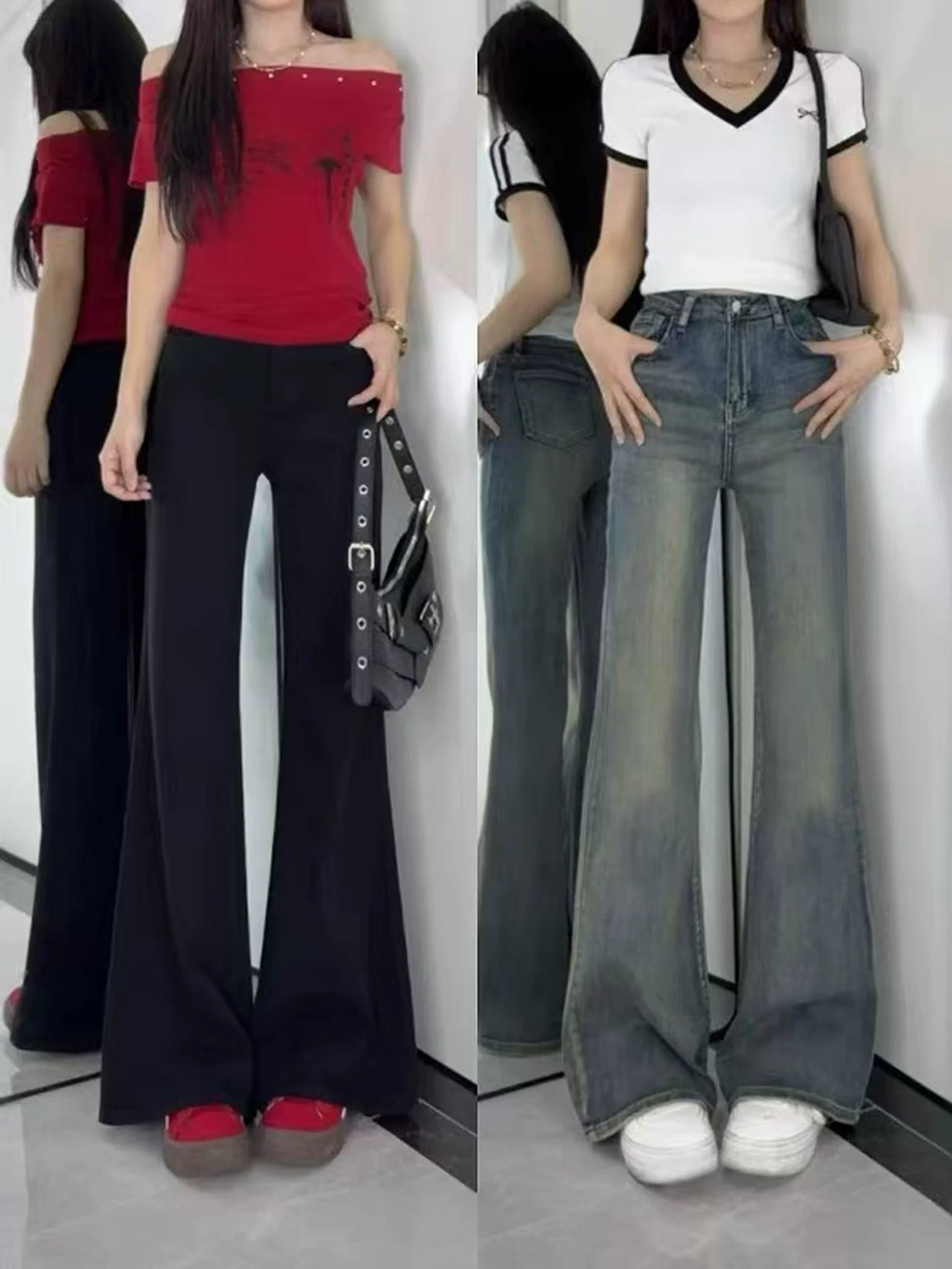 - Quần bootcut màu xanh retro dành cho nữ, thu đông 2025, size lớn, dành cho người mập, cạp cao, co giãn, che hông, tôn dáng, kiểu dáng quần jeans móng ngựa