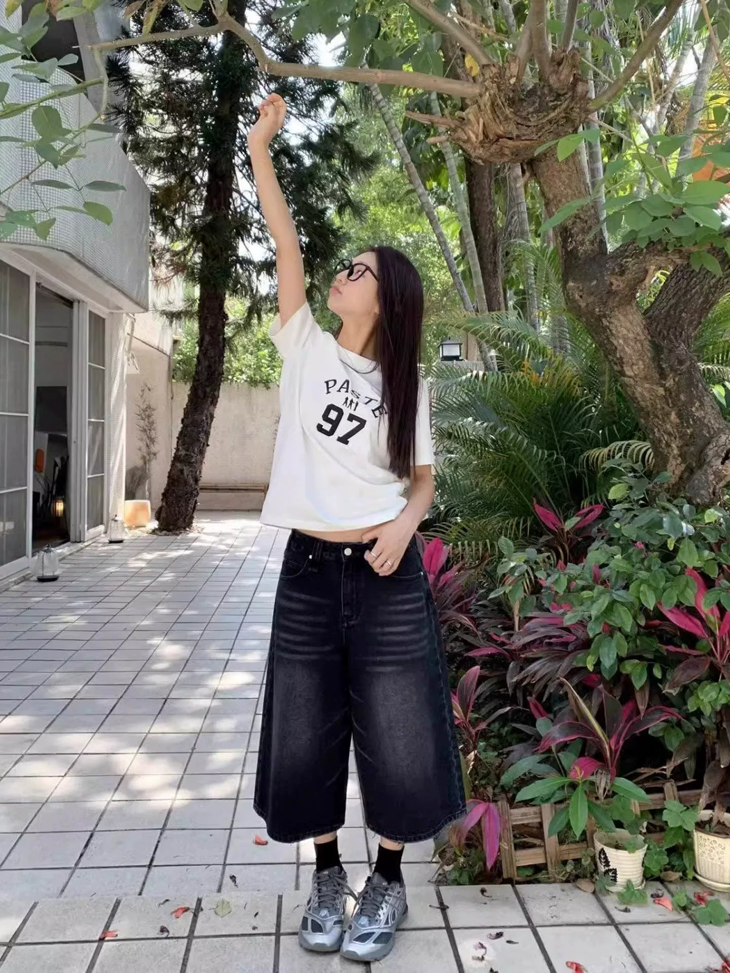 - Quần capri denim cổ điển dành cho nữ, phong cách mới mùa hè, cỡ lớn, lưng cao, thon gọn, nhỏ nhắn, quần ống thẳng, quần ống rộng dài vừa phải.