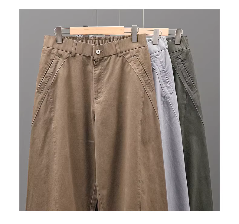 - Quần cargo cotton nguyên chất hạng nặng dành cho nam, mùa thu đông phong cách Mỹ, quần dài dáng rộng, dáng rộng, phong cách retro, quần dài dáng rộng, phong cách cổ điển