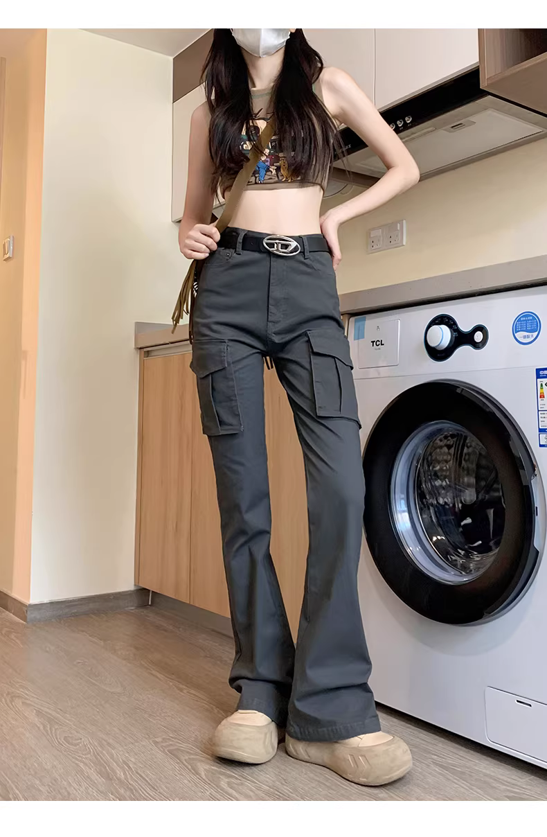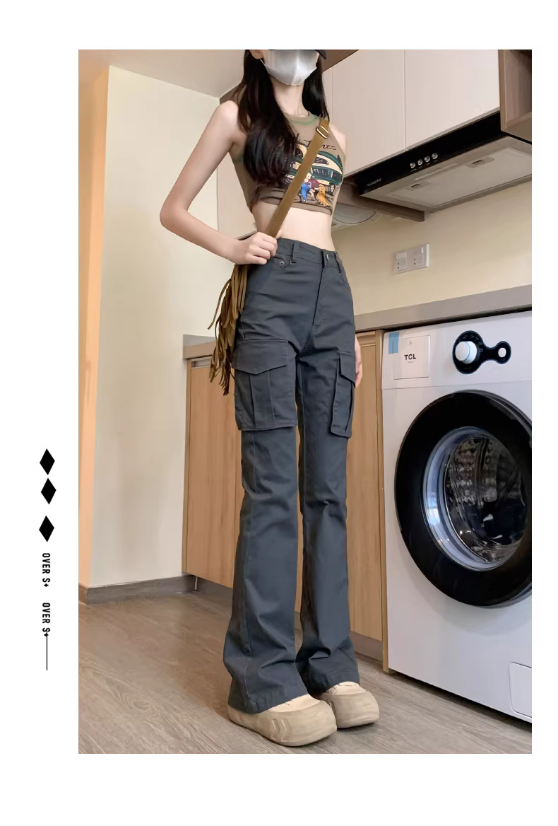 Quần cargo dáng rộng La Chapelle dành cho nữ, kiểu mới thu đông 2025, phong cách Mỹ, cạp cao, dáng nhỏ nhắn, quần ống loe dài chấm đất.