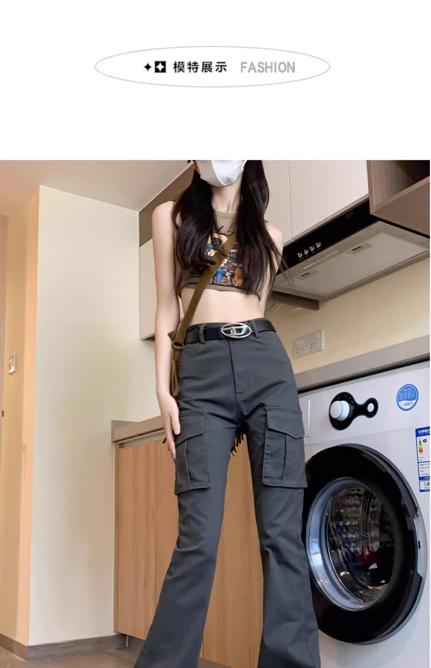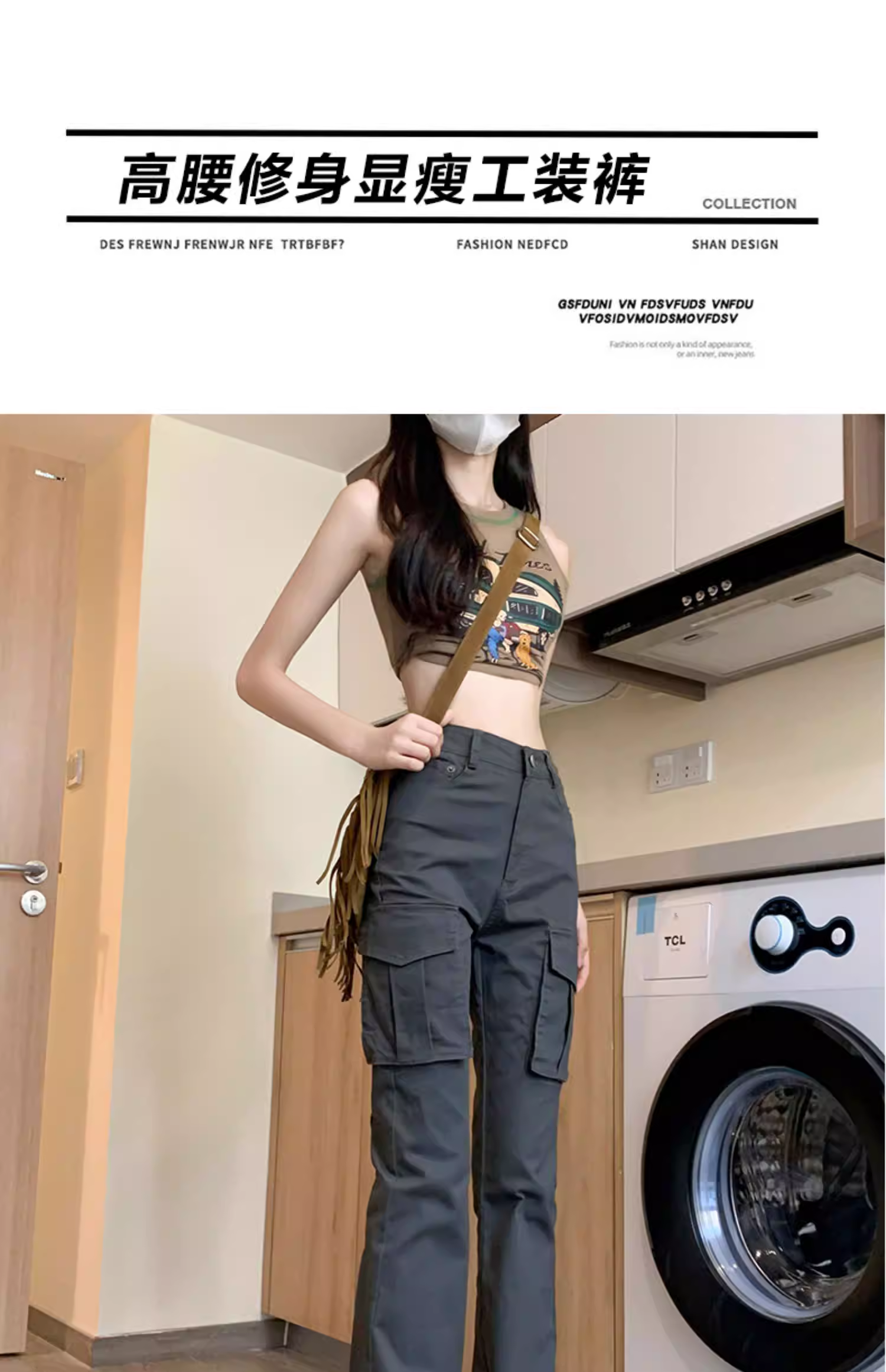 - Quần cargo dáng rộng La Chapelle dành cho nữ, kiểu mới thu đông 2025, phong cách Mỹ, cạp cao, dáng nhỏ nhắn, quần ống loe dài chấm đất.