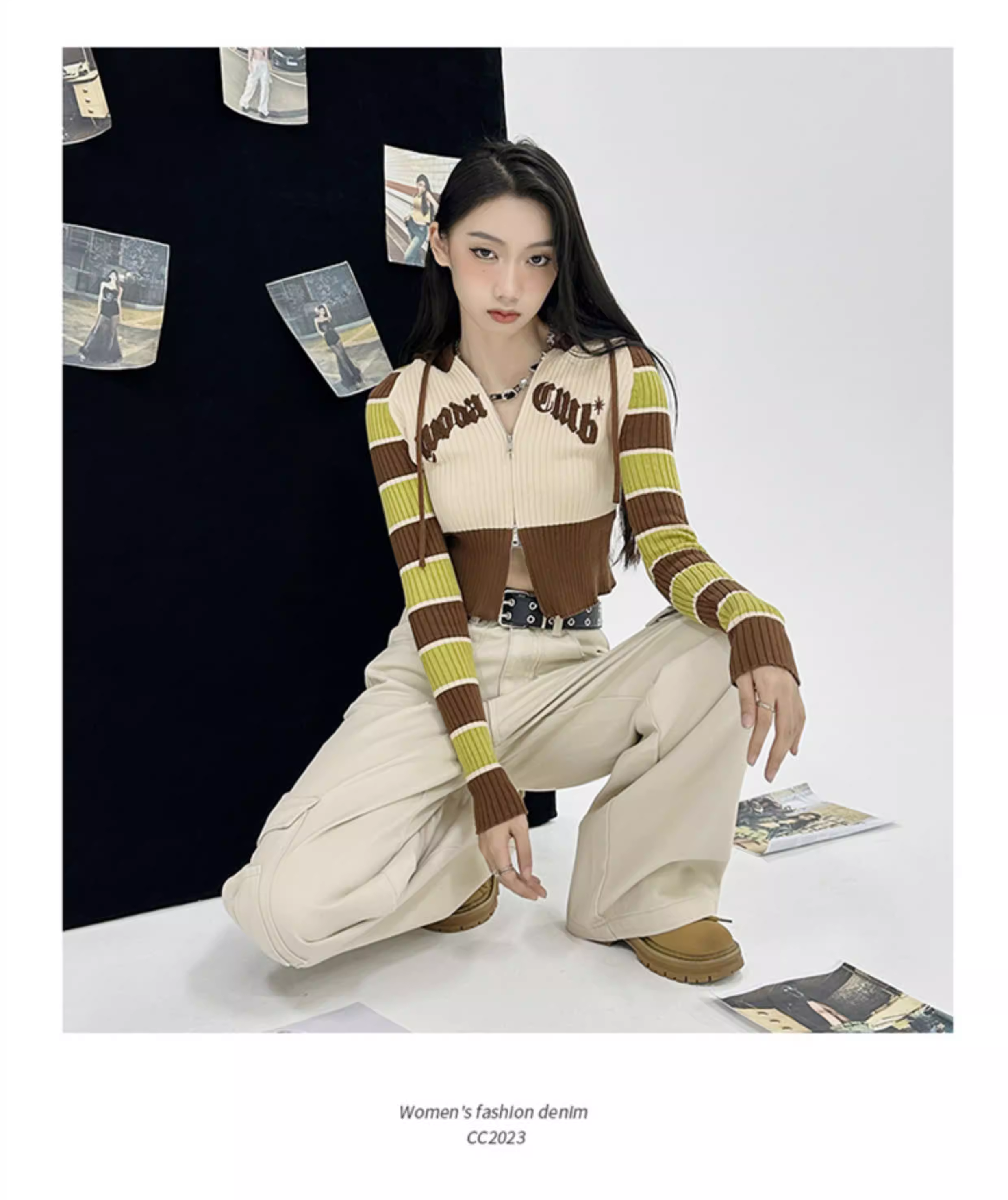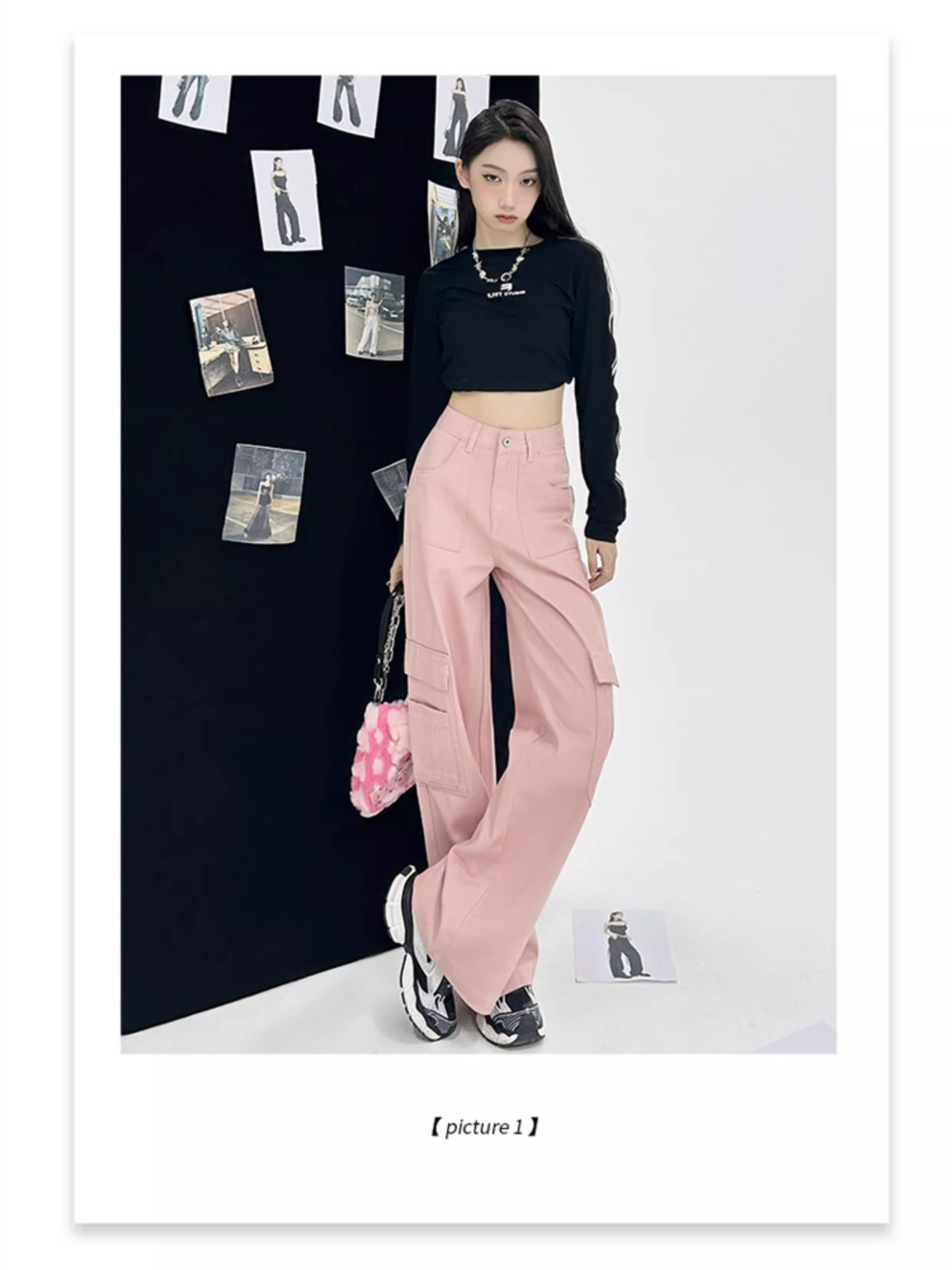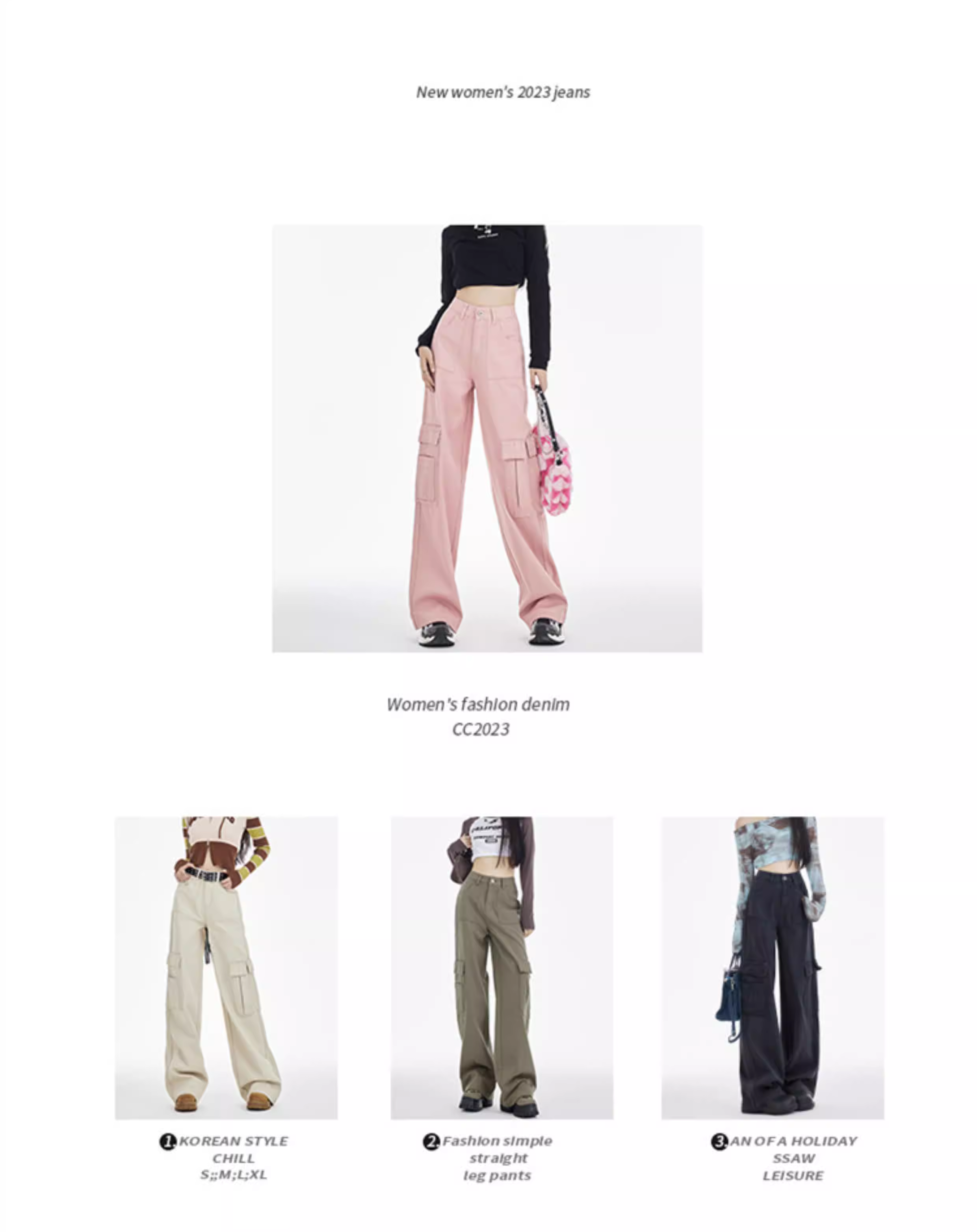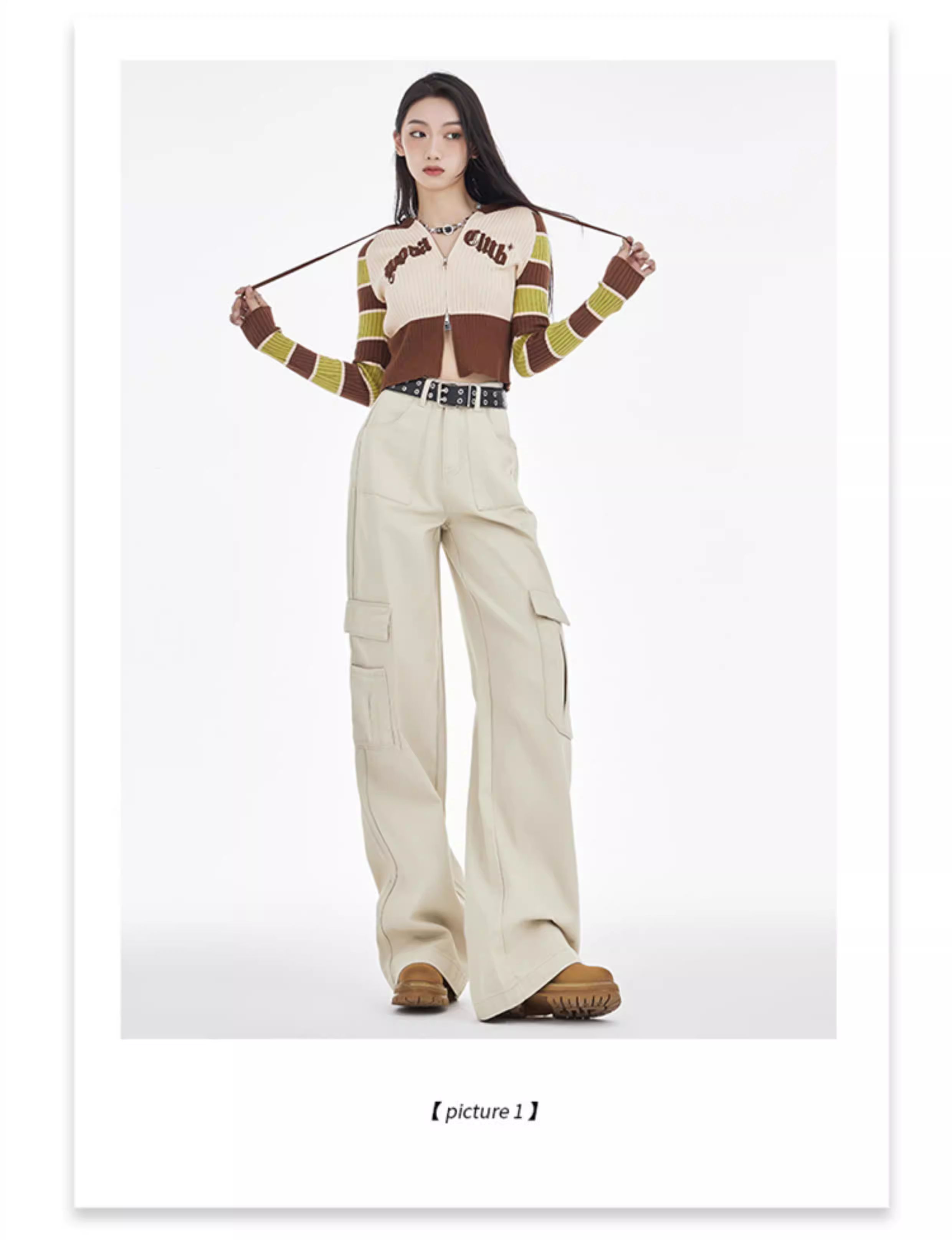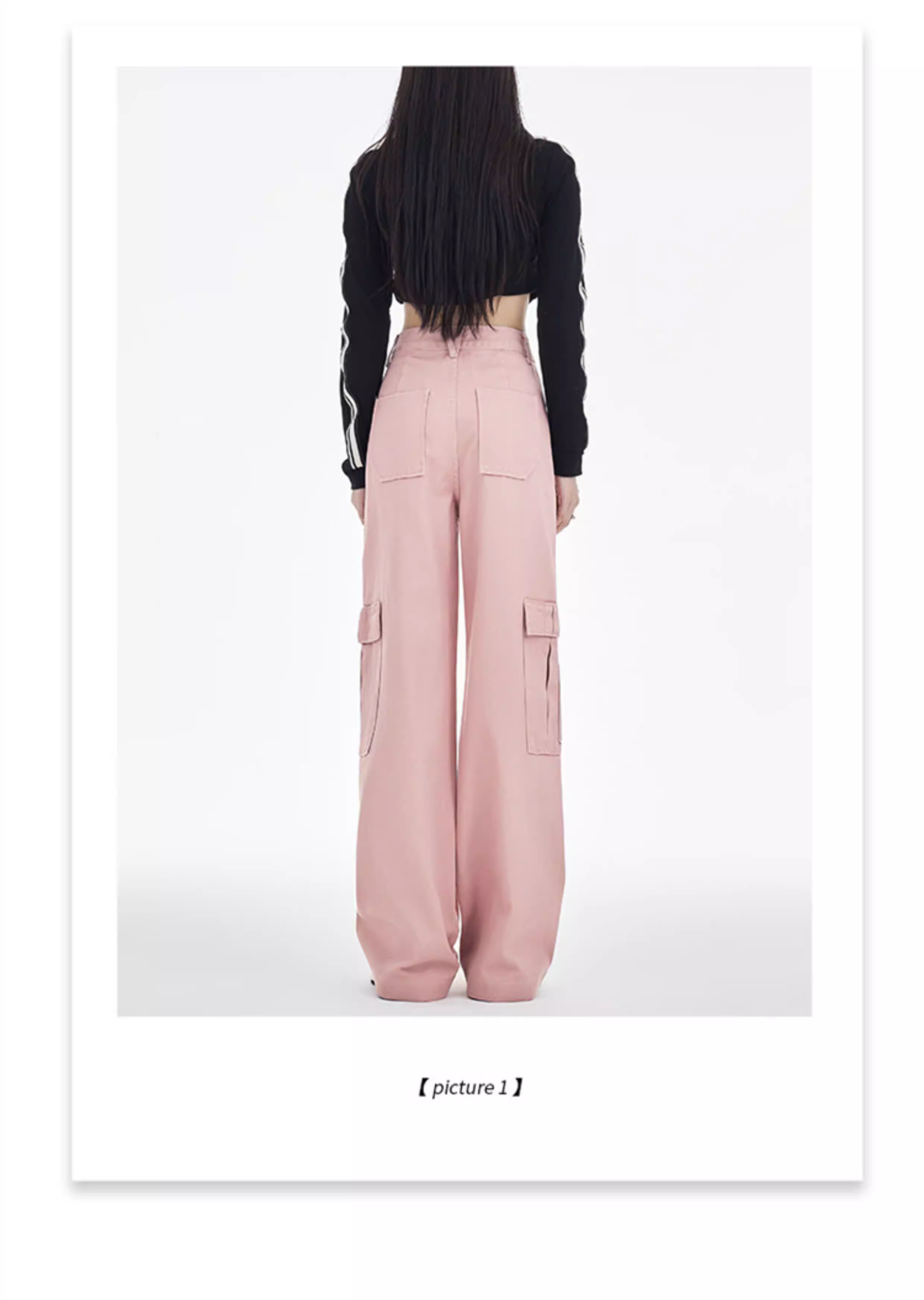 - Quần cargo denim kiểu Mỹ La Chapelle dành cho nữ, thu đông 2025, kiểu mới, cạp cao, màu xám xi măng, lót lông, dáng rộng, ống rộng