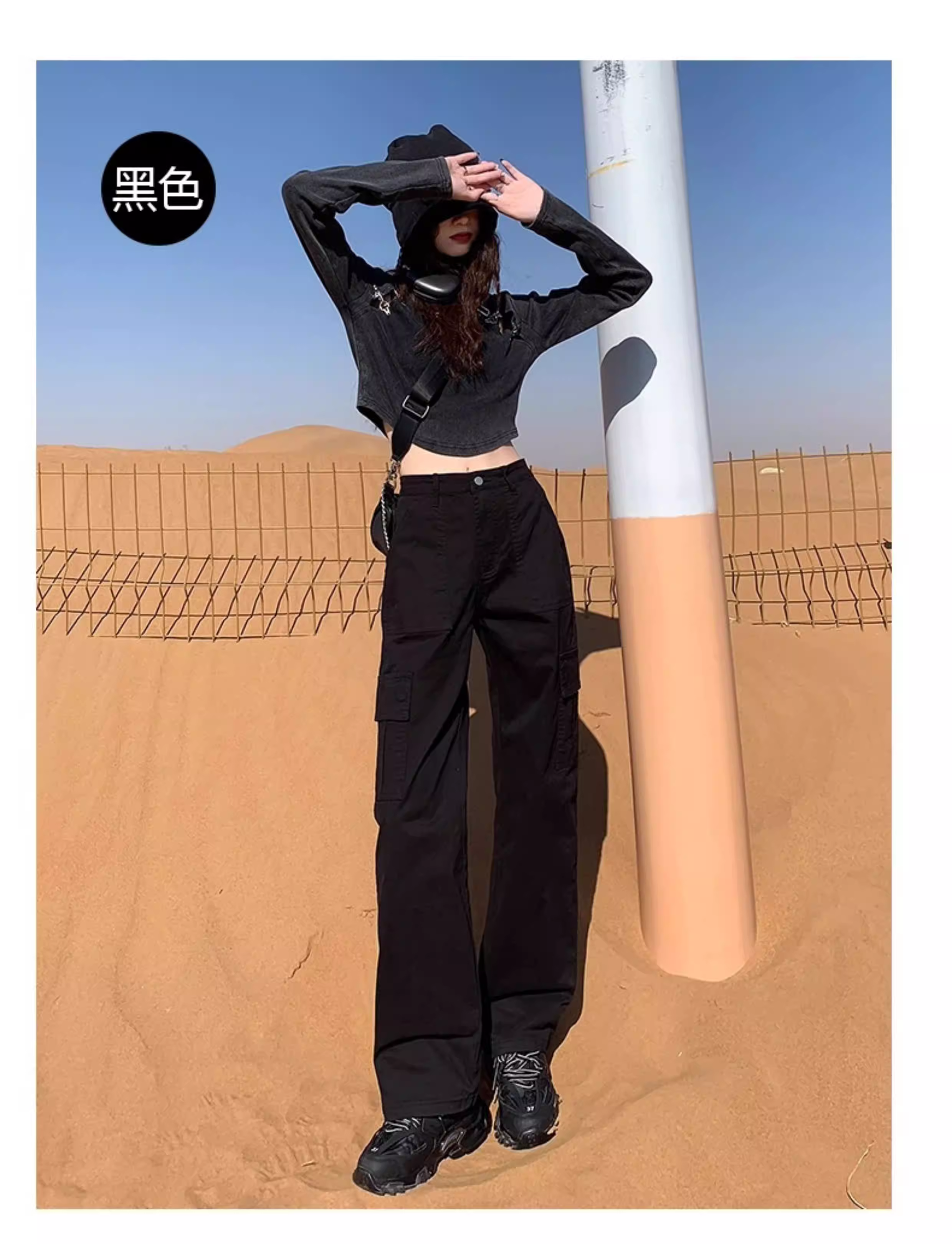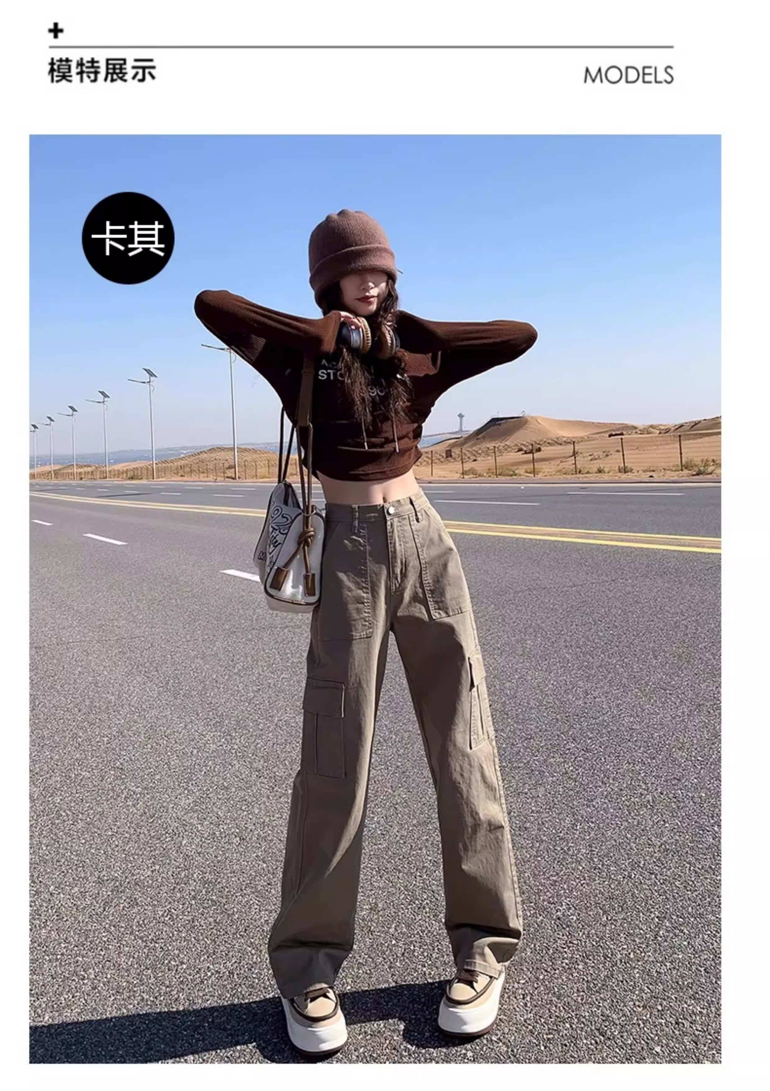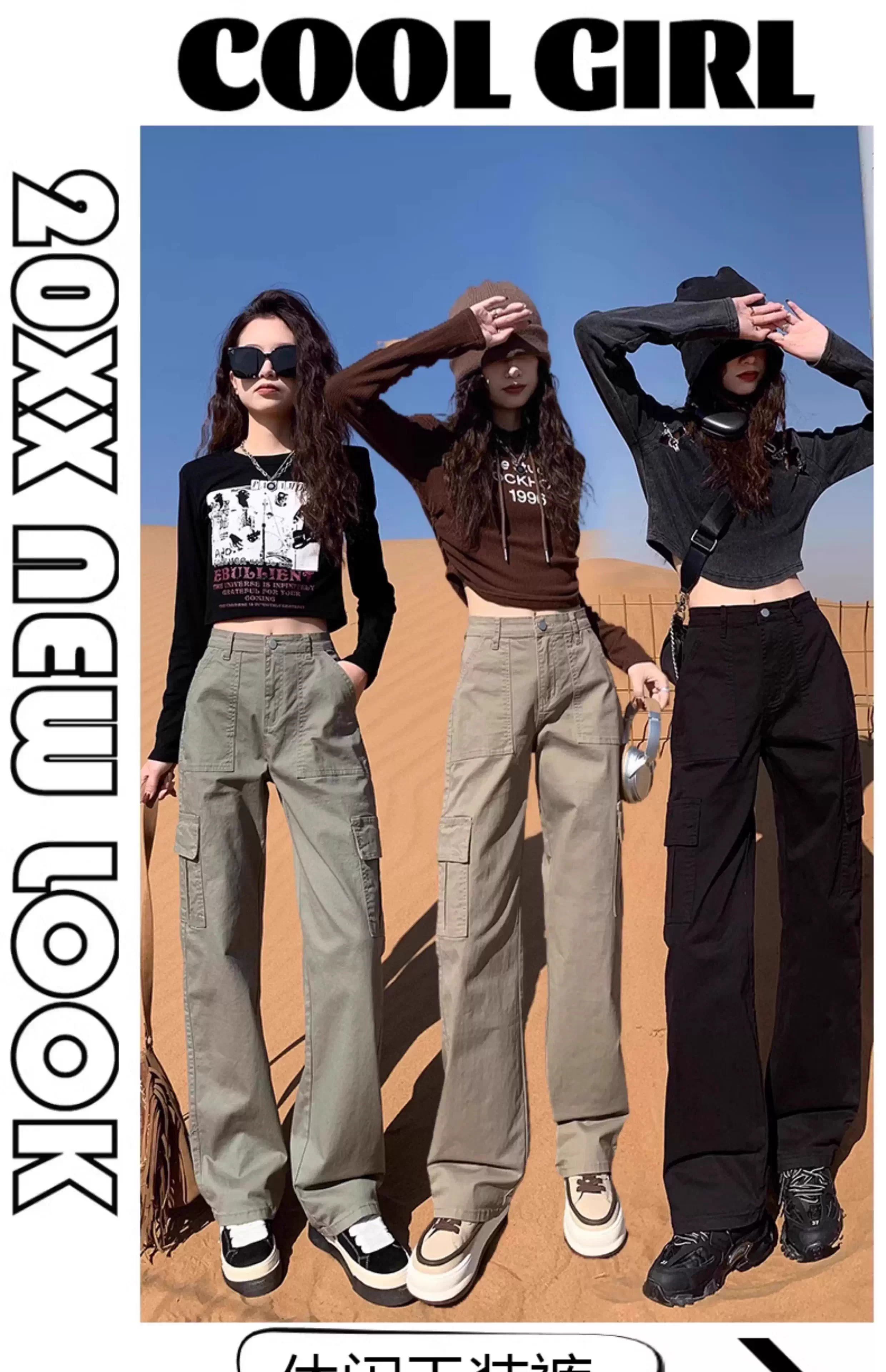 Quần cargo denim ống rộng dáng suông La Chapelle dành cho nữ, mẫu mới thu 2025, phong cách Mỹ, cạp cao, dáng thẳng, size nhỏ nhắn