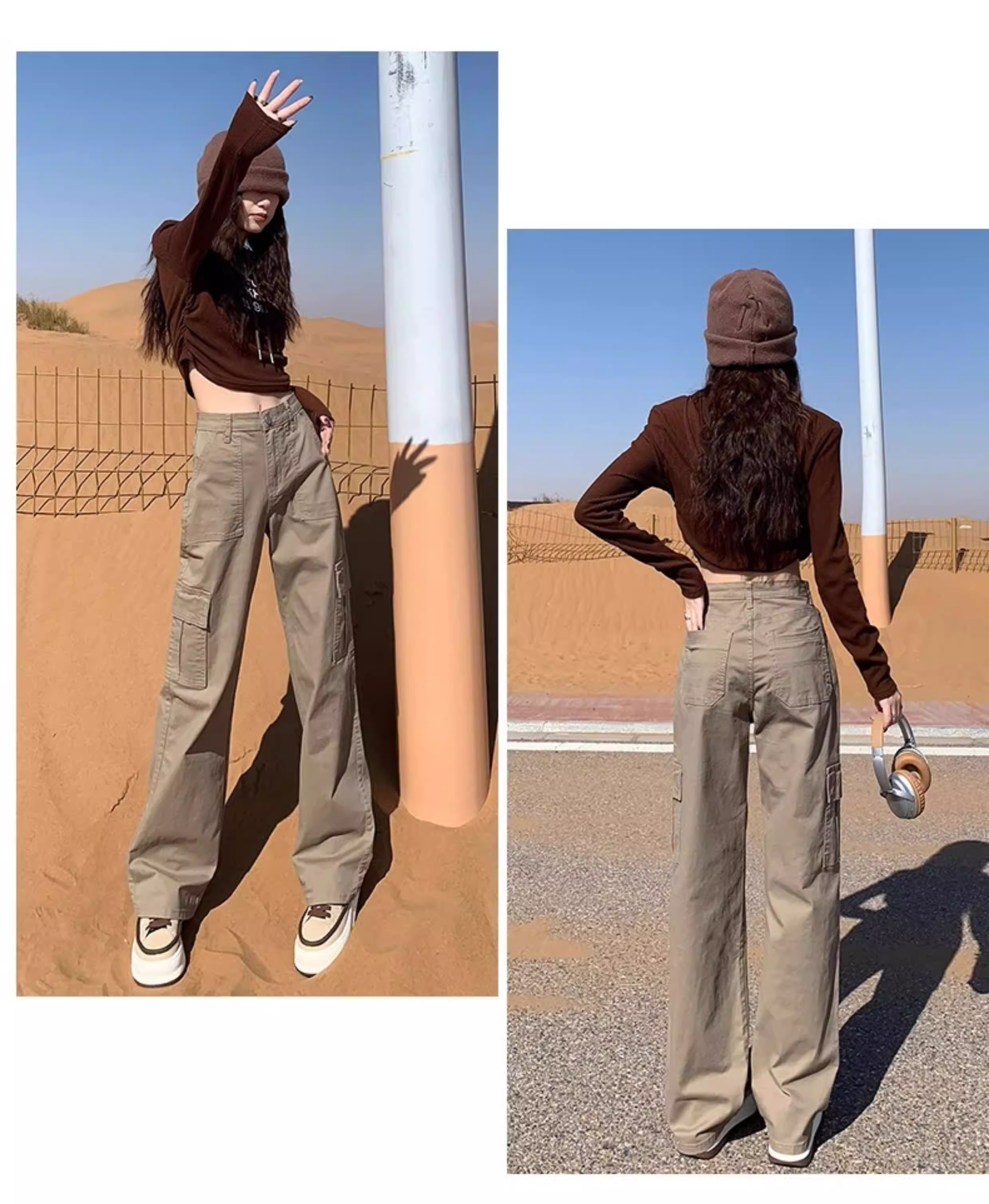 - Quần cargo denim ống rộng dáng suông La Chapelle dành cho nữ, mẫu mới thu 2025, phong cách Mỹ, cạp cao, dáng thẳng, size nhỏ nhắn