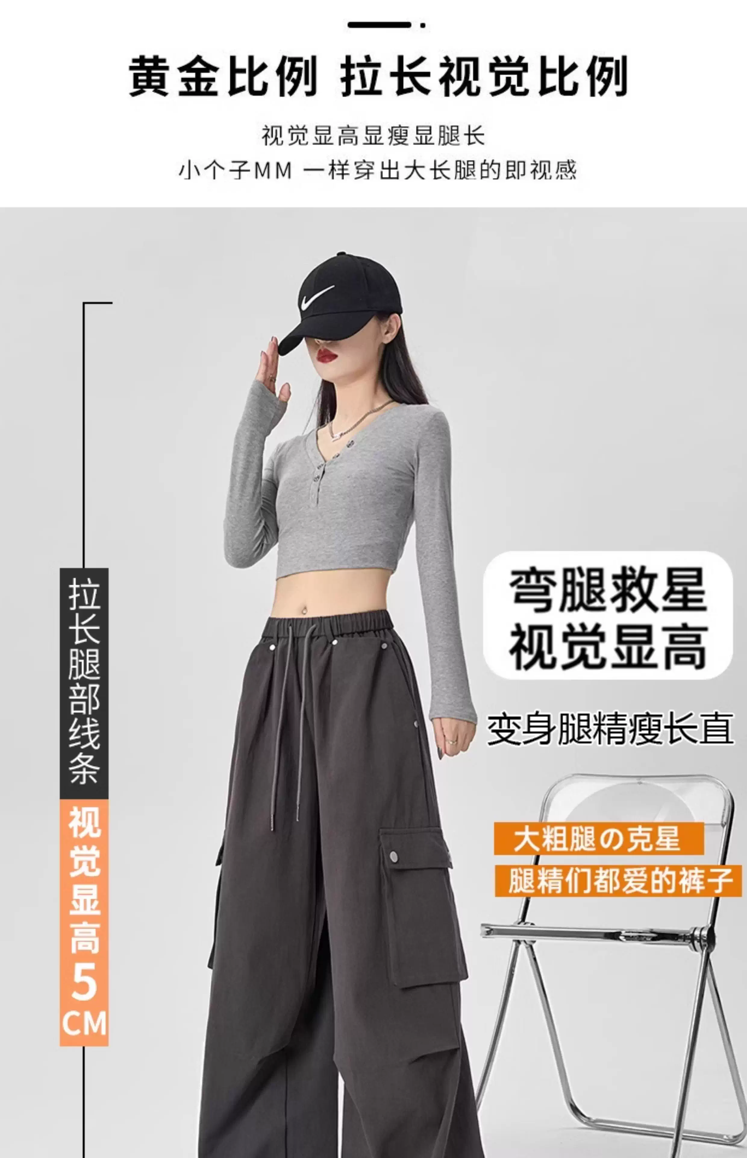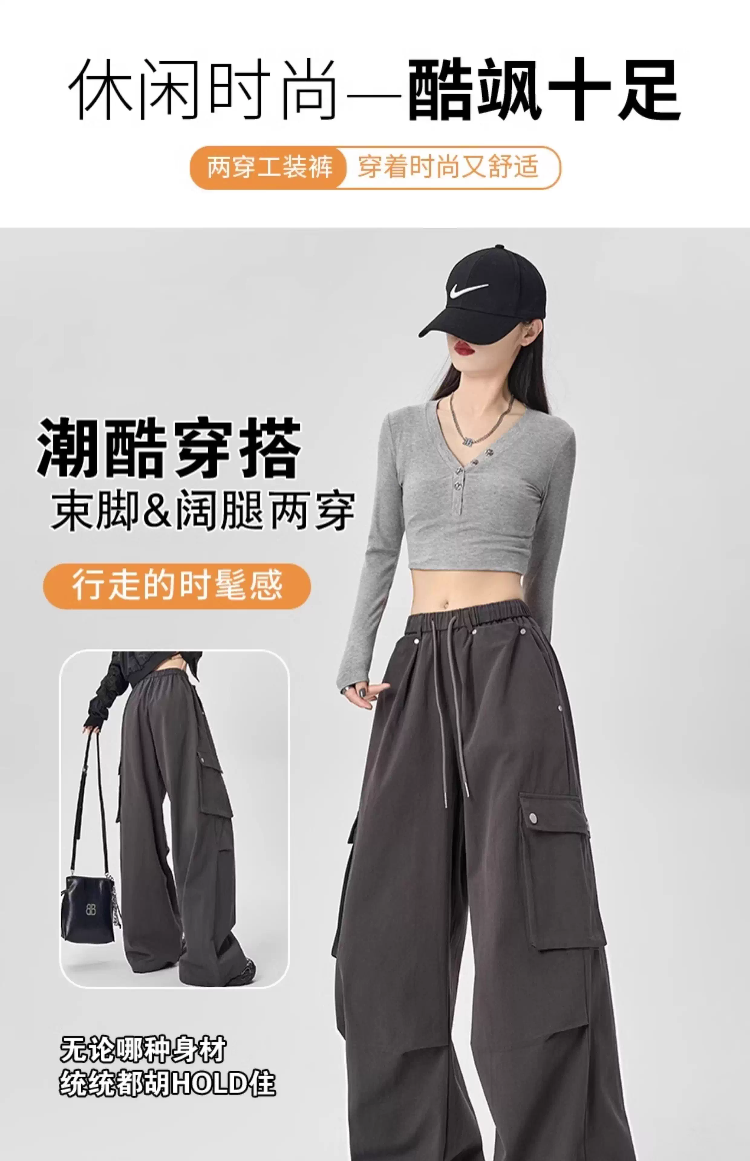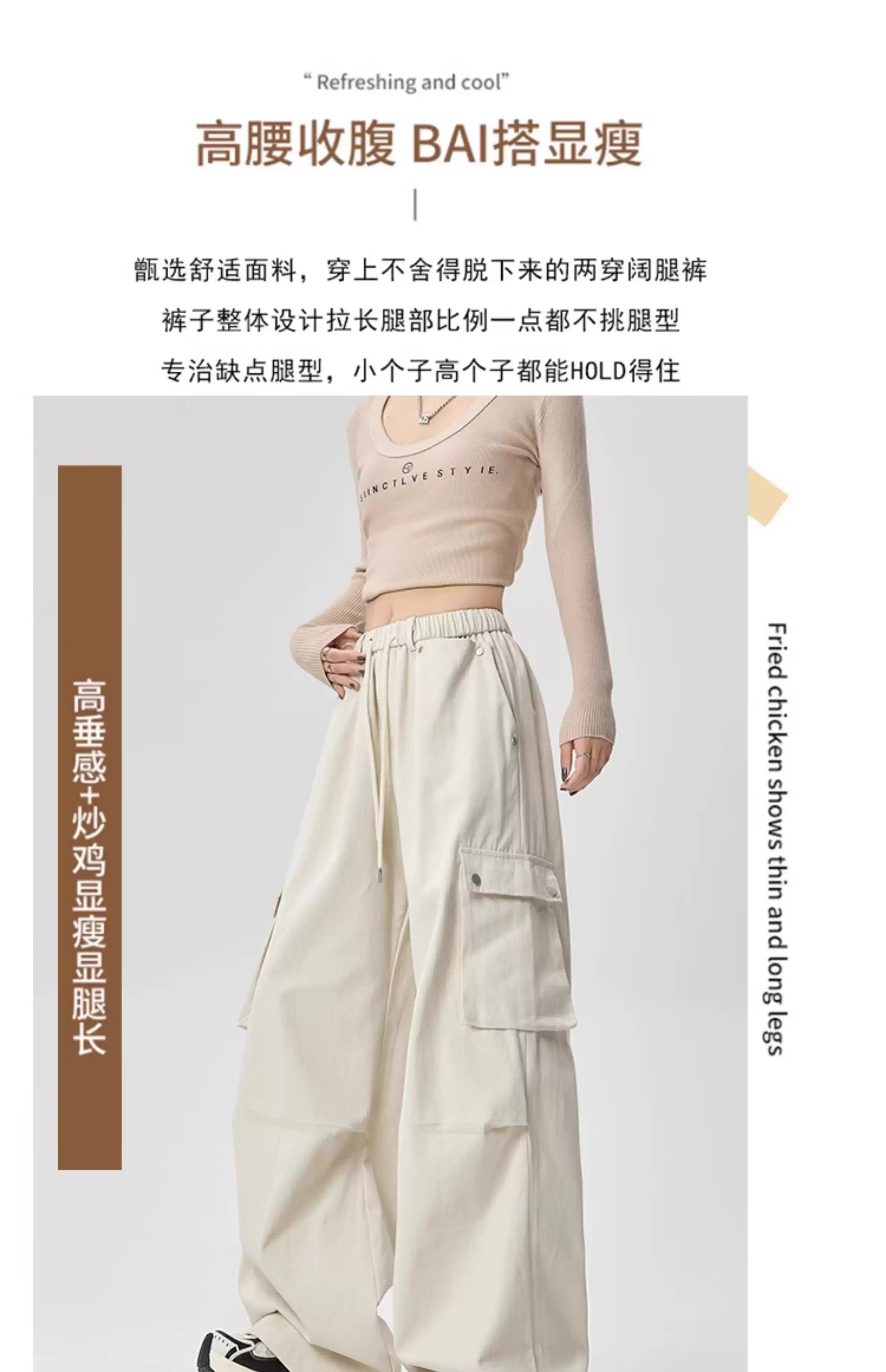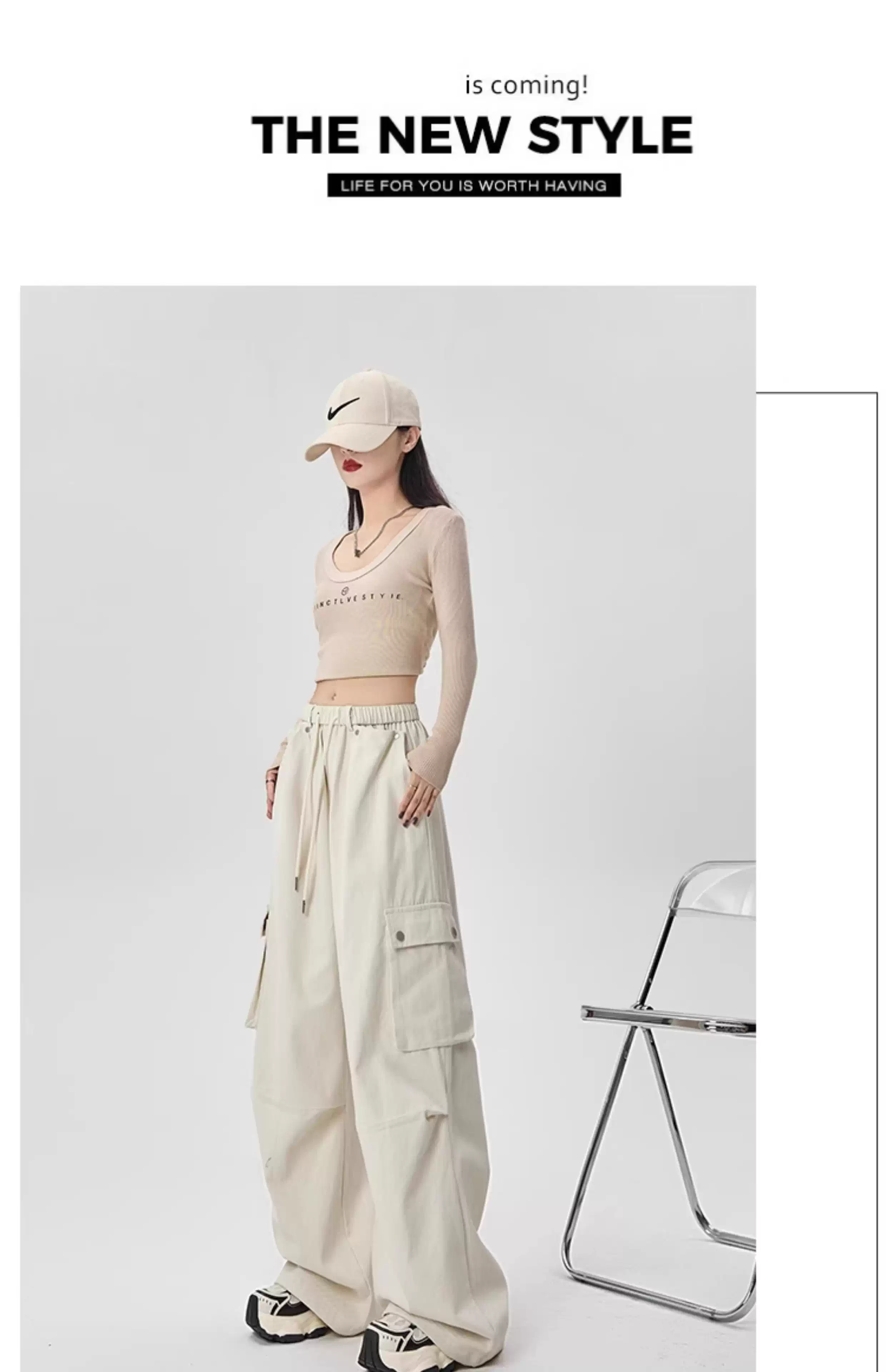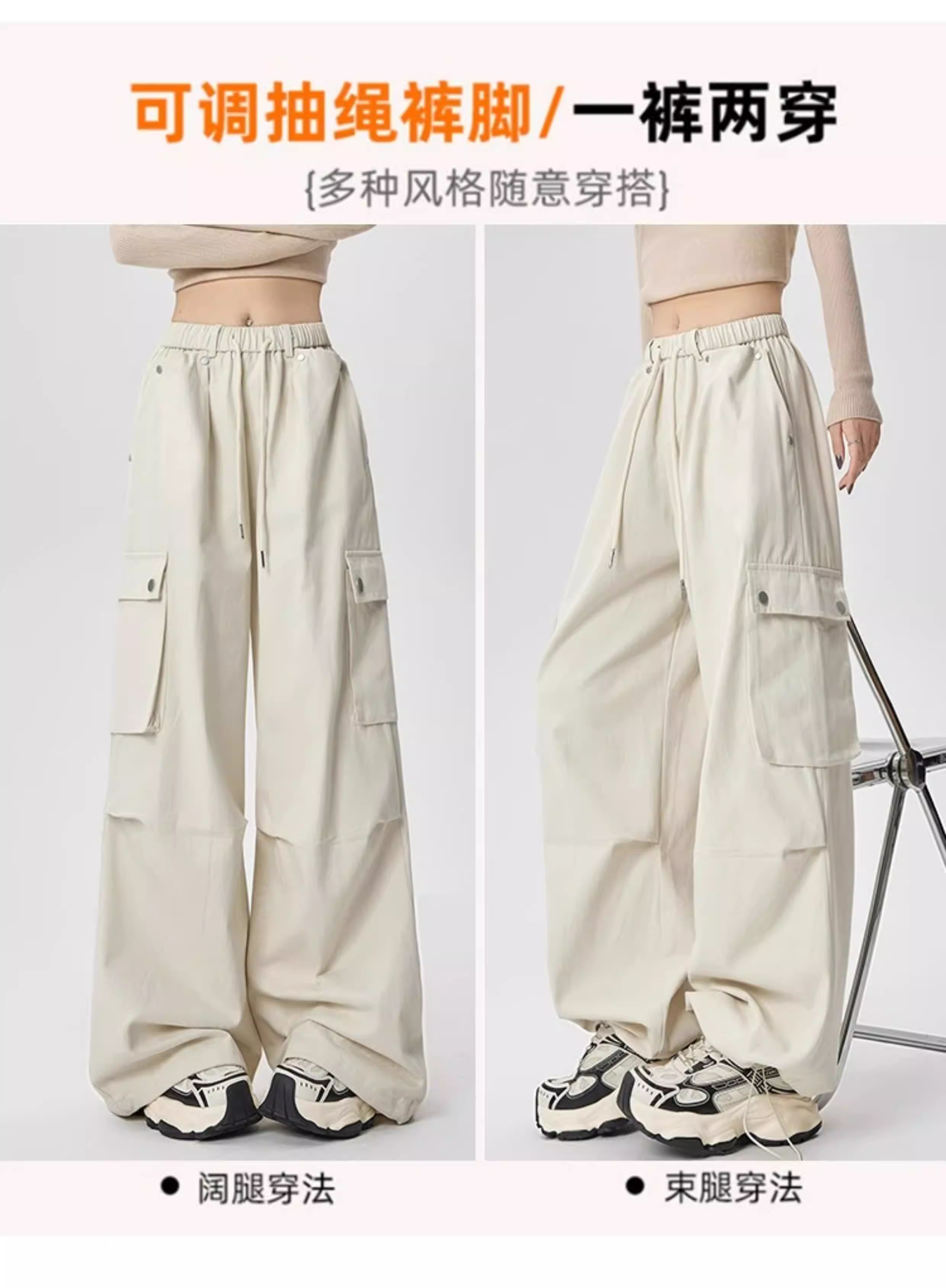- Quần cargo đỏ kiểu Mỹ La Chapelle dành cho nữ, mẫu mới thu đông 2025, cạp cao, dáng rộng, chất liệu dù thoáng mát