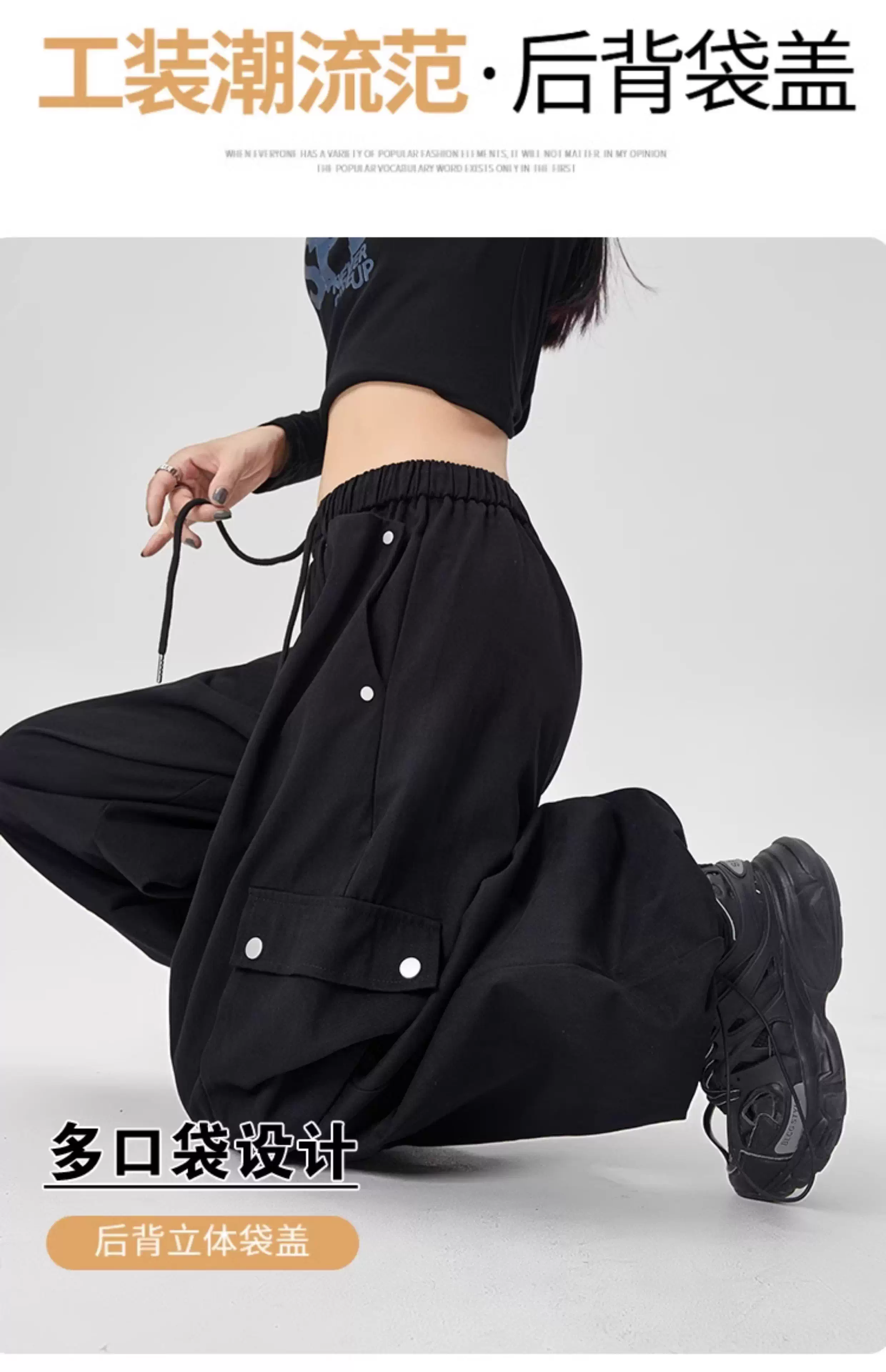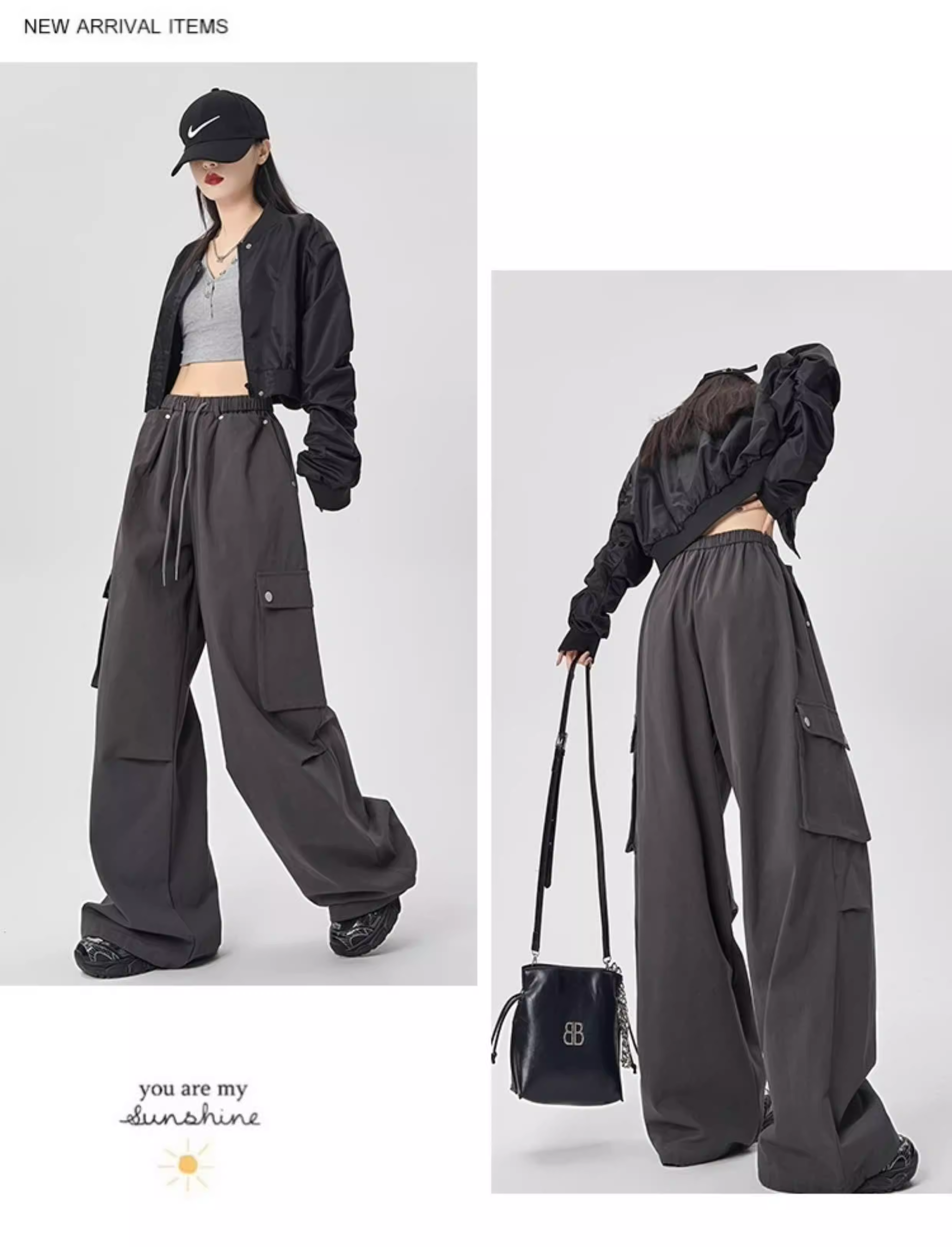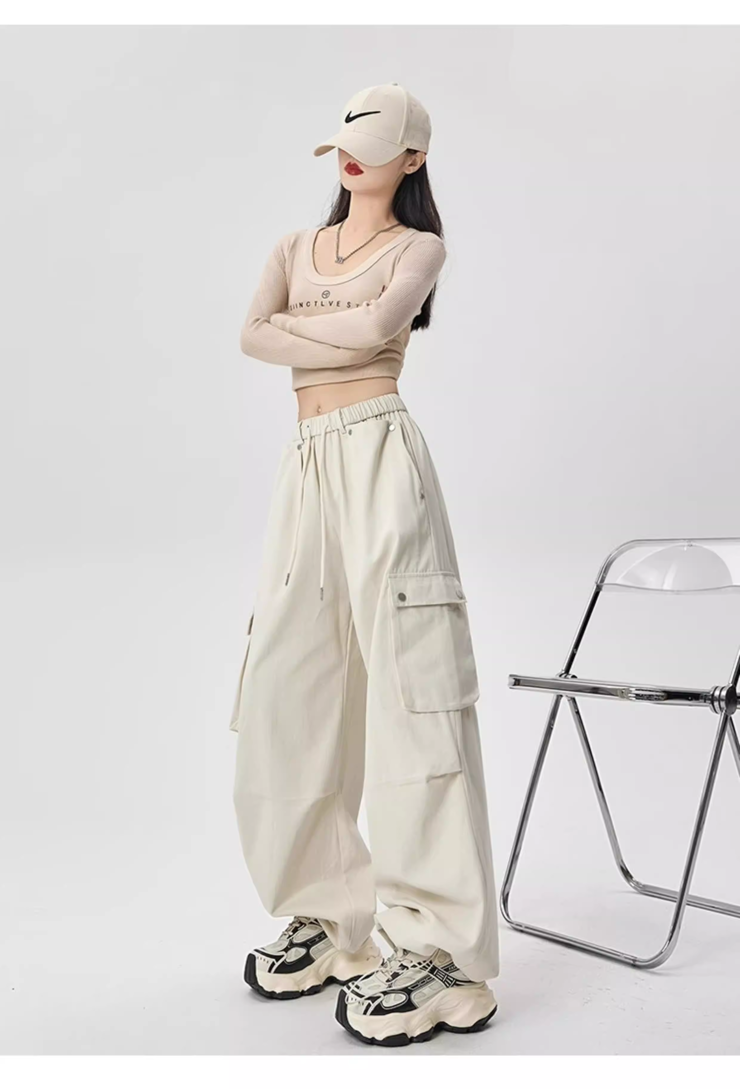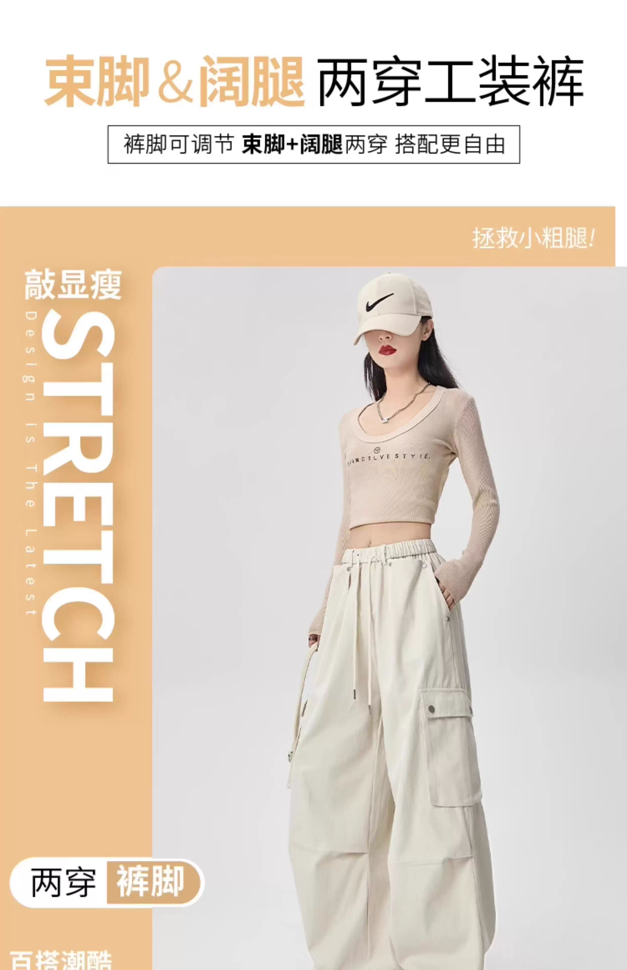 - Quần cargo đỏ kiểu Mỹ La Chapelle dành cho nữ, mẫu mới thu đông 2025, cạp cao, dáng rộng, chất liệu dù thoáng mát