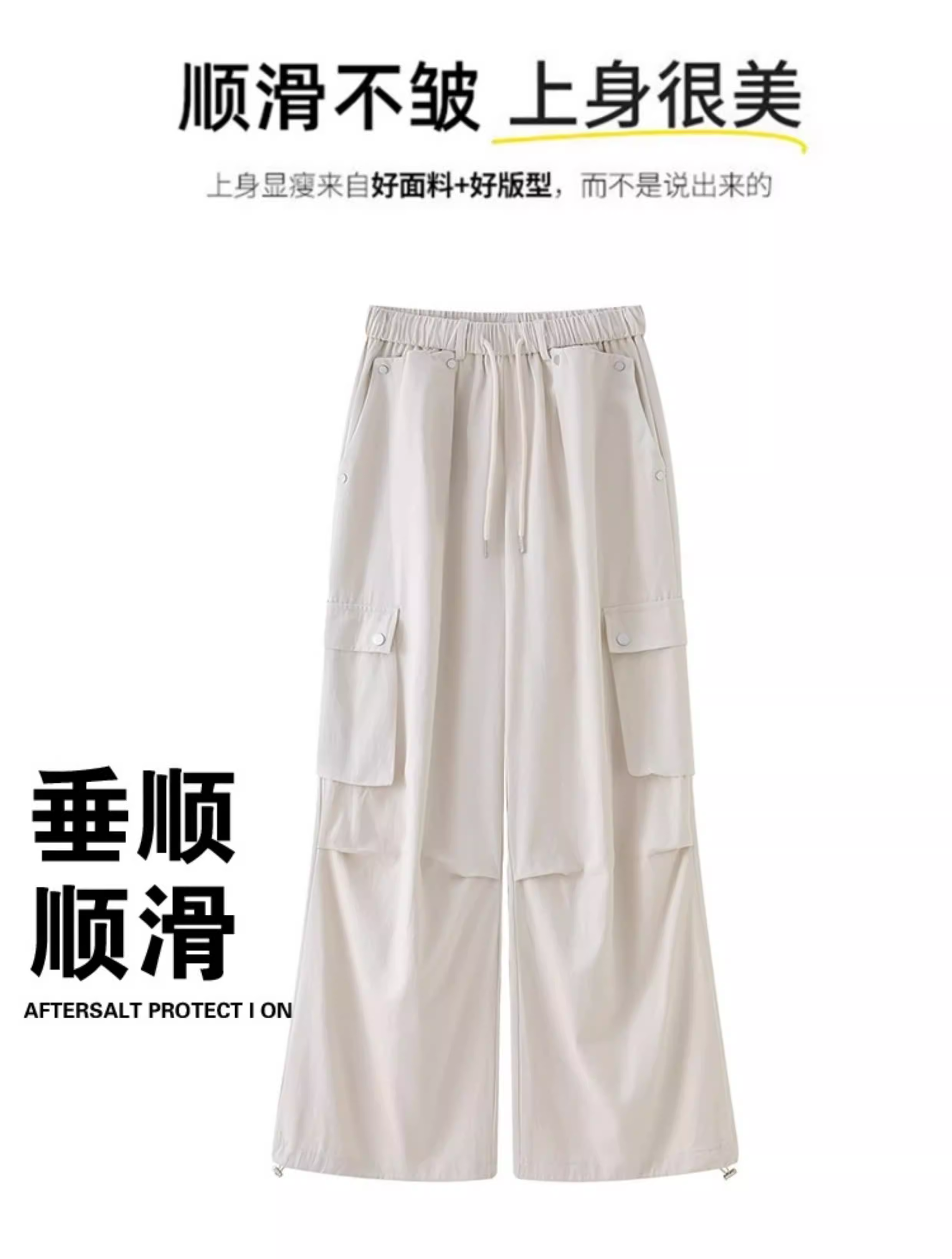 Quần cargo đỏ kiểu Mỹ La Chapelle dành cho nữ, mẫu mới thu đông 2025, cạp cao, dáng rộng, chất liệu dù thoáng mát