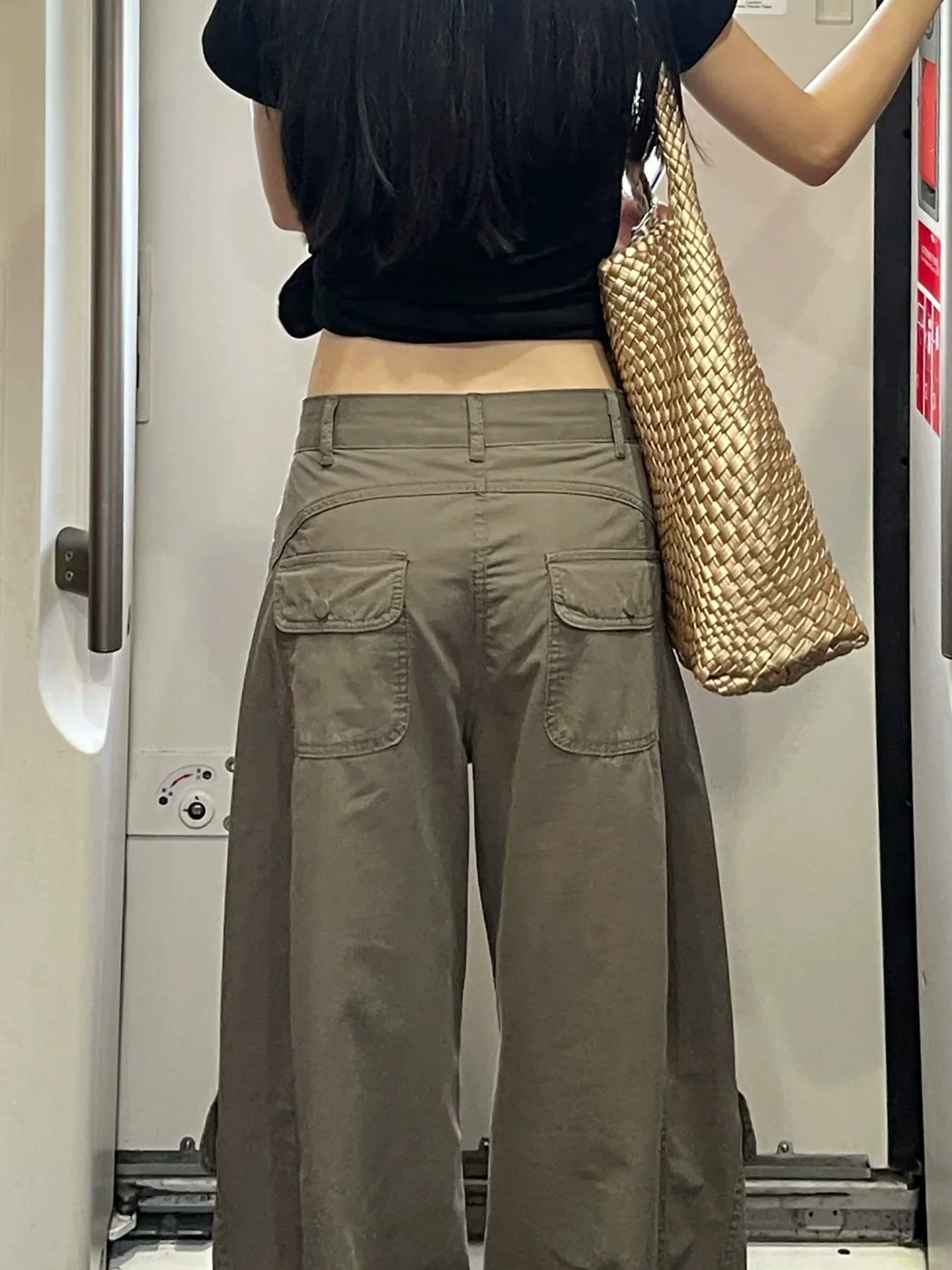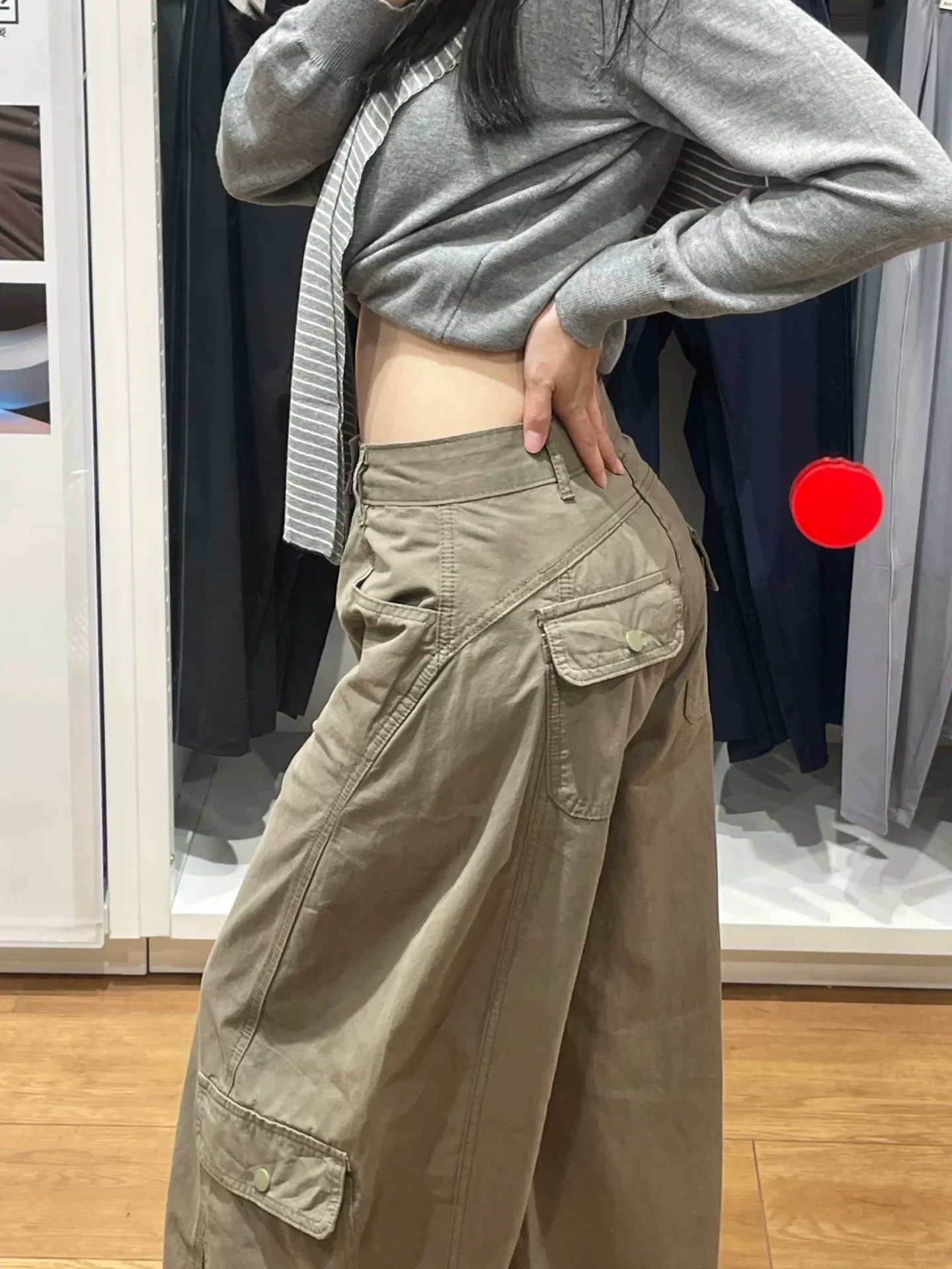 - Quần cargo kiểu scimitar của Mỹ dành cho nữ, mùa thu, cỡ lớn, lưng cao, dáng rộng, giảm béo, dáng quả lê, quần ống rộng thông thường