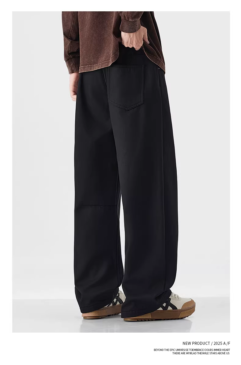 - Quần cargo lót lông cừu dày OMZM dành cho nam, quần ống đứng dày dặn ấm áp mùa đông, quần lyocell ống rộng dáng rộng