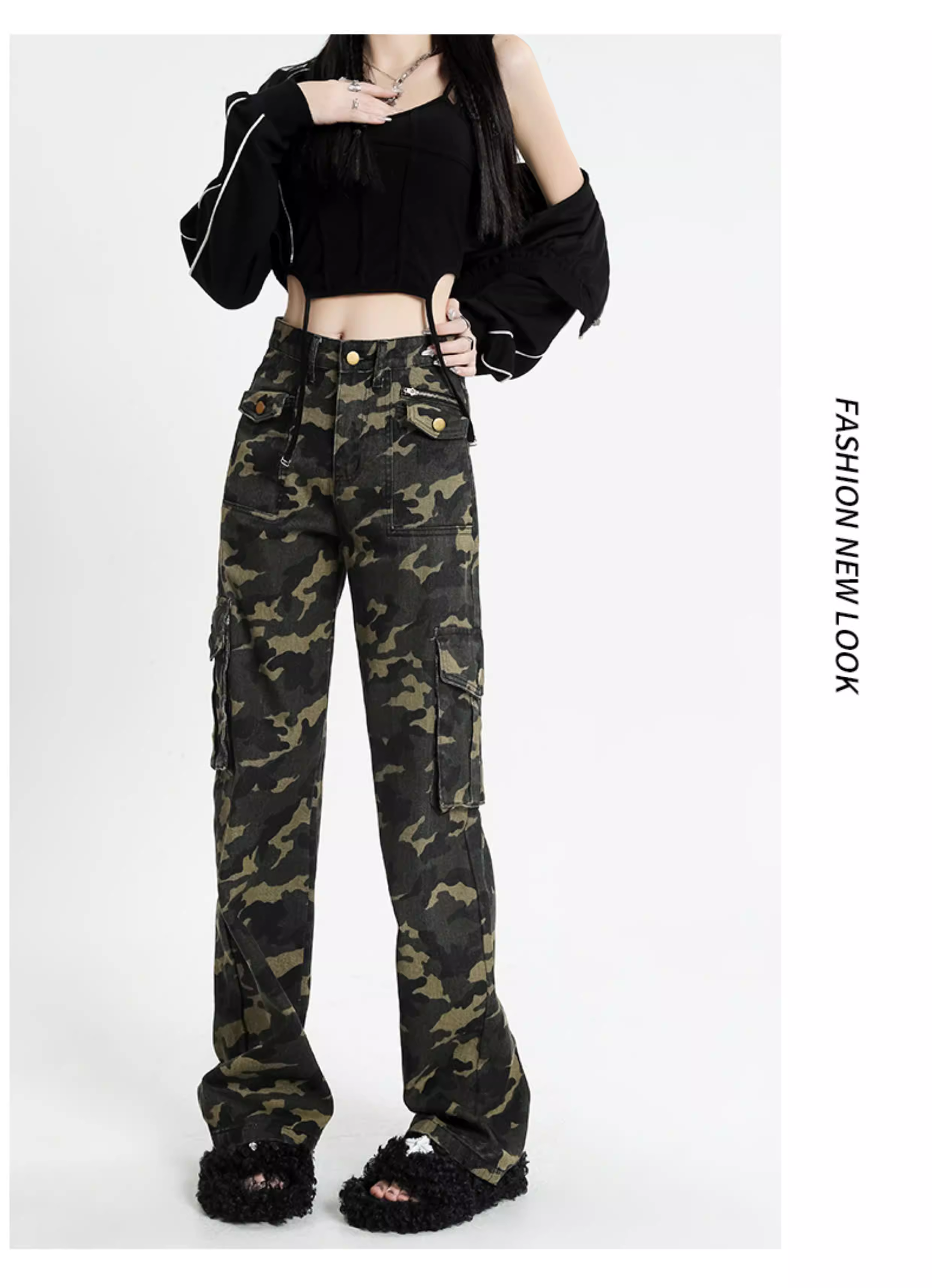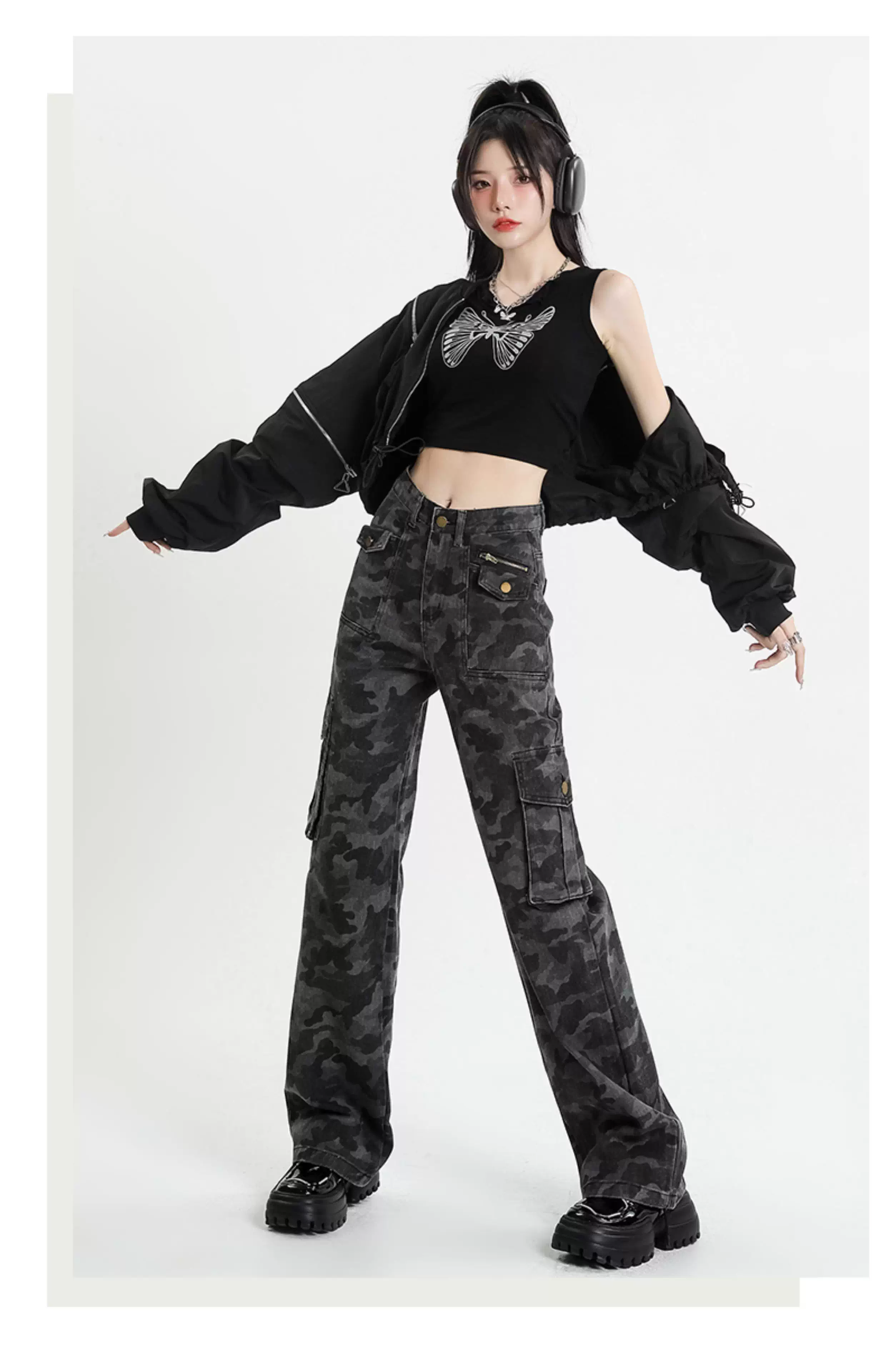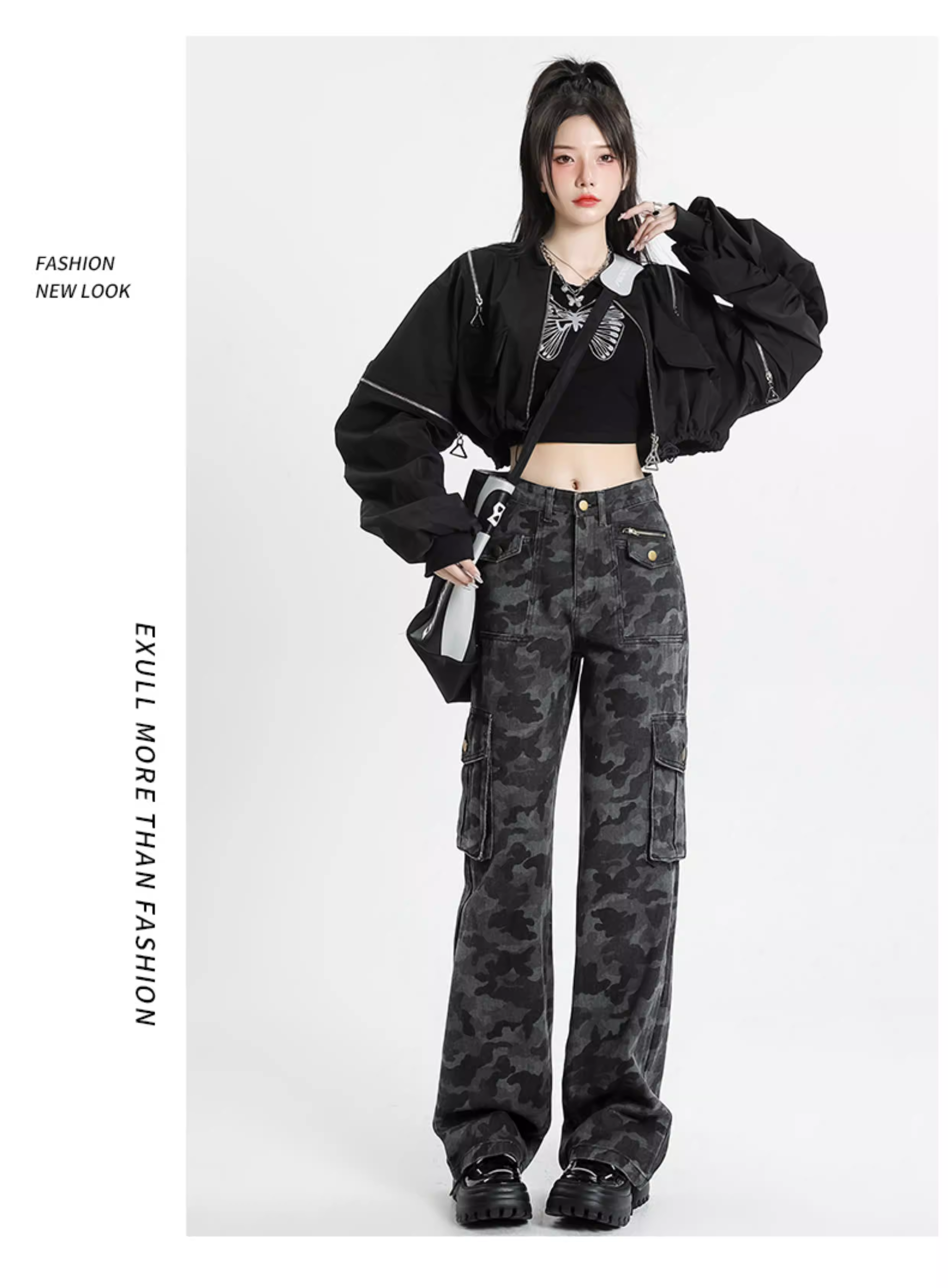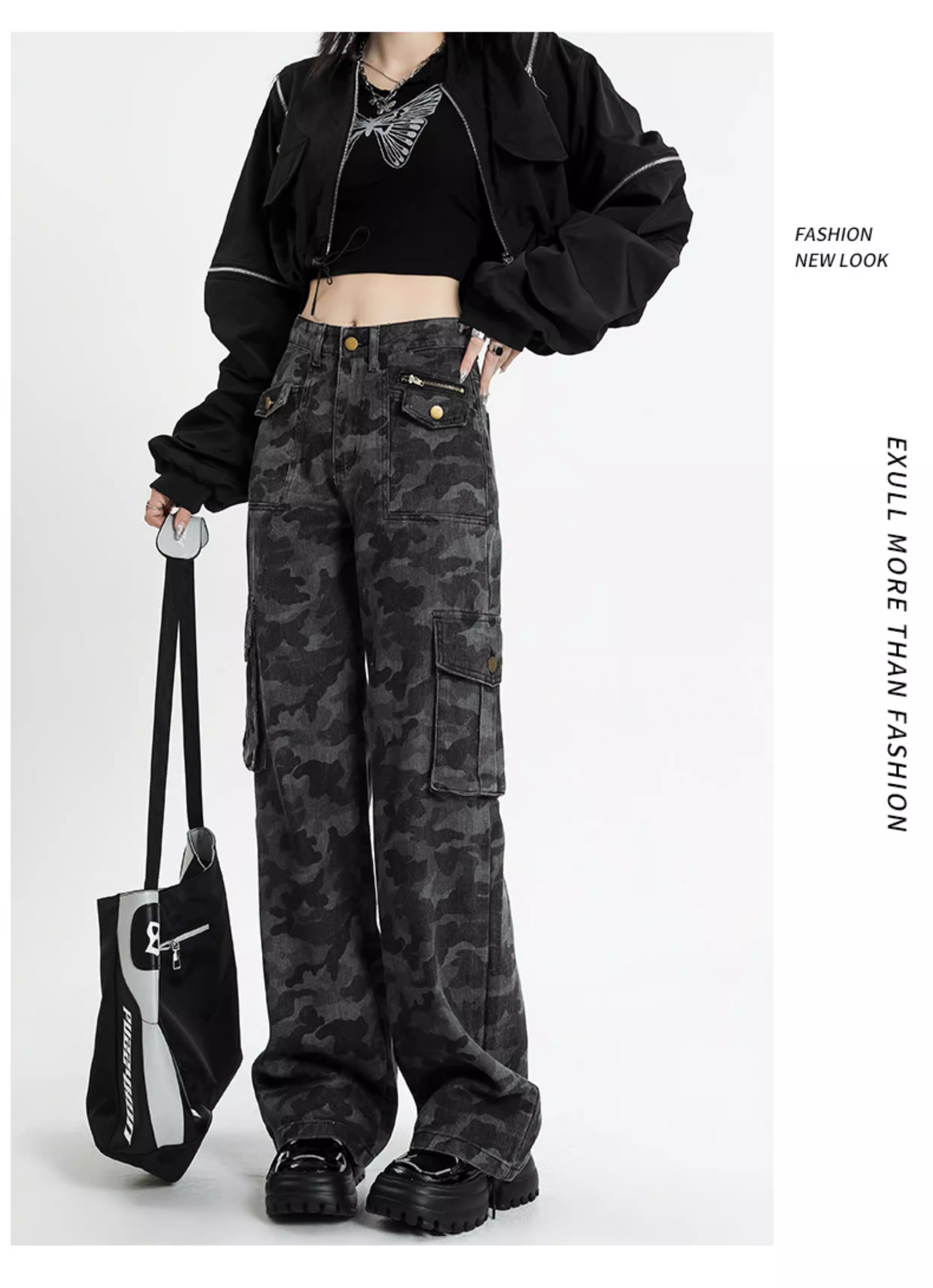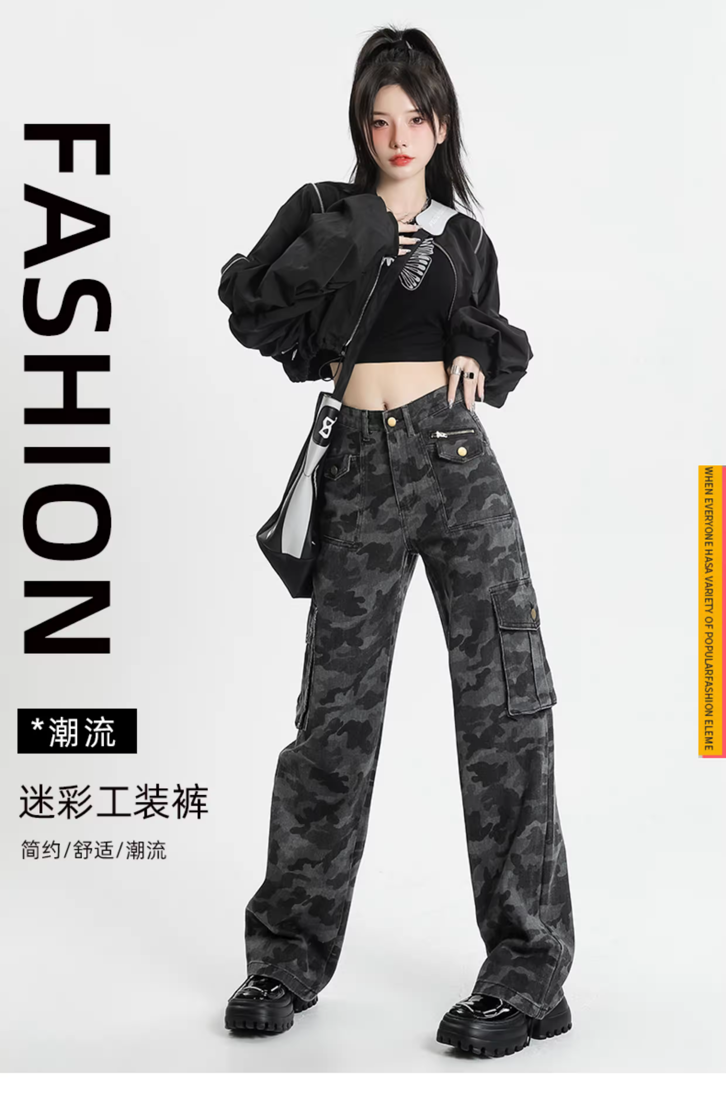 - Quần cargo màu xám kiểu Mỹ La Chapelle dành cho nữ, mẫu mới thu đông 2025, cạp cao, ôm dáng, ống thẳng, phong cách cá tính