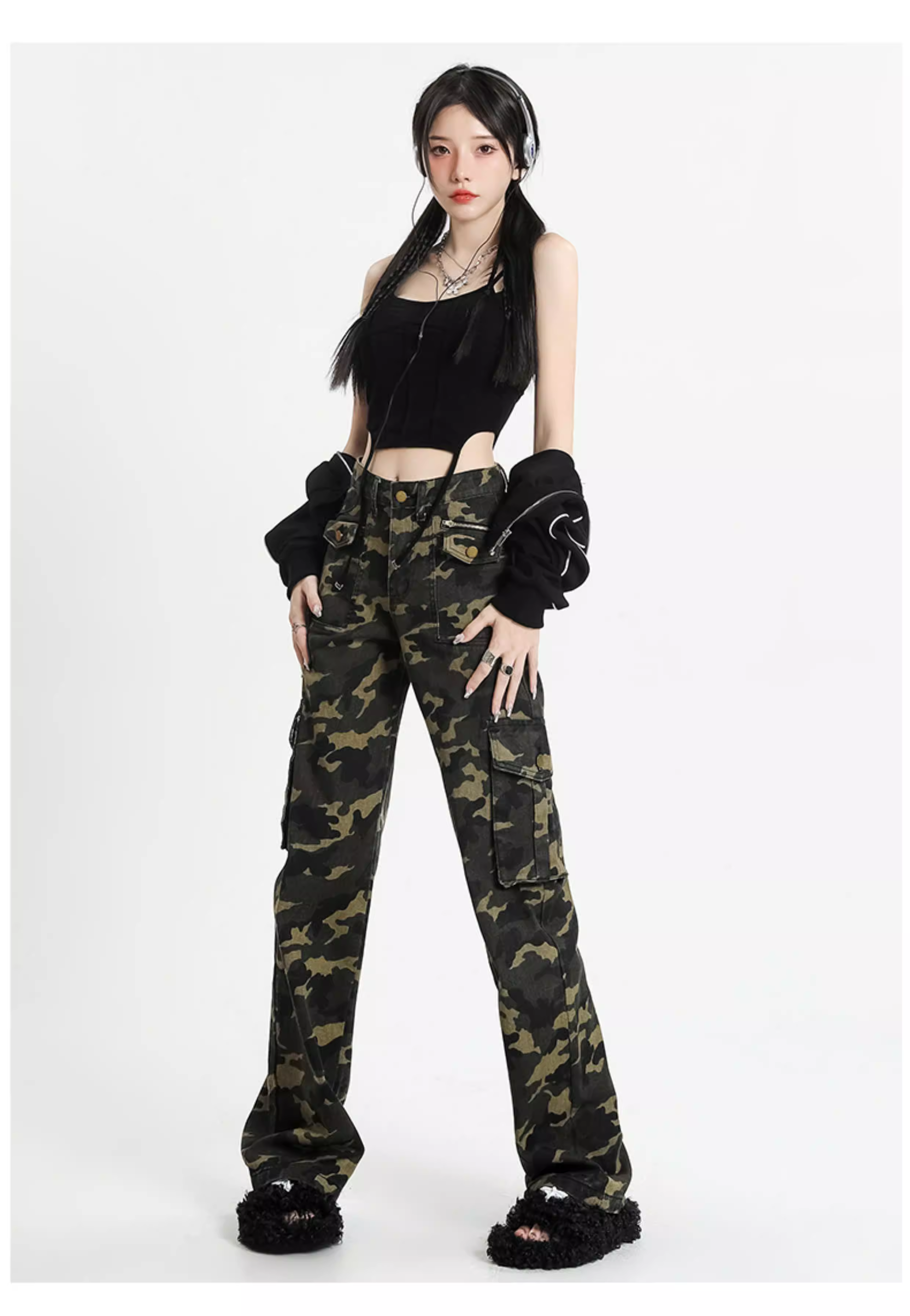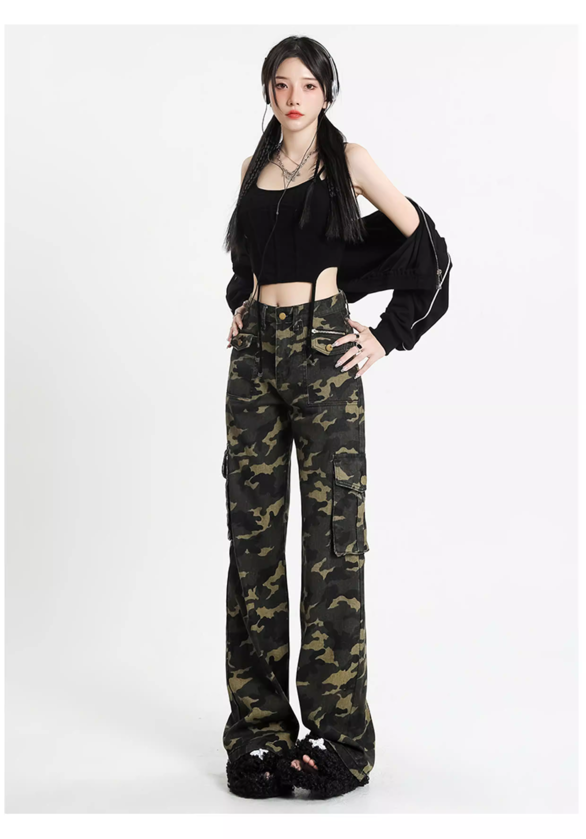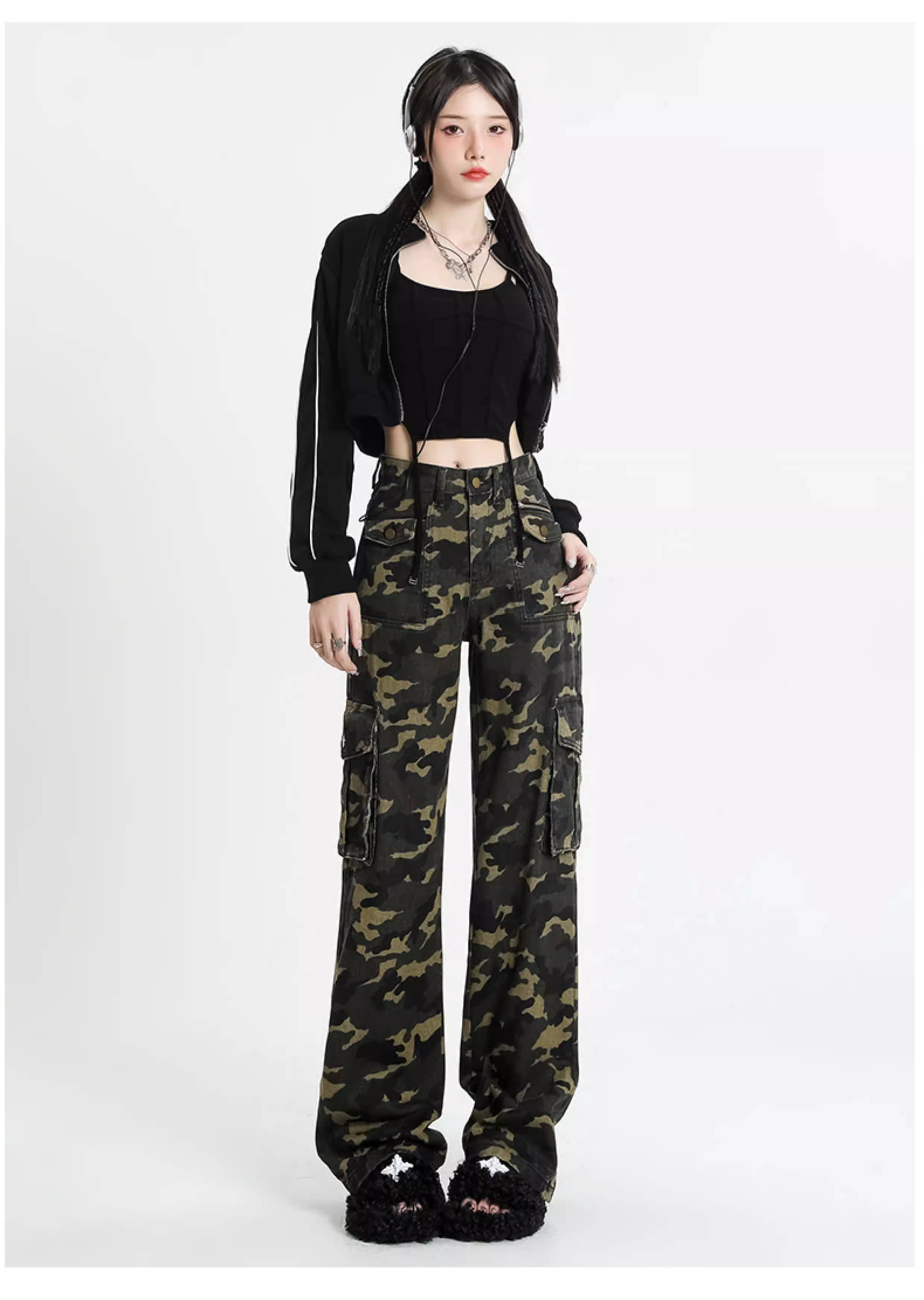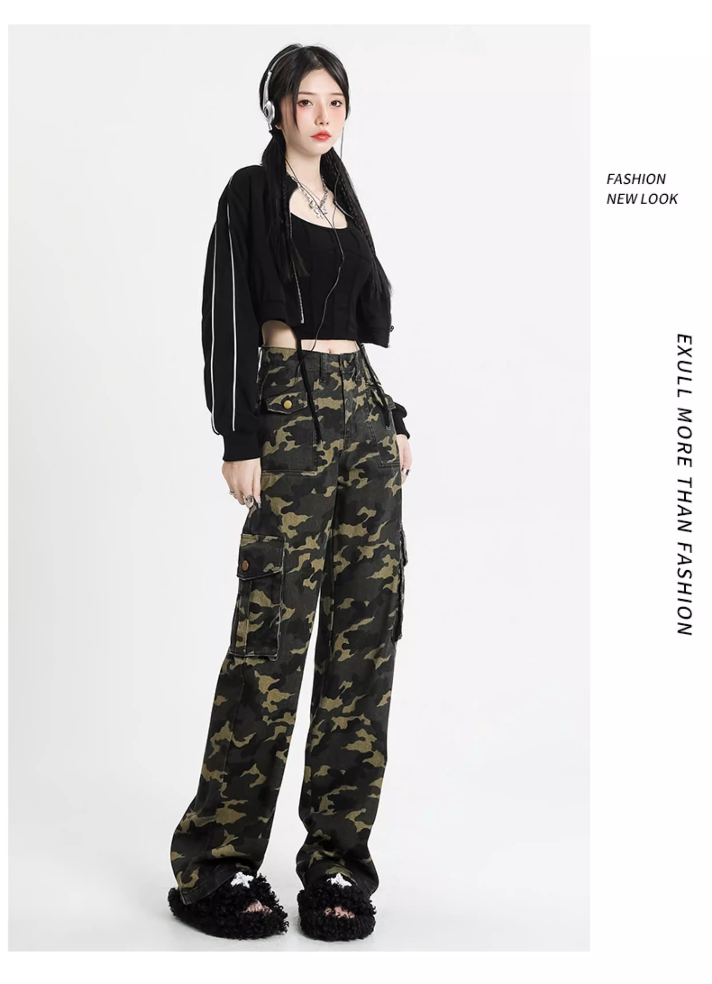 - Quần cargo màu xám kiểu Mỹ La Chapelle dành cho nữ, mẫu mới thu đông 2025, cạp cao, ôm dáng, ống thẳng, phong cách cá tính
