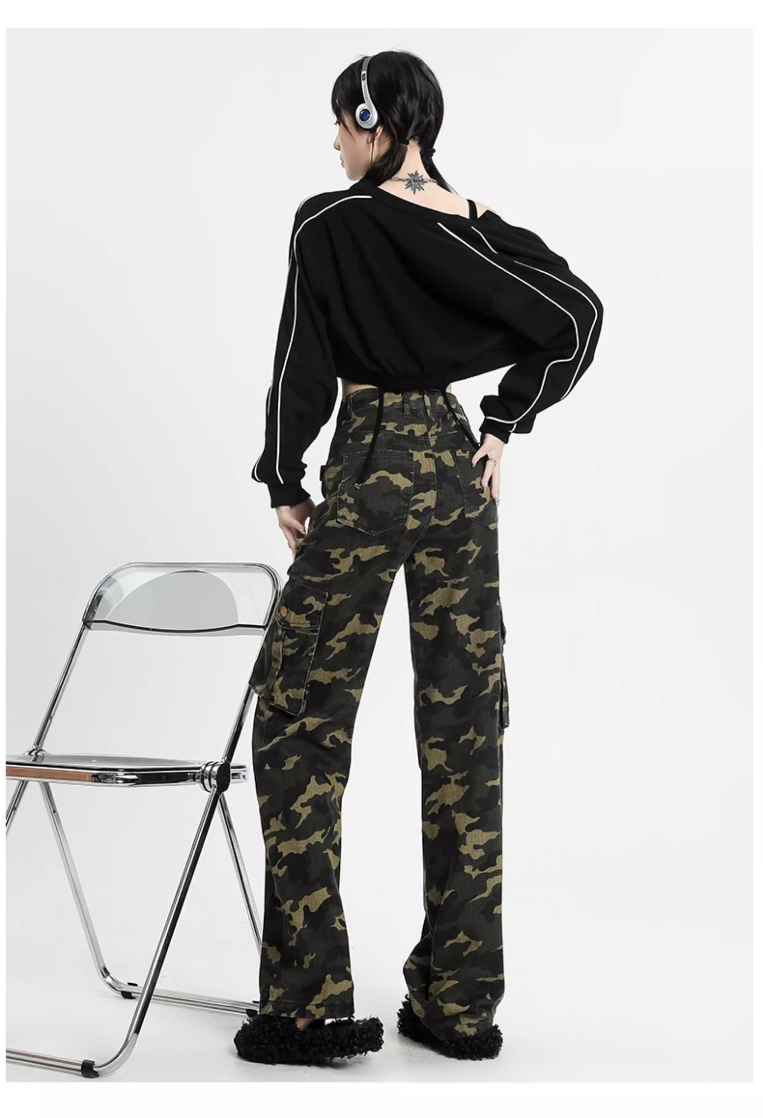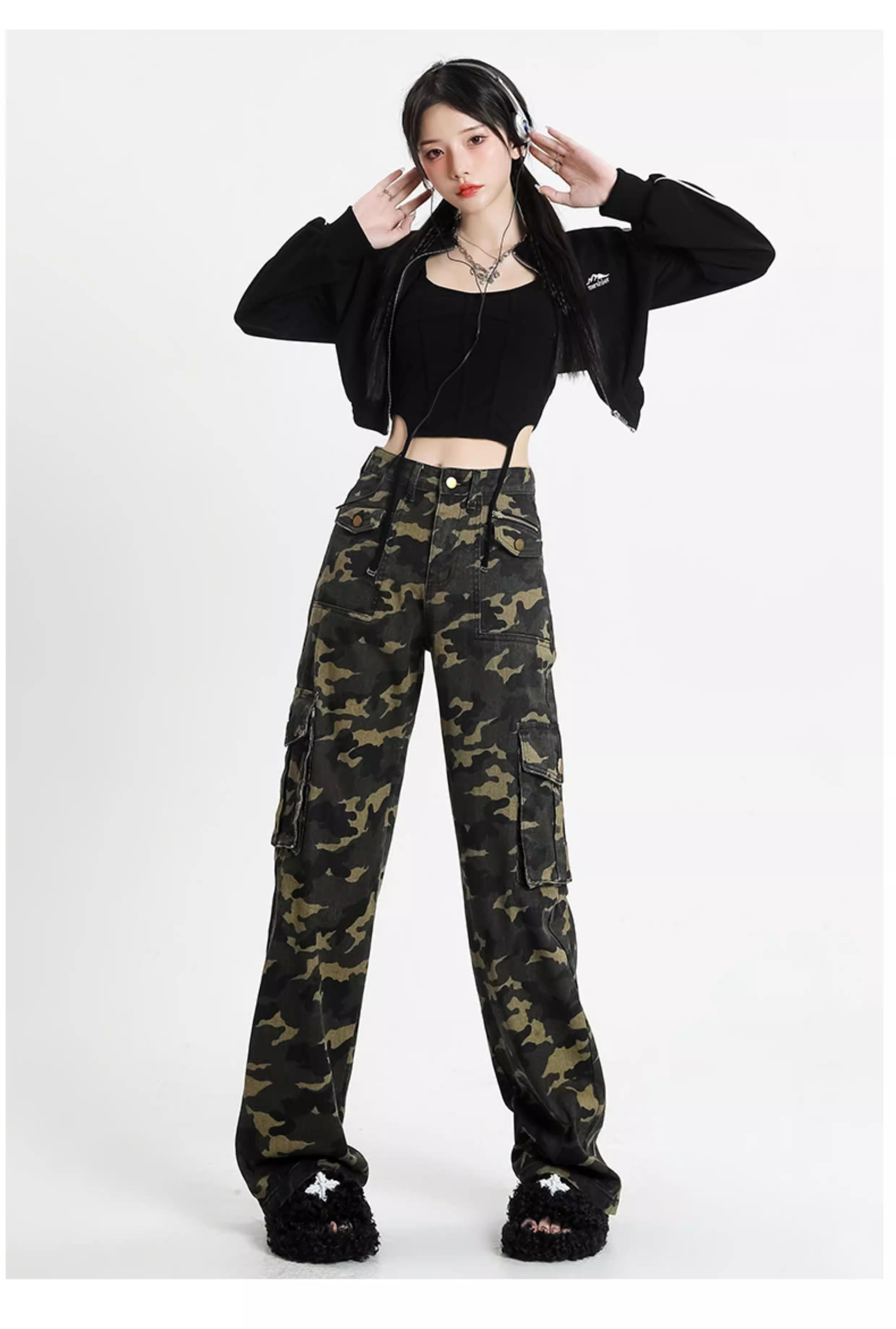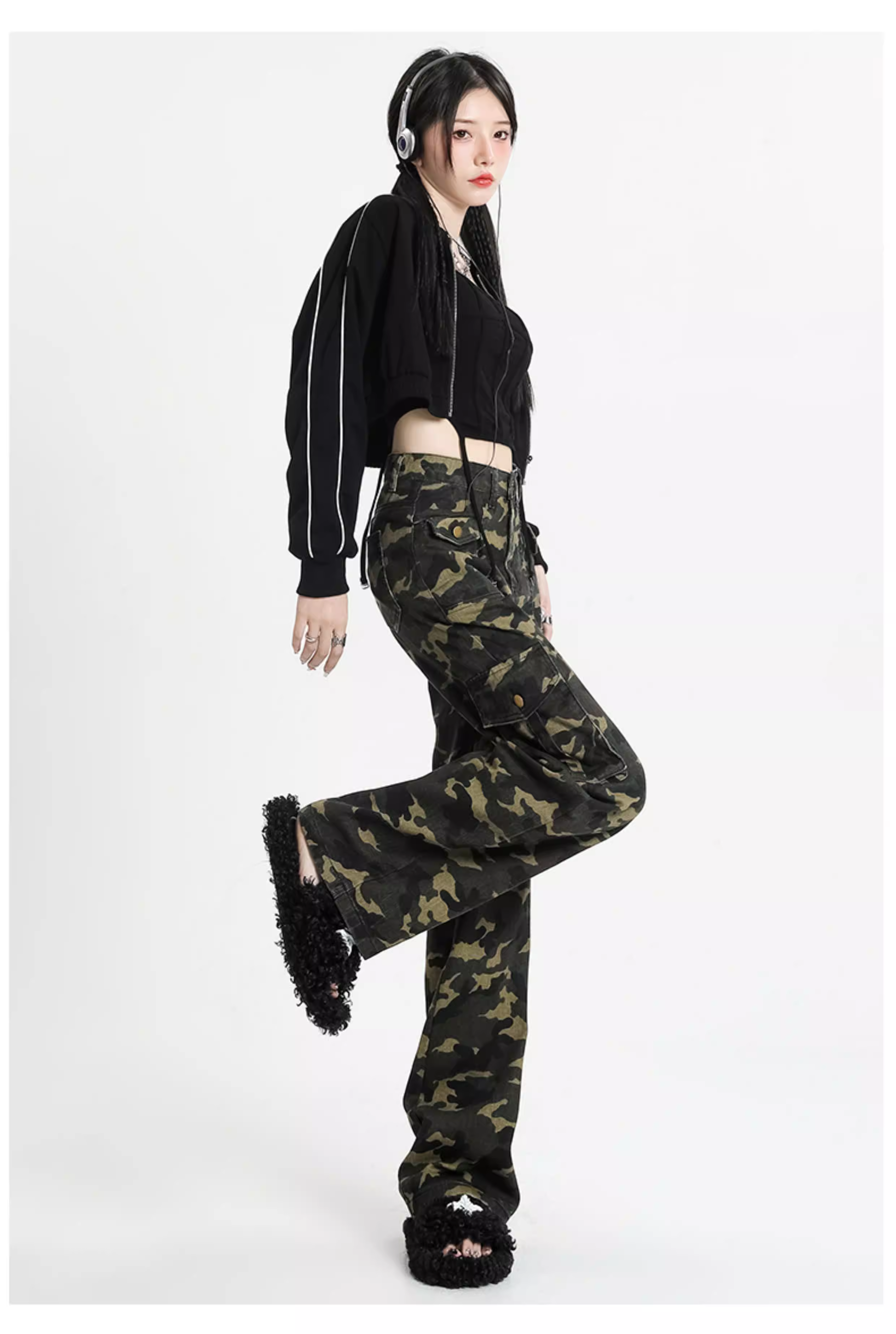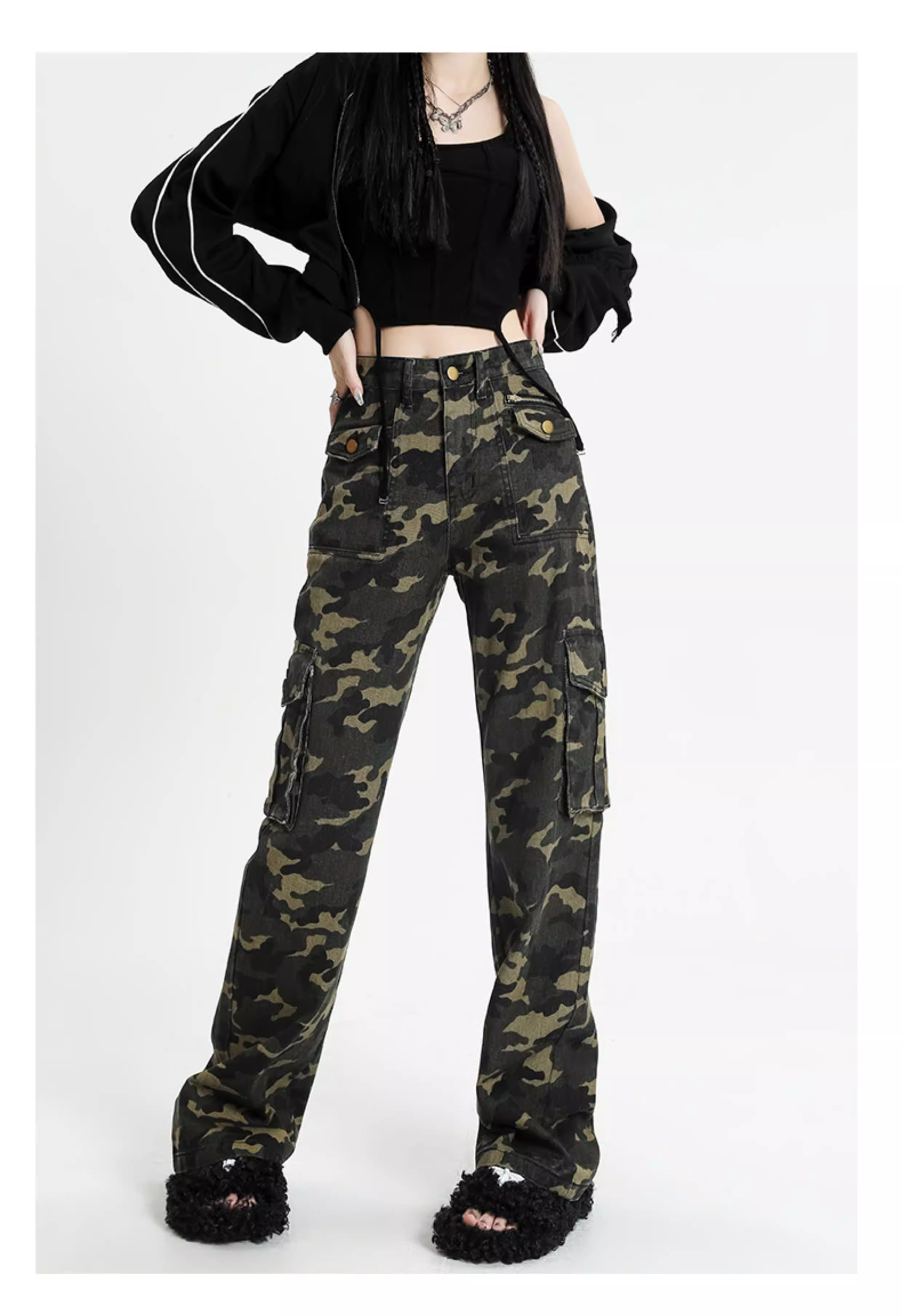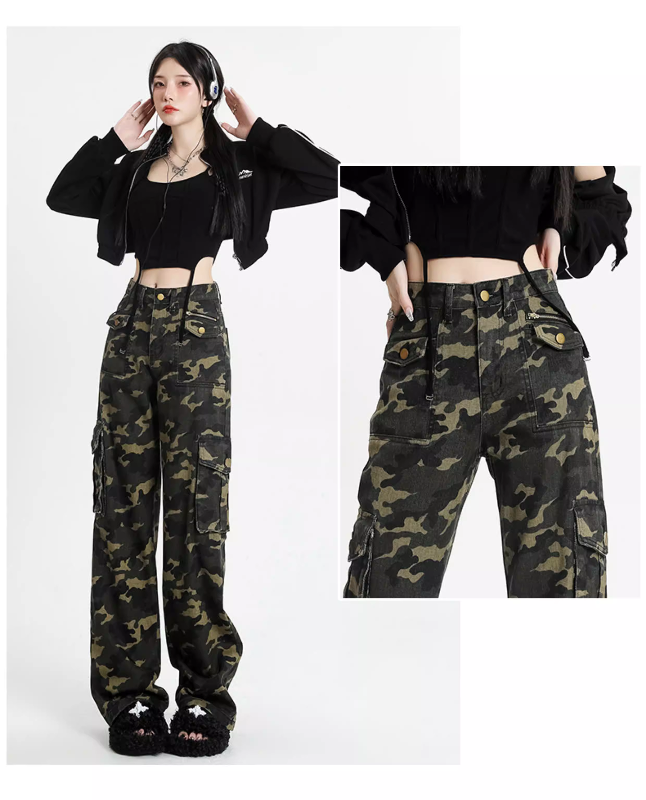 - Quần cargo màu xám kiểu Mỹ La Chapelle dành cho nữ, mẫu mới thu đông 2025, cạp cao, ôm dáng, ống thẳng, phong cách cá tính