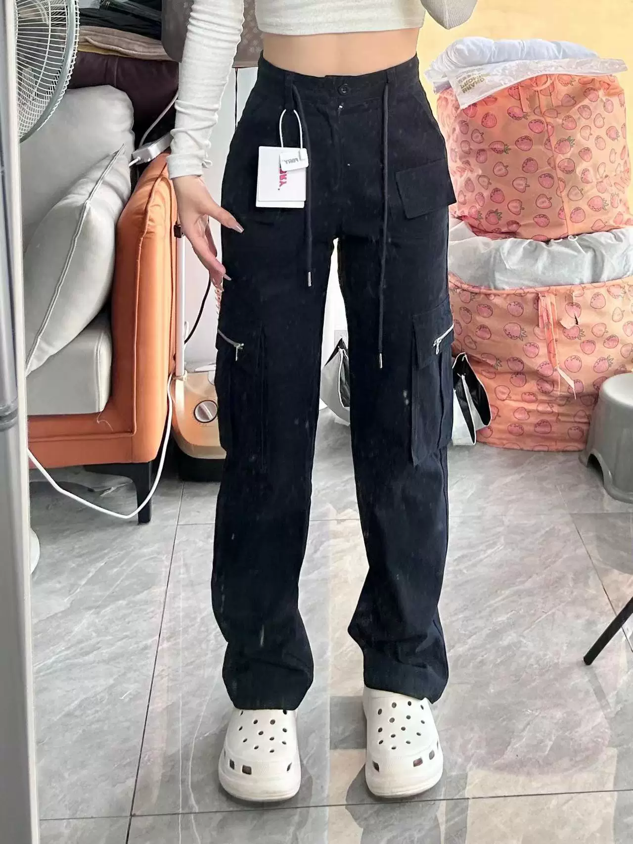 - Quần cargo màu xanh hải quân dáng quả lê dành cho nữ, size lớn mùa hè, lưng cao, ống thẳng, dáng rộng, dáng suông, quần ống rộng thông thường