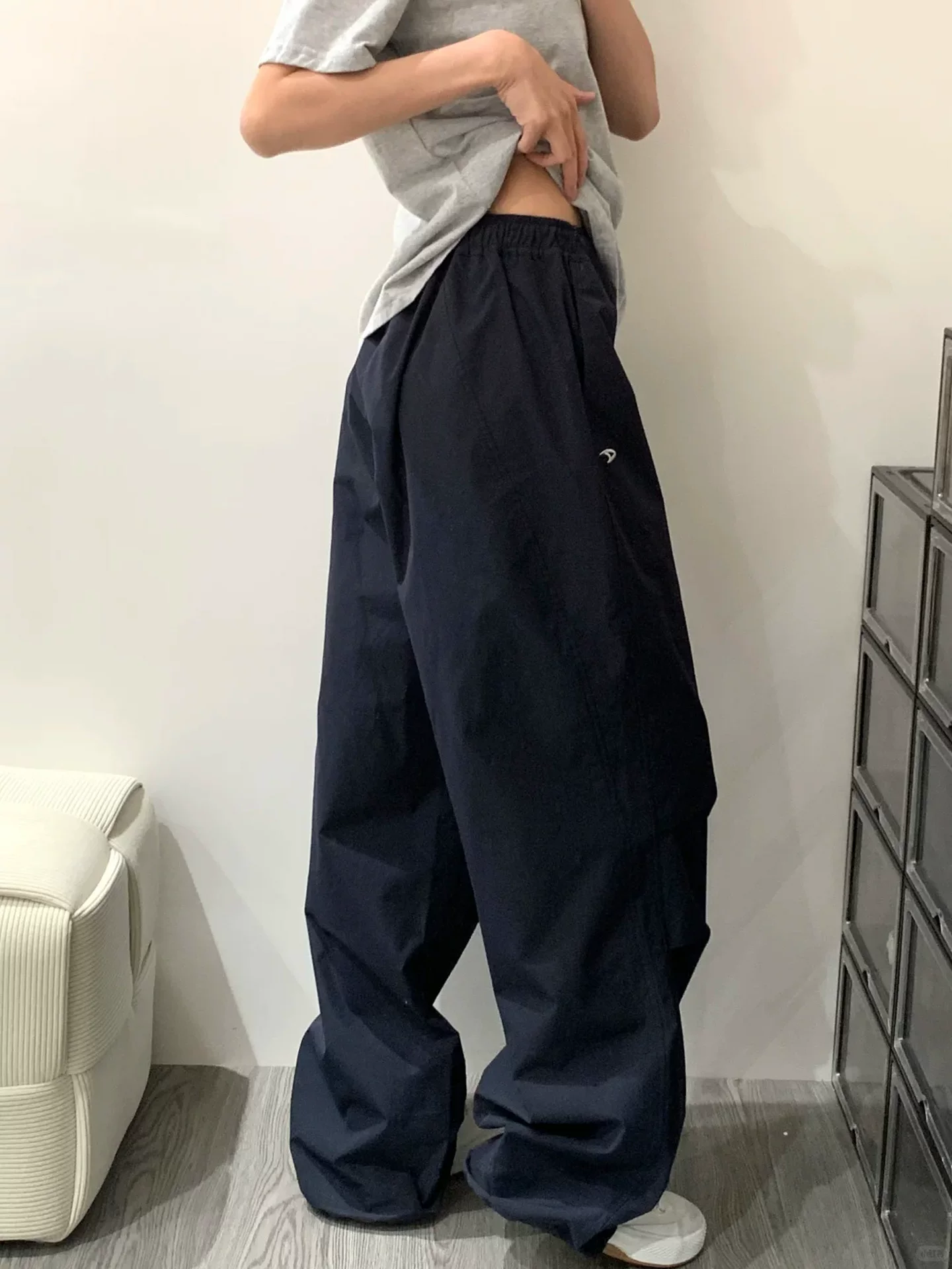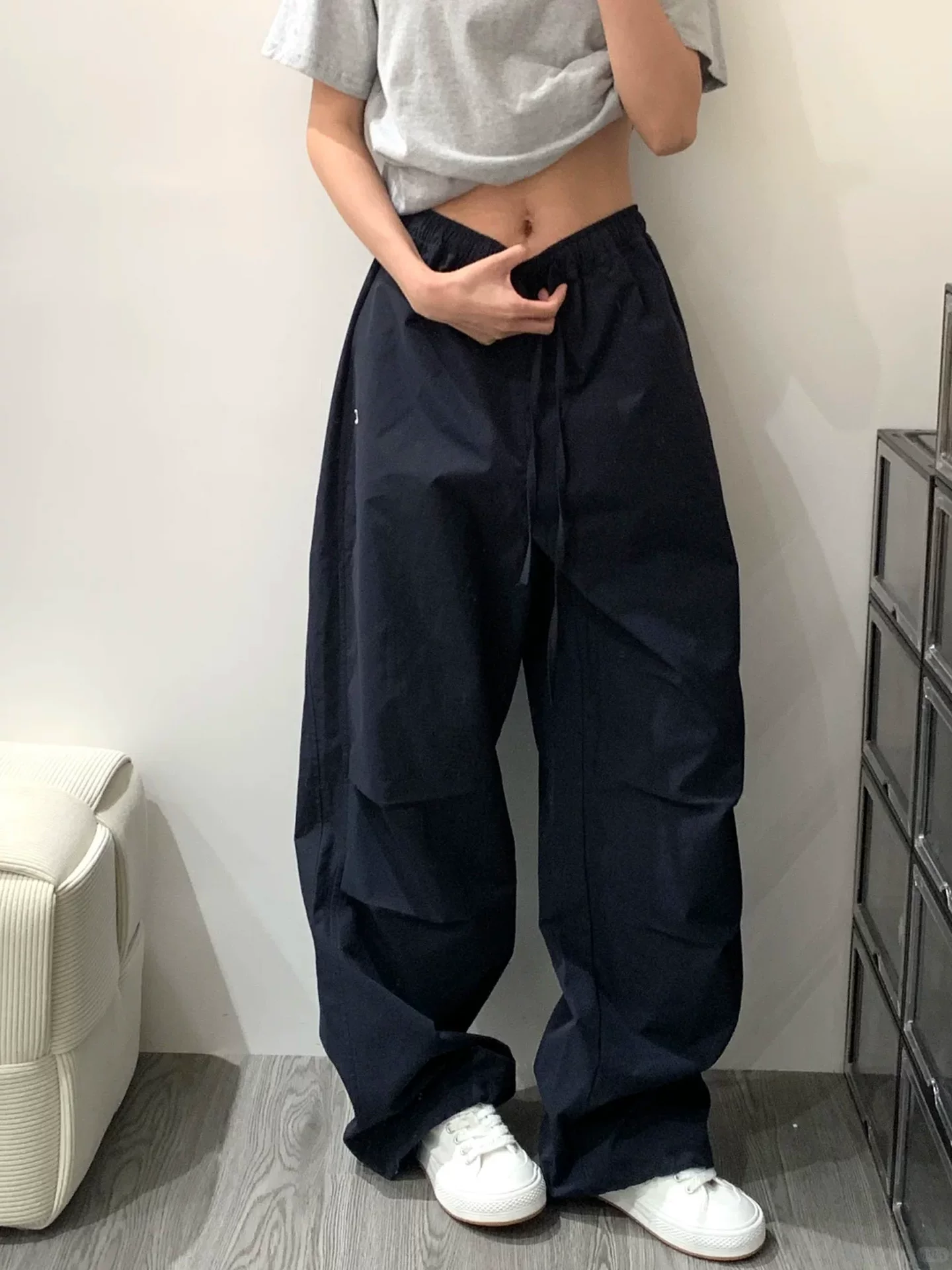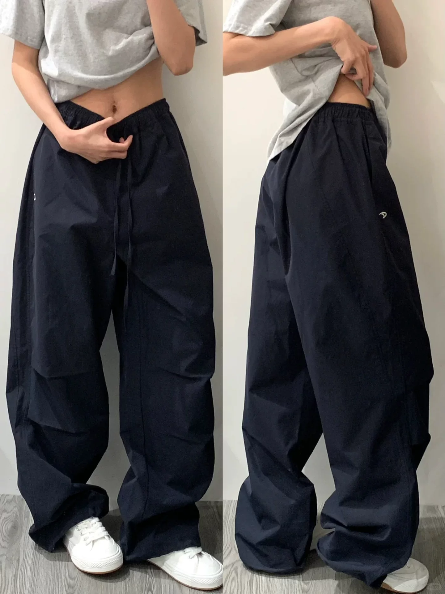 Quần cargo màu xanh hải quân dành cho nữ, cỡ lớn mùa hè, quần nhanh khô dành cho người có thân hình quả lê, quần thể thao ống rộng lưng cao dáng rộng