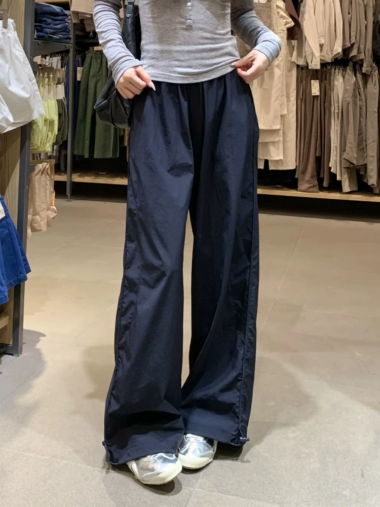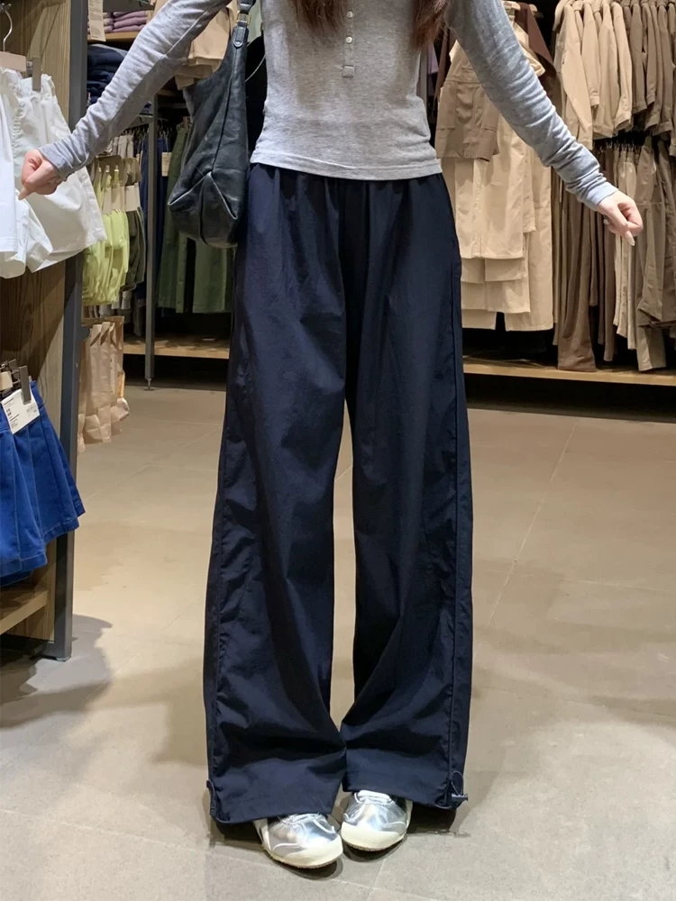 - Quần cargo màu xanh hải quân dành cho nữ, phong cách mùa hè mới, cỡ lớn, lưng cao, dáng rộng, tôn dáng, dáng quả lê, quần ống rộng thông thường