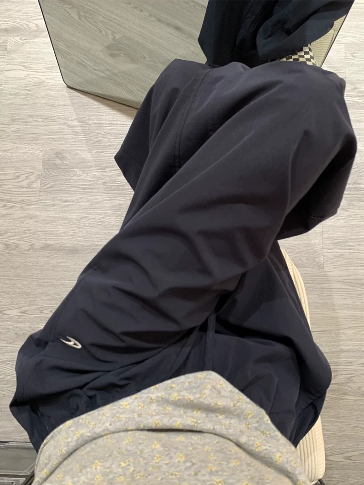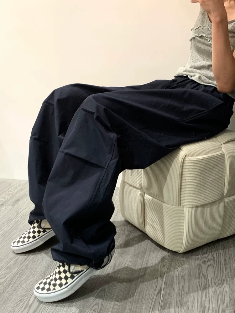 - Quần cargo màu xanh hải quân kiểu Mỹ dành cho nữ, kiểu dáng mùa hè mới, cỡ lớn, lưng cao, dáng rộng, tôn dáng, quần thể thao ống rộng.