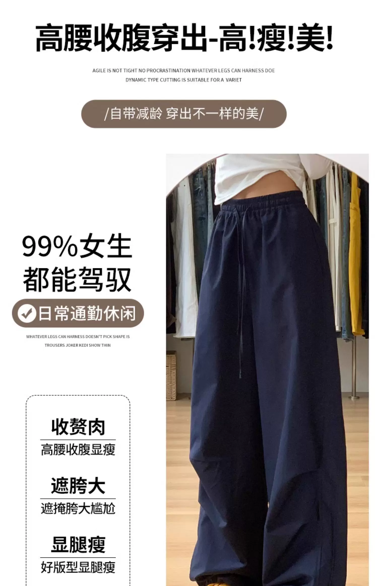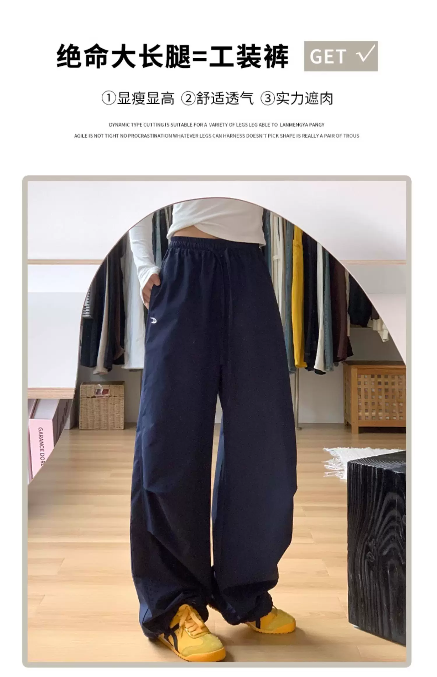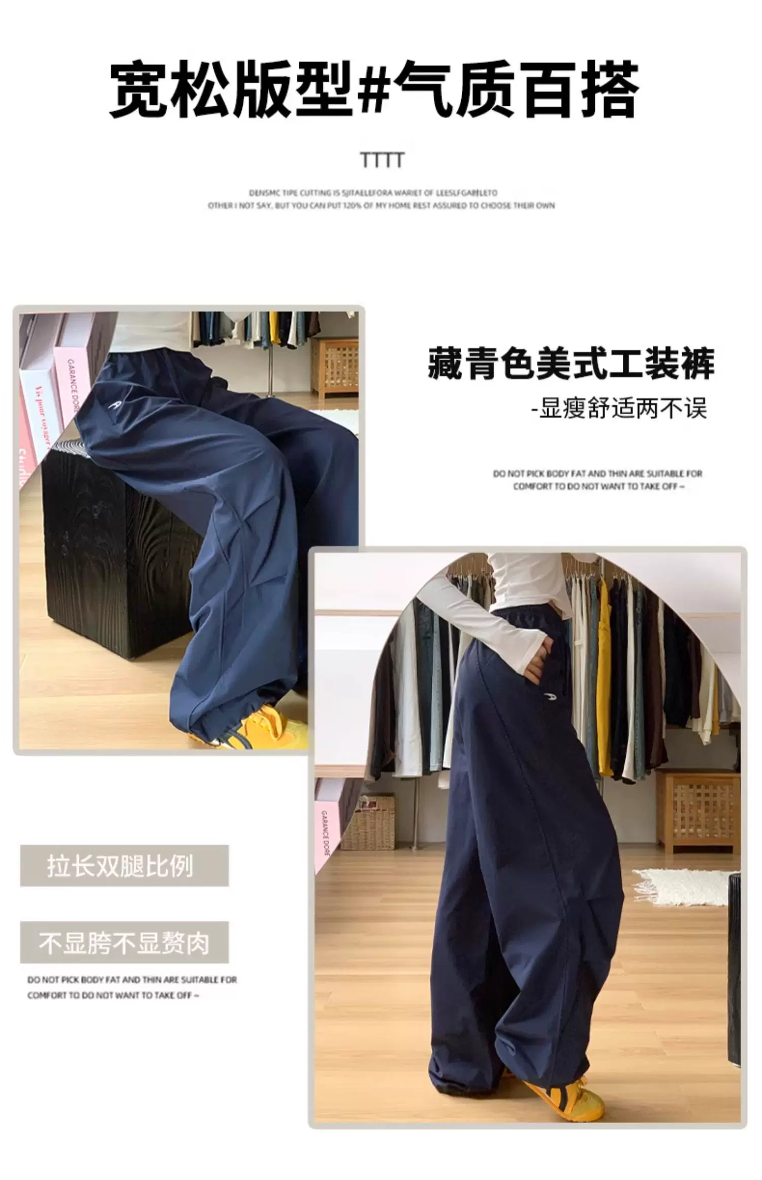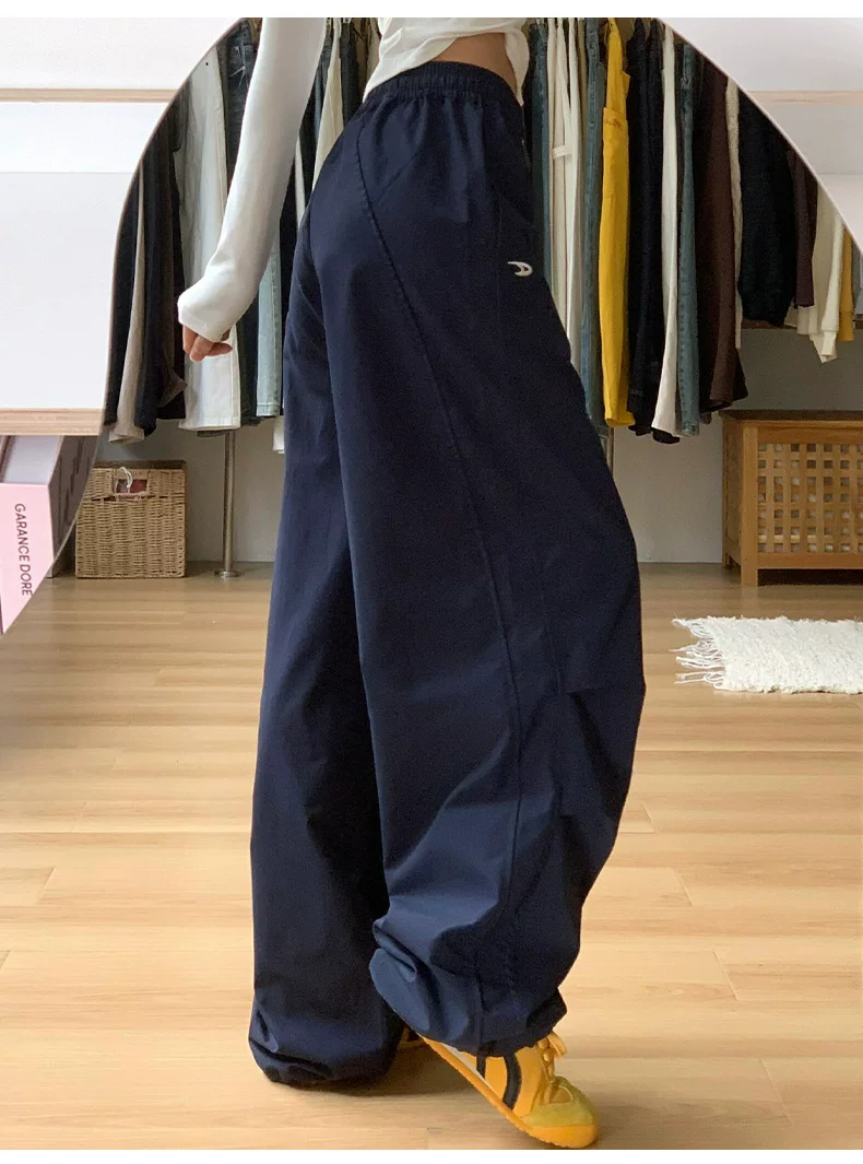 - Quần cargo màu xanh hải quân nữ thu đông 2025, size lớn, cạp cao, dáng rộng, tôn dáng, kiểu dáng nhỏ nhắn, quần ống rộng thường ngày