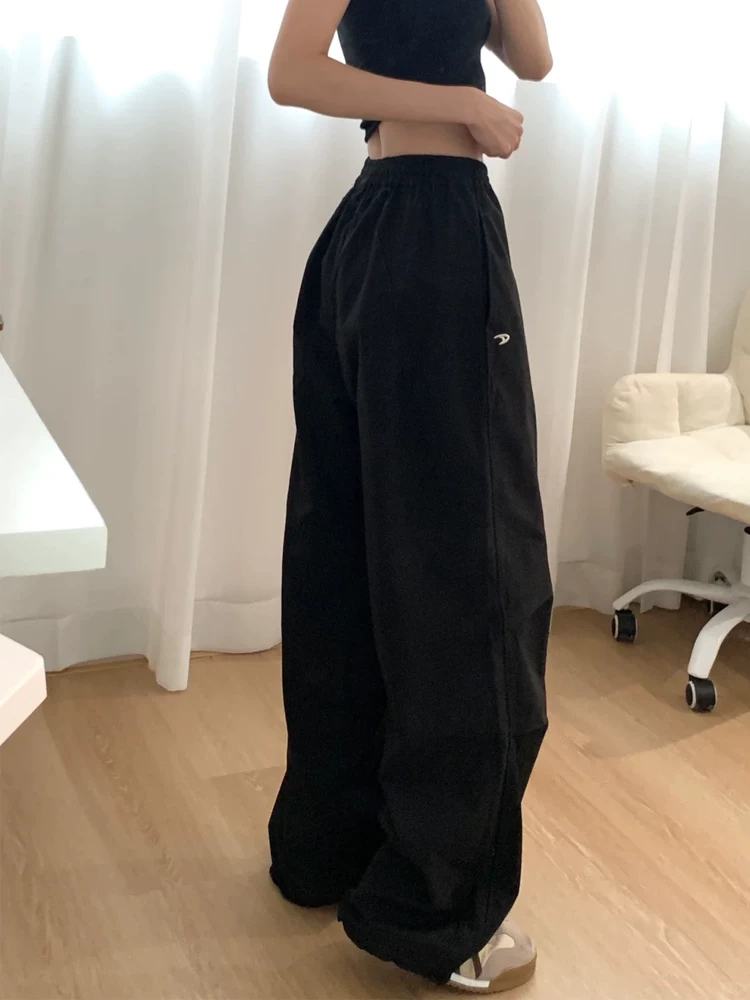 Quần cargo nữ kiểu Mỹ, xuân 2025, size lớn, cạp cao, dáng rộng, tôn dáng, dành cho người có thân hình quả lê, quần ống rộng