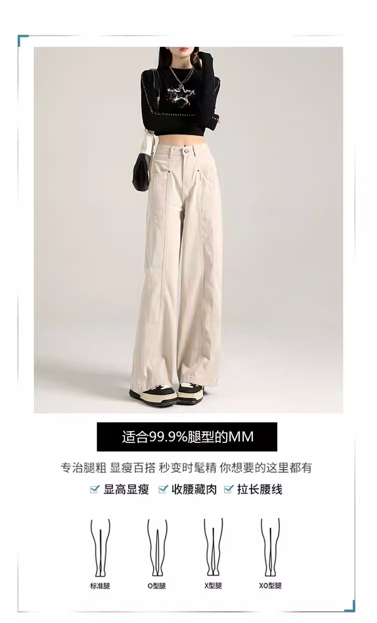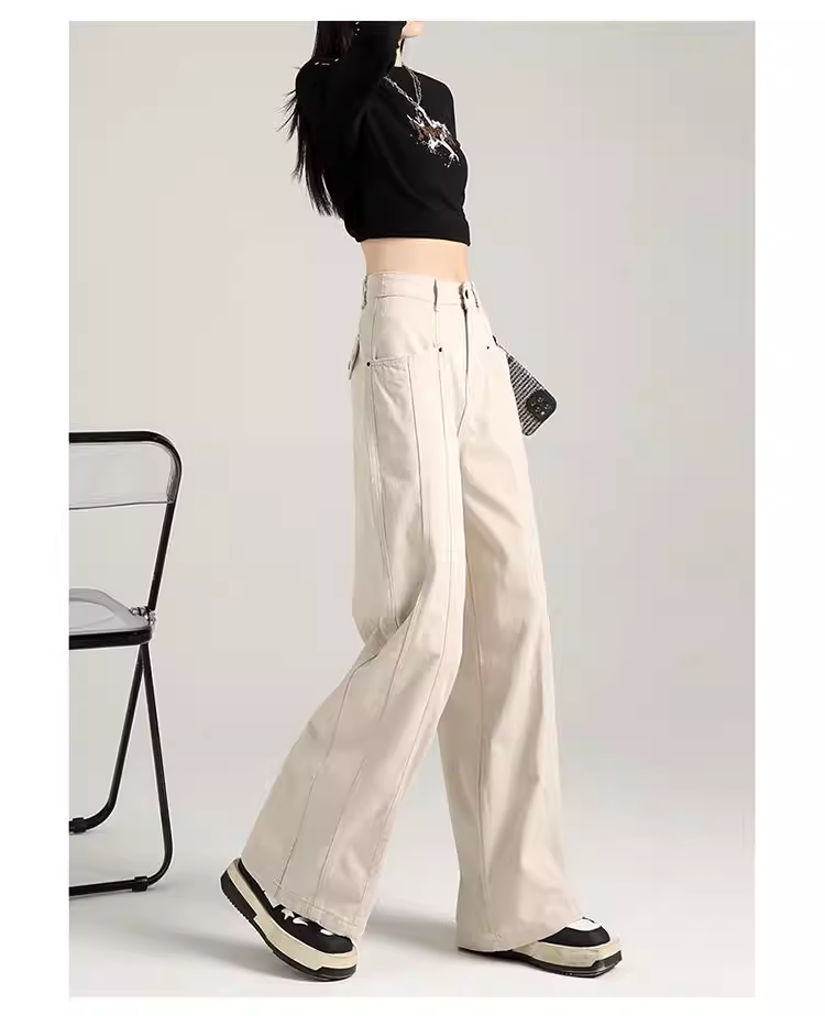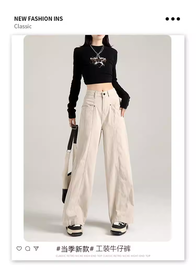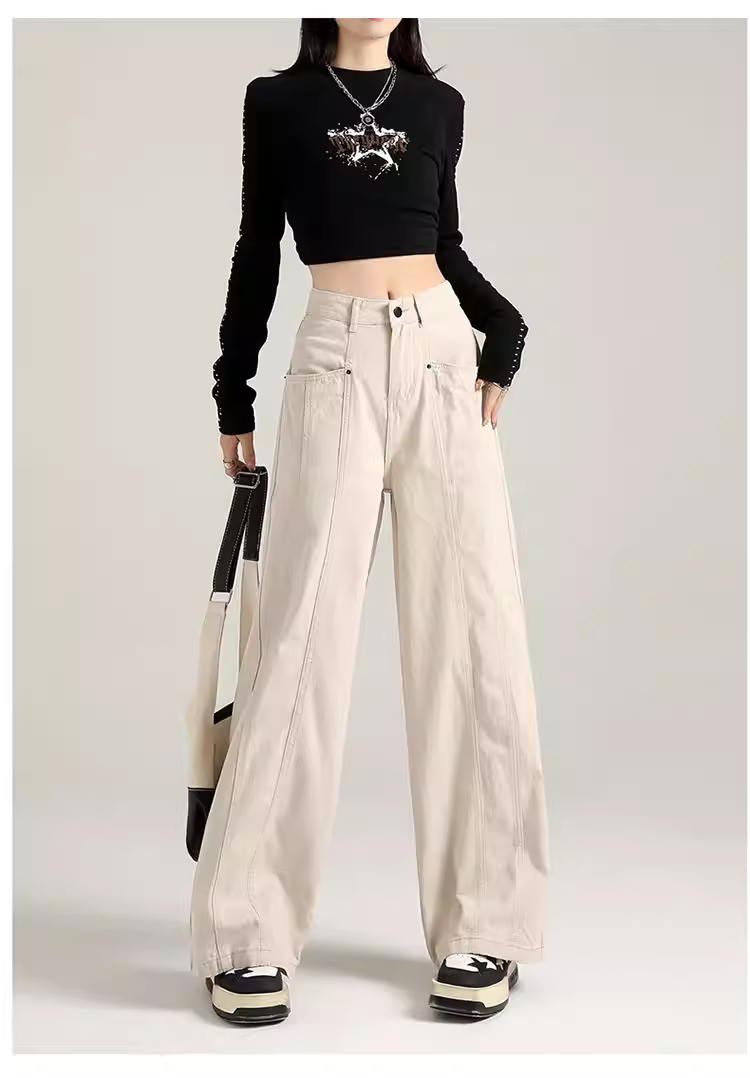 Quần cargo ống rộng dài chấm đất kiểu Mỹ La Chapelle dành cho nữ, mẫu mới thu đông 2025, cạp cao, dáng rộng, thoải mái, thẳng.